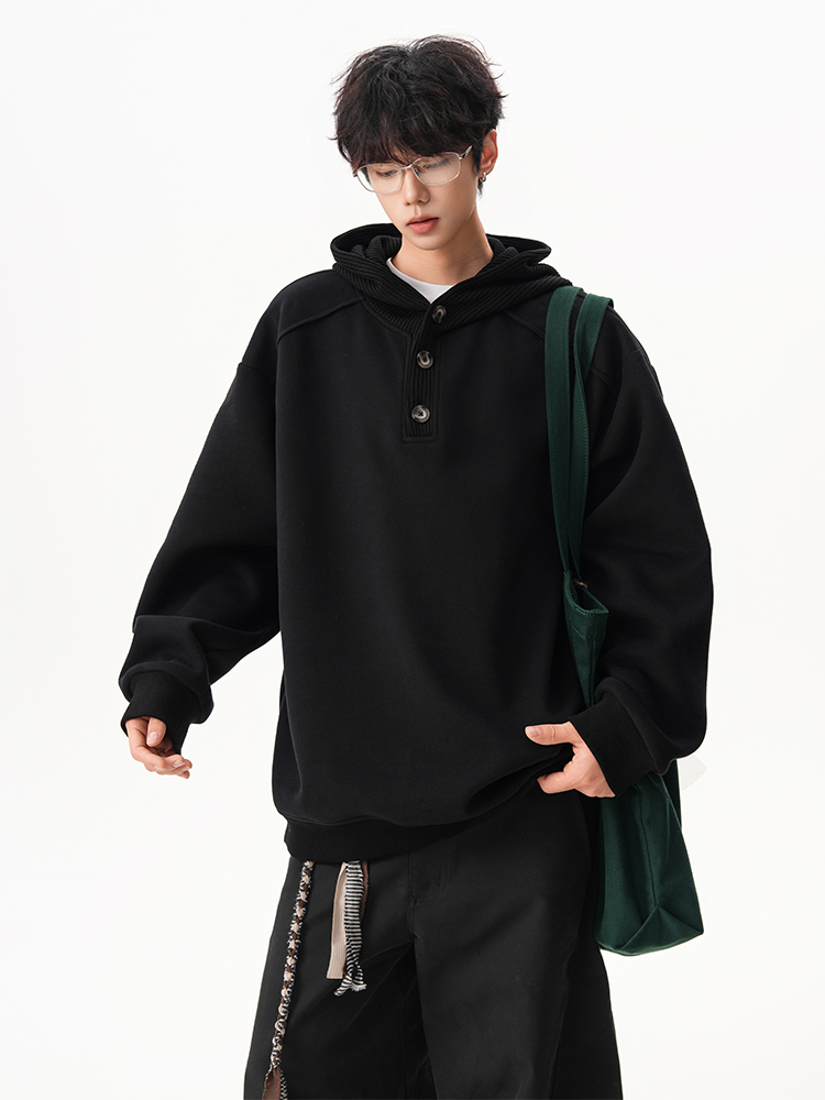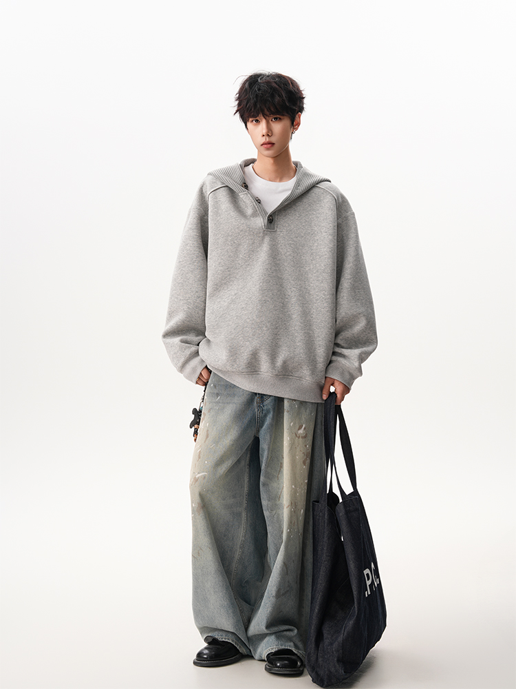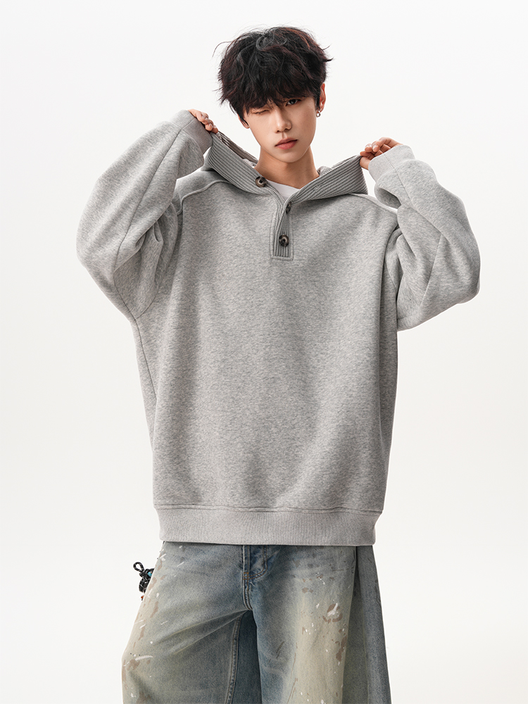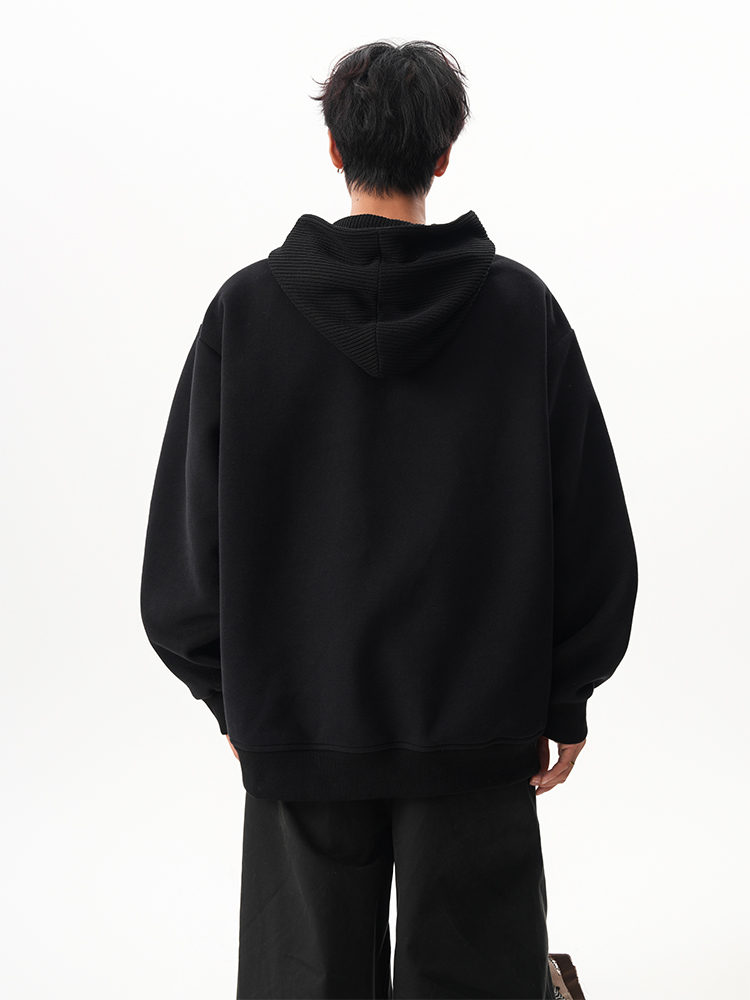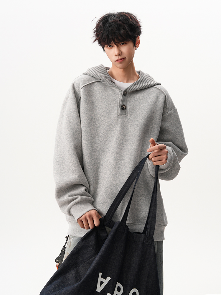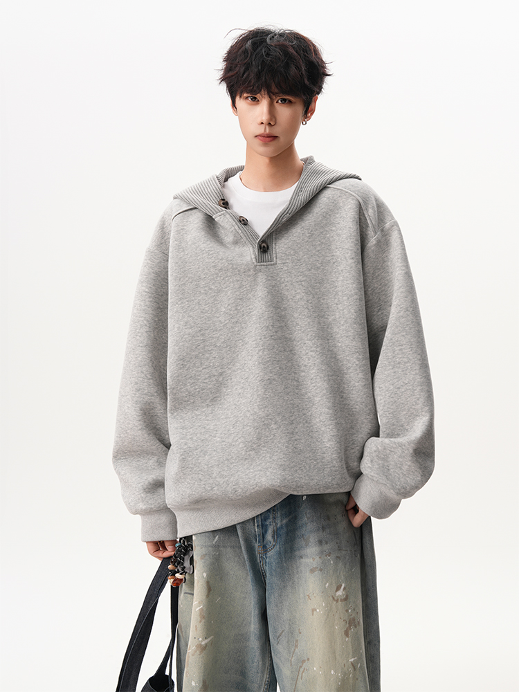 重磅針織連帽衛衣男女秋季美式復古灰色情侶外套寬松大碼運動上衣