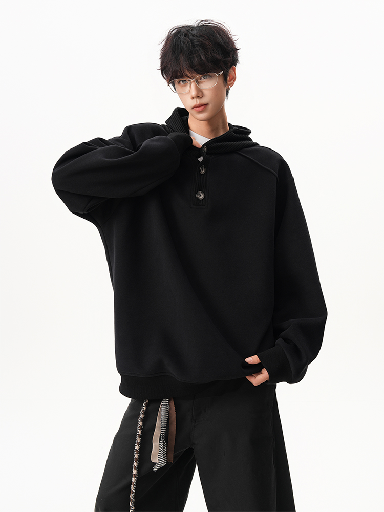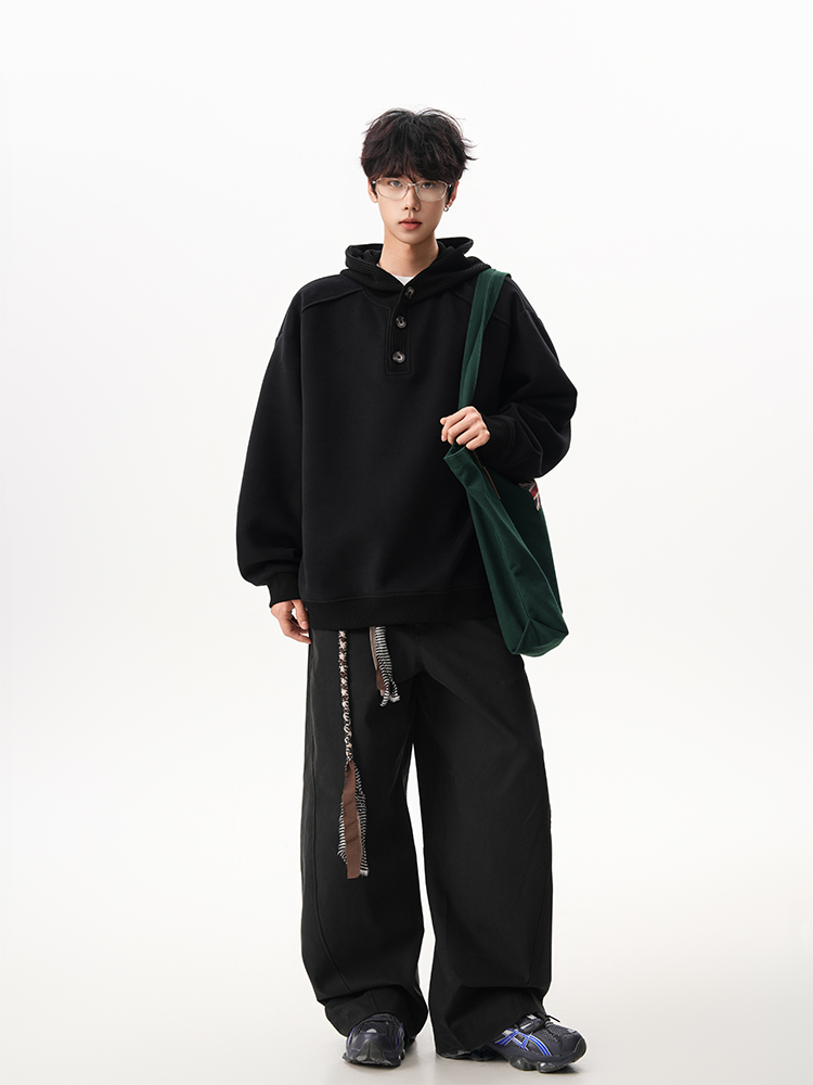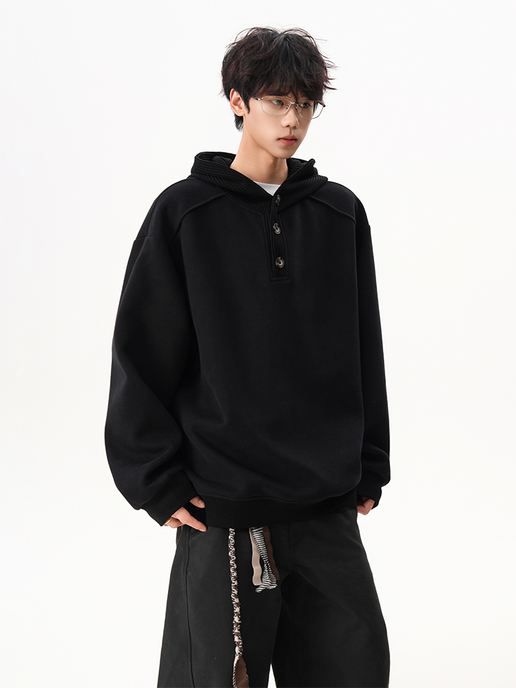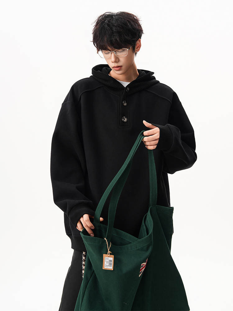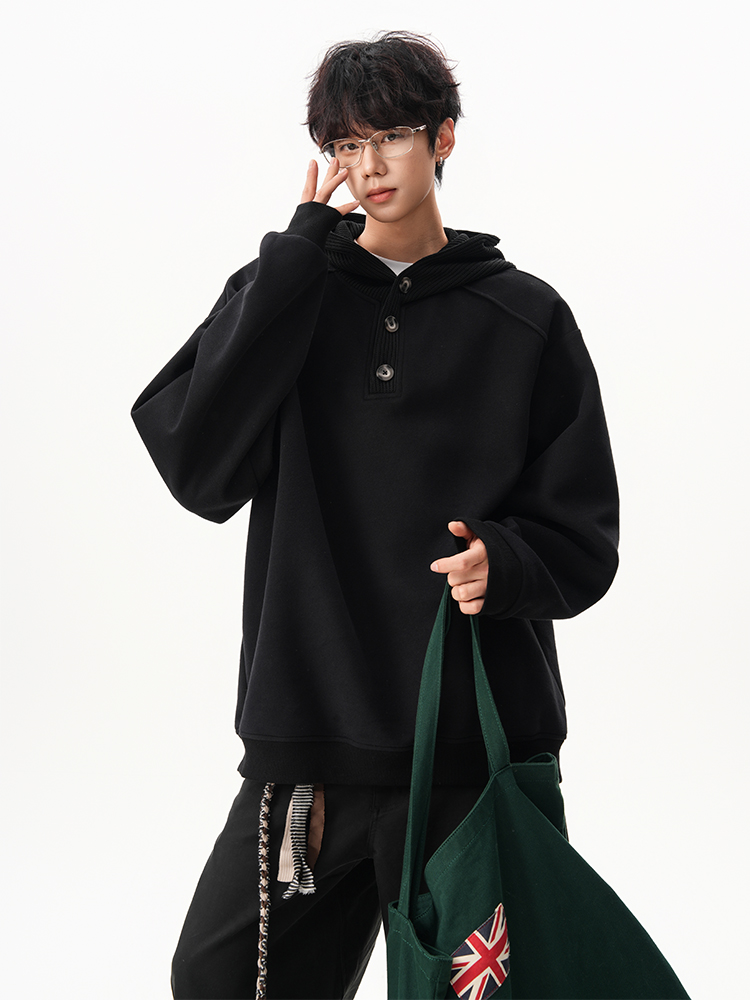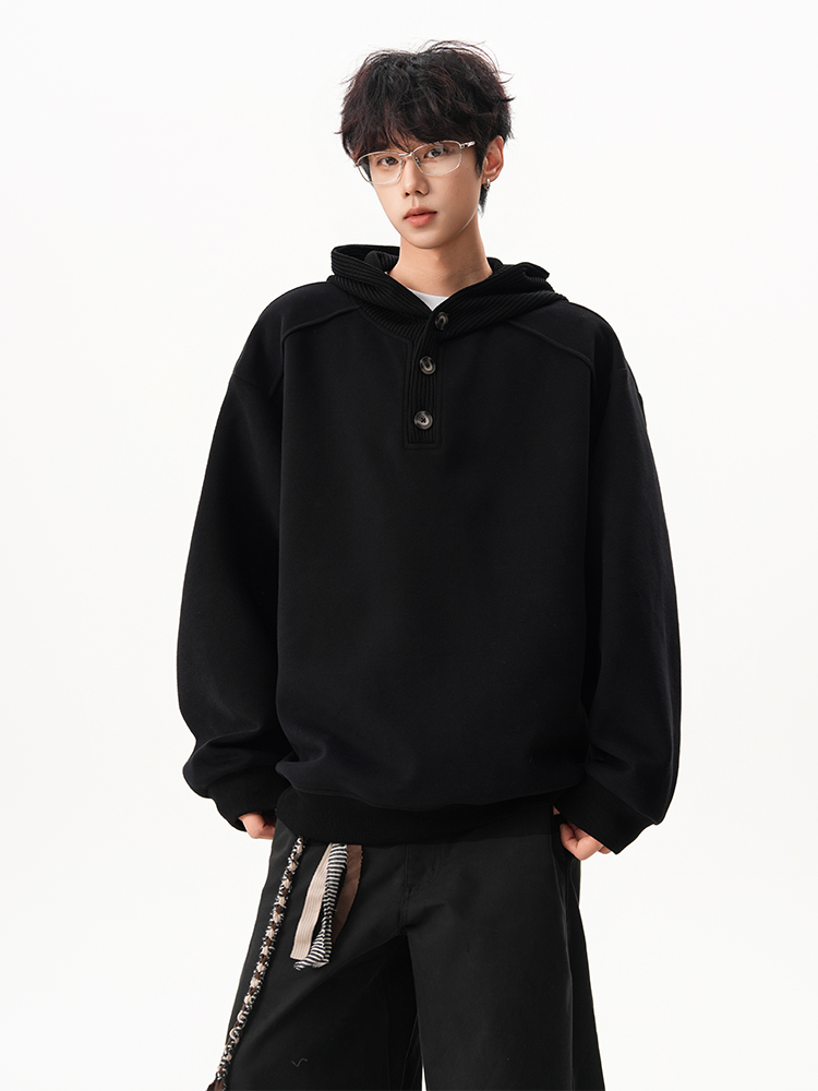 重磅針織連帽衛衣男女秋季美式復古灰色情侶外套寬松大碼運動上衣