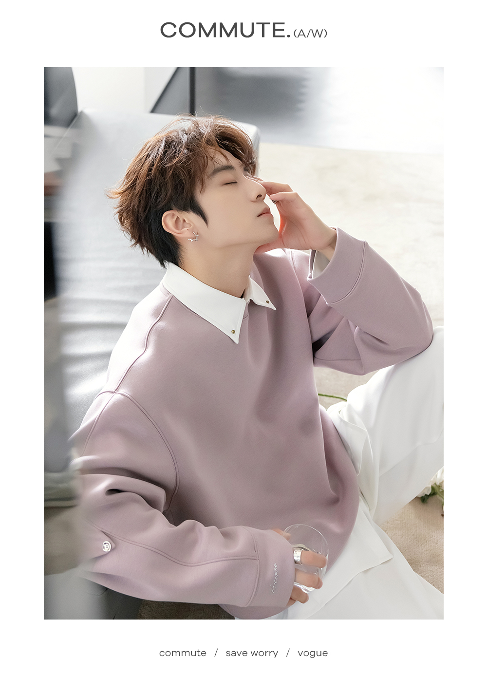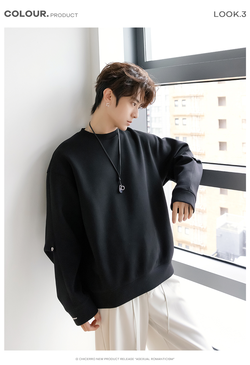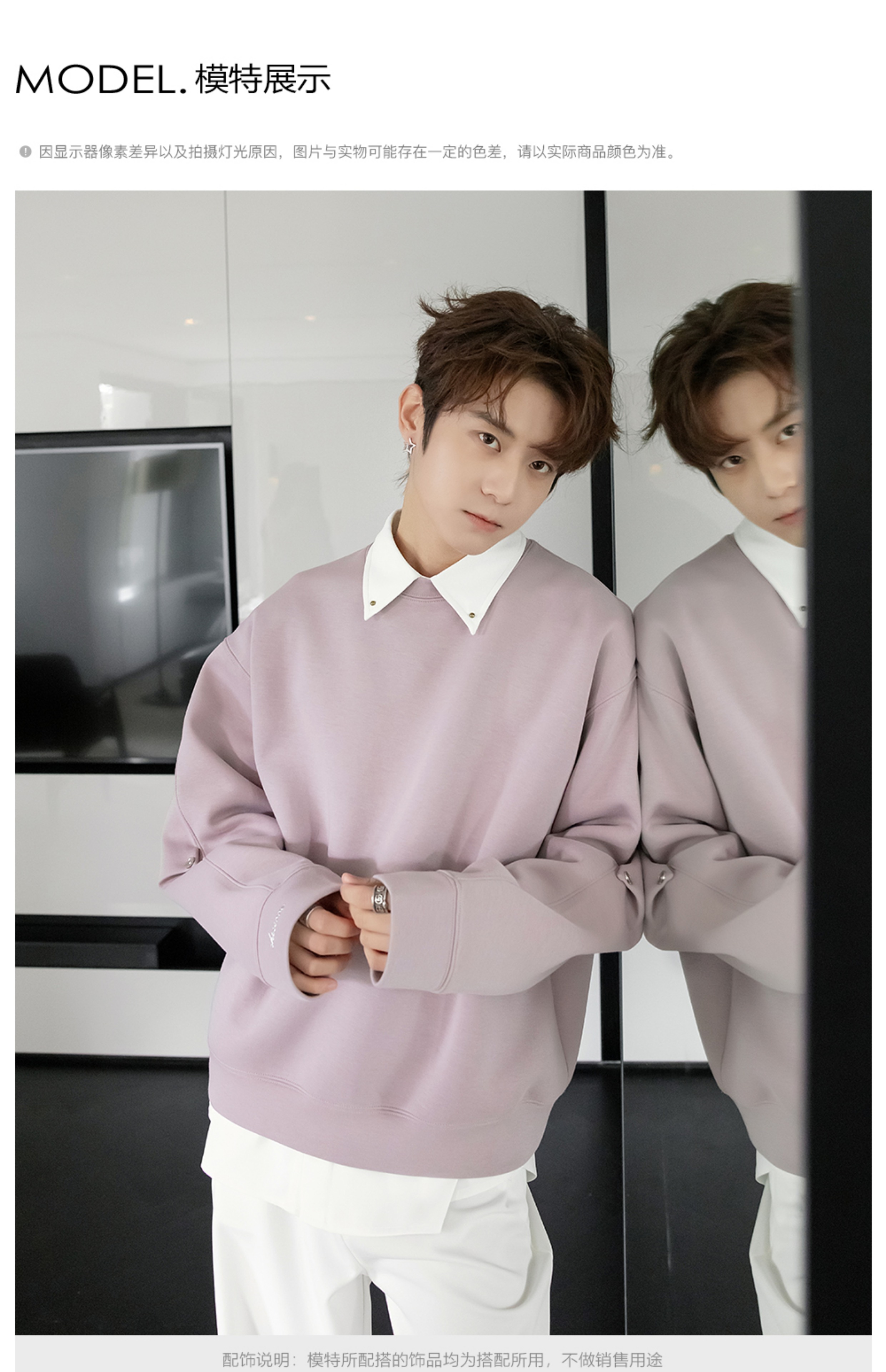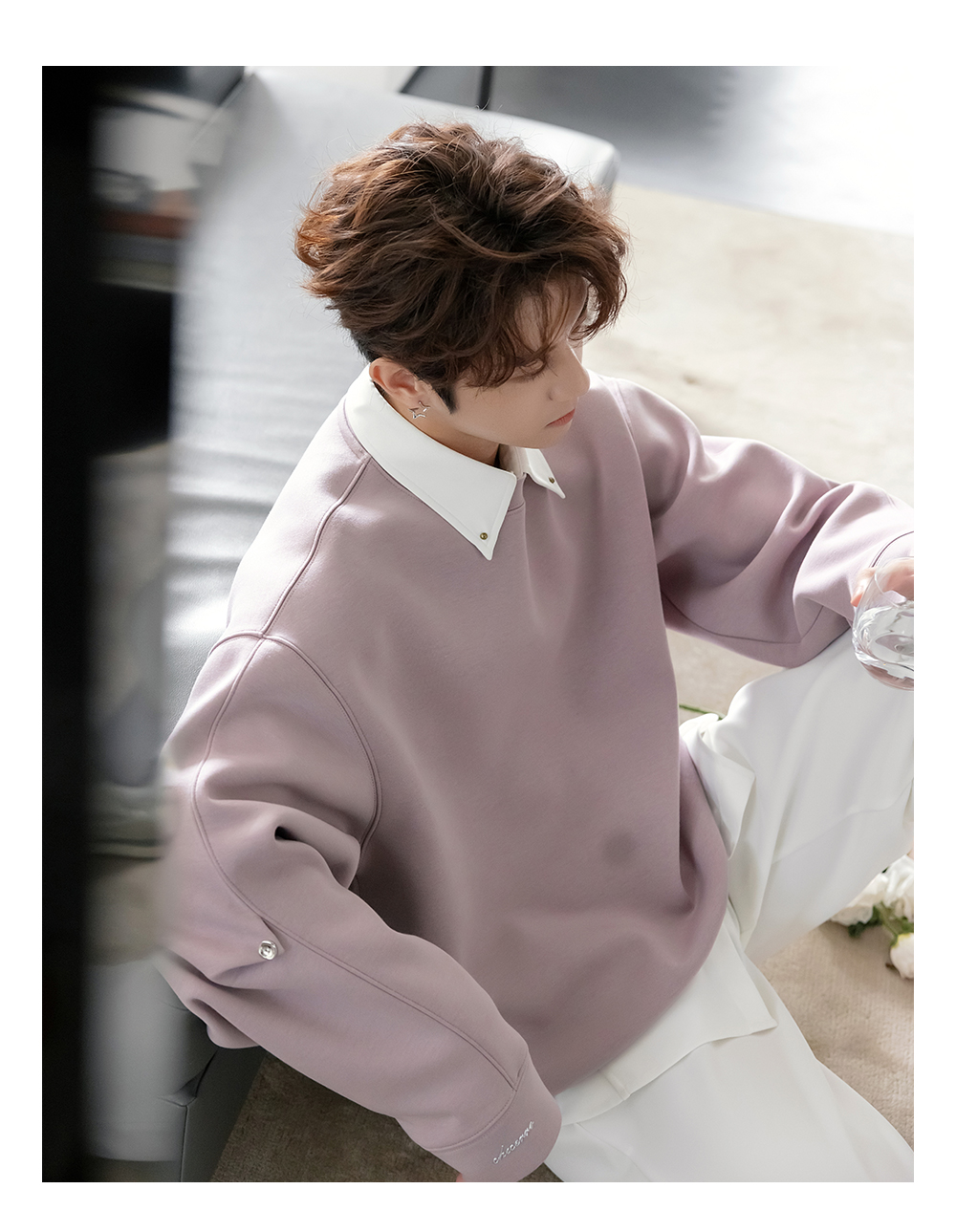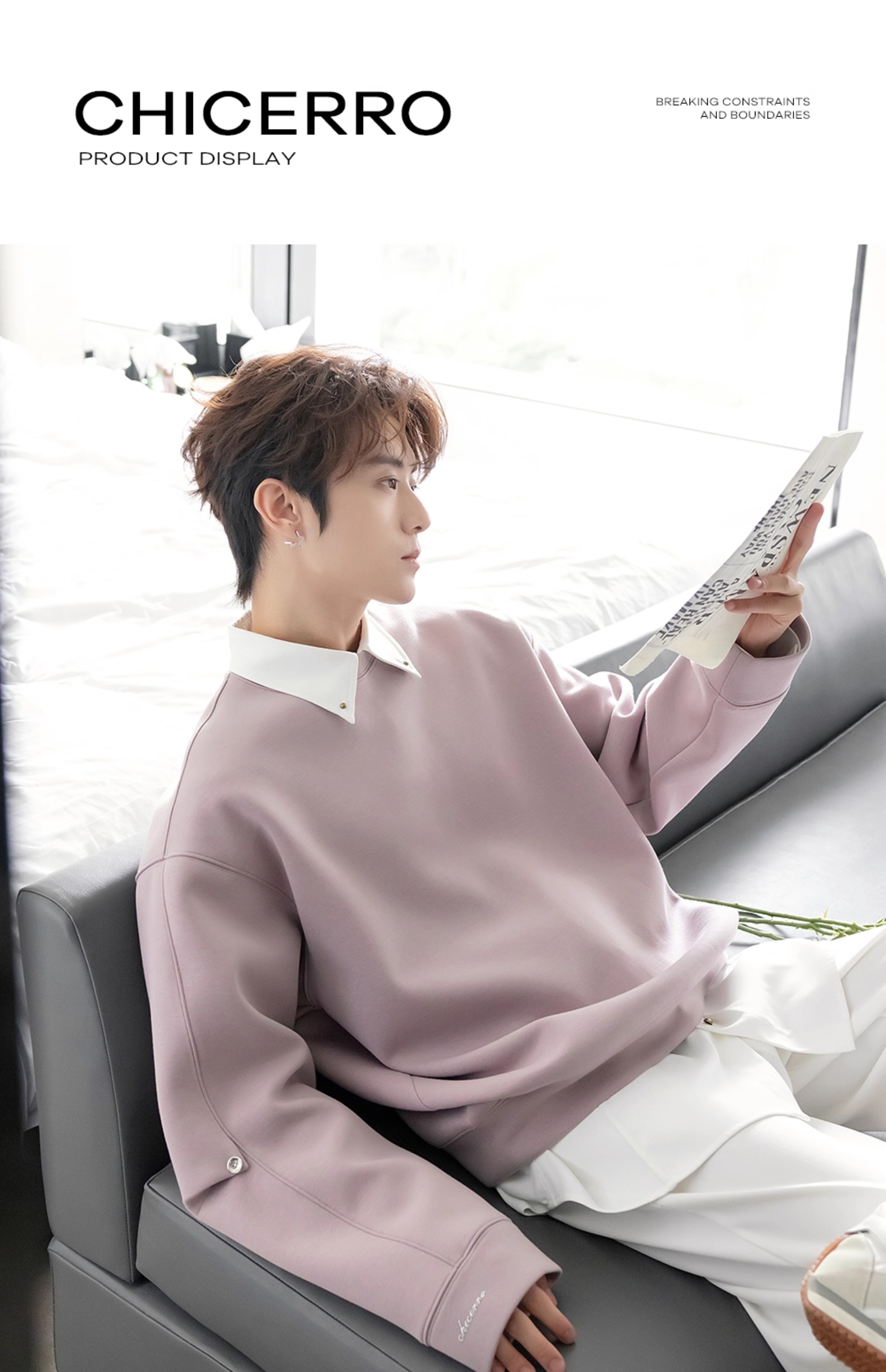 CHICERRO西西裡男裝粉色基礎款學院風金屬釦圓領衛衣男潮百搭高級