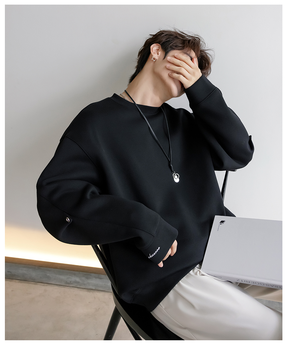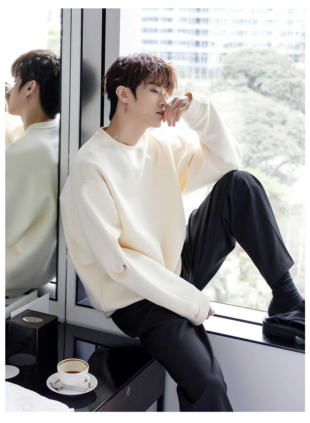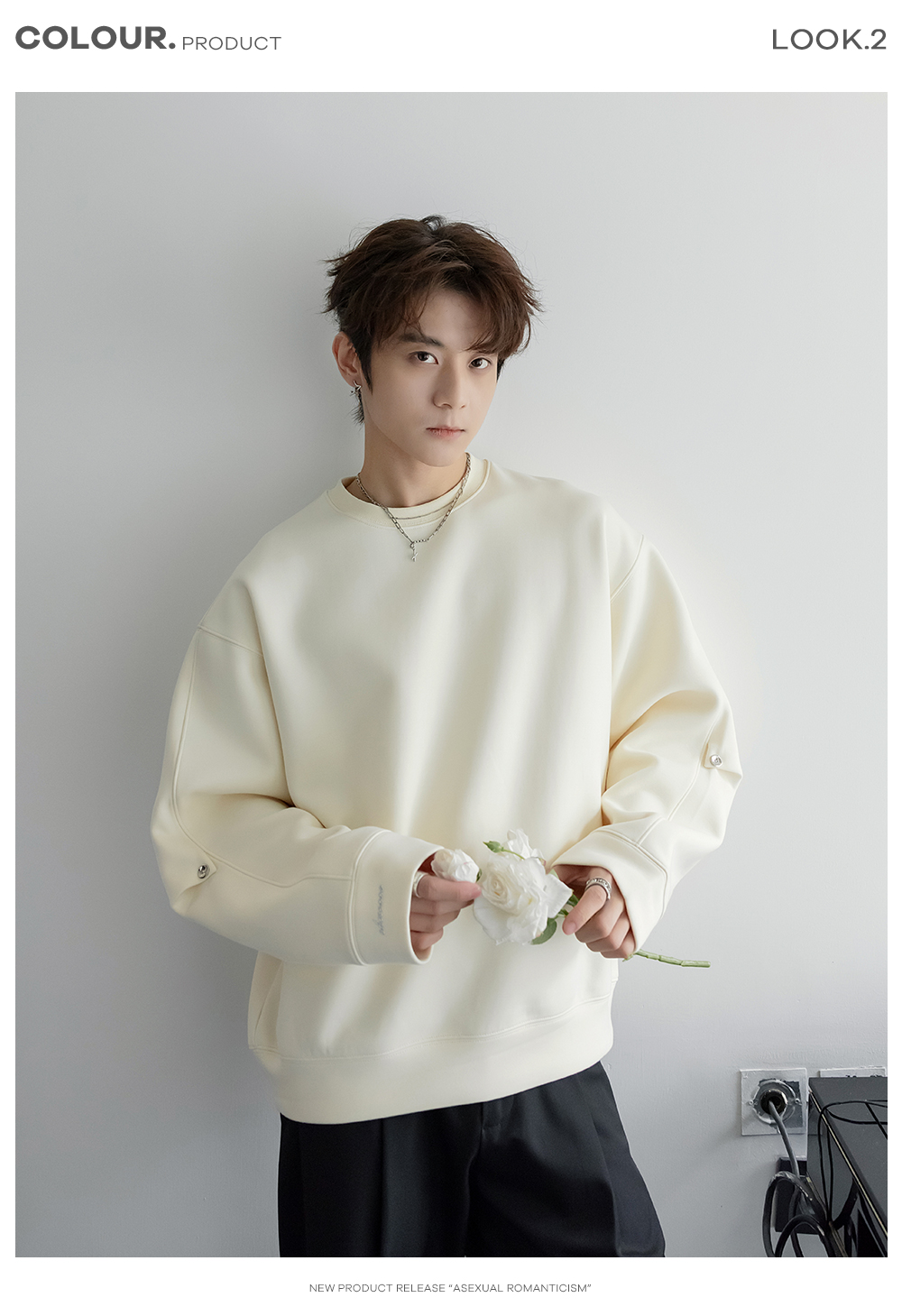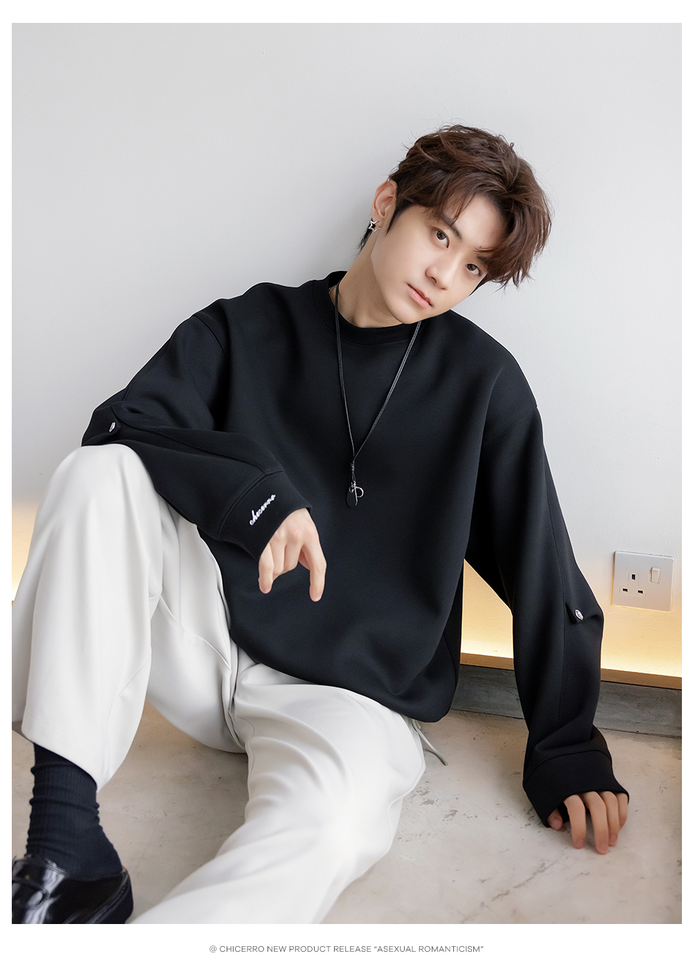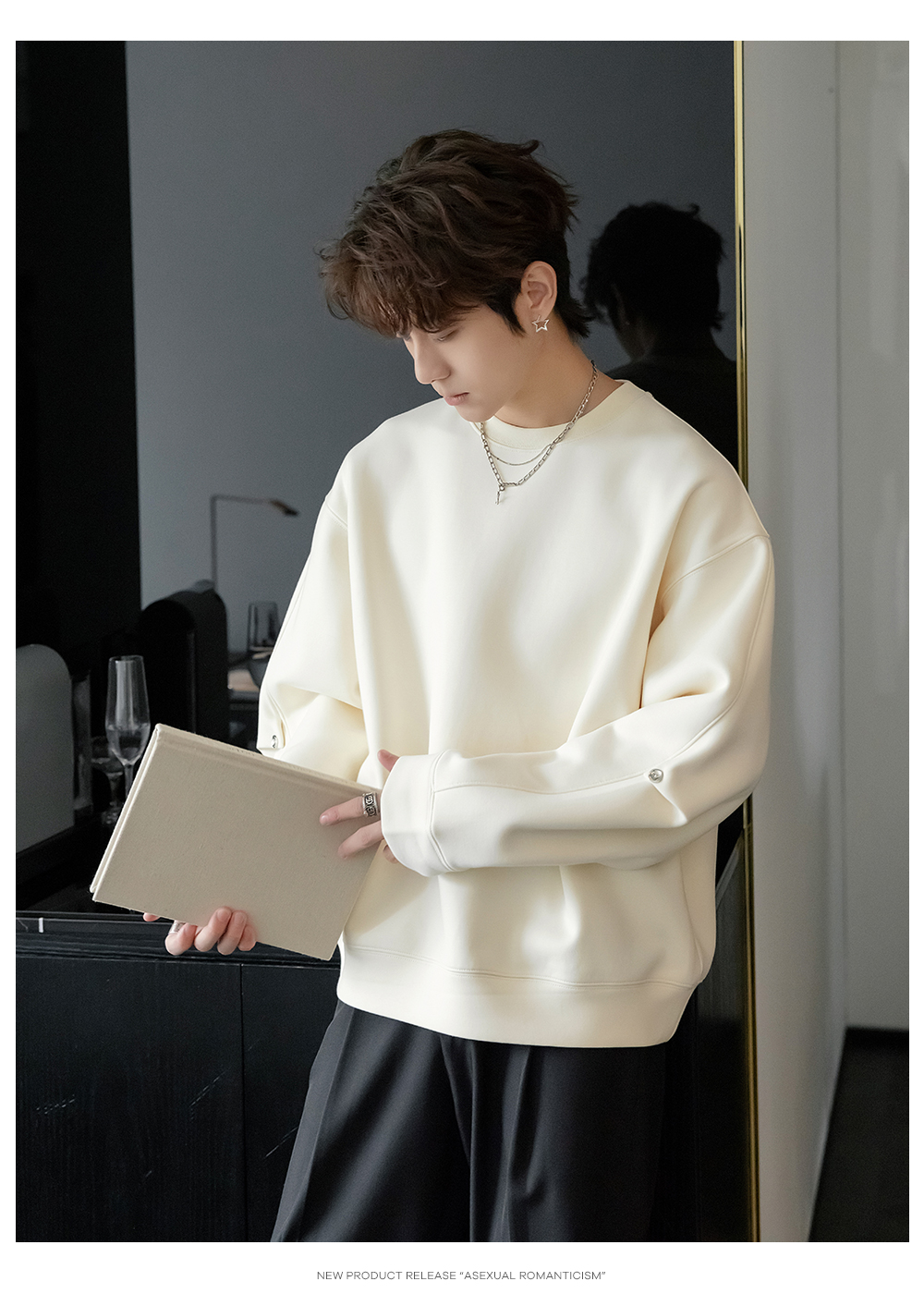 CHICERRO西西裡男裝粉色基礎款學院風金屬釦圓領衛衣男潮百搭高級