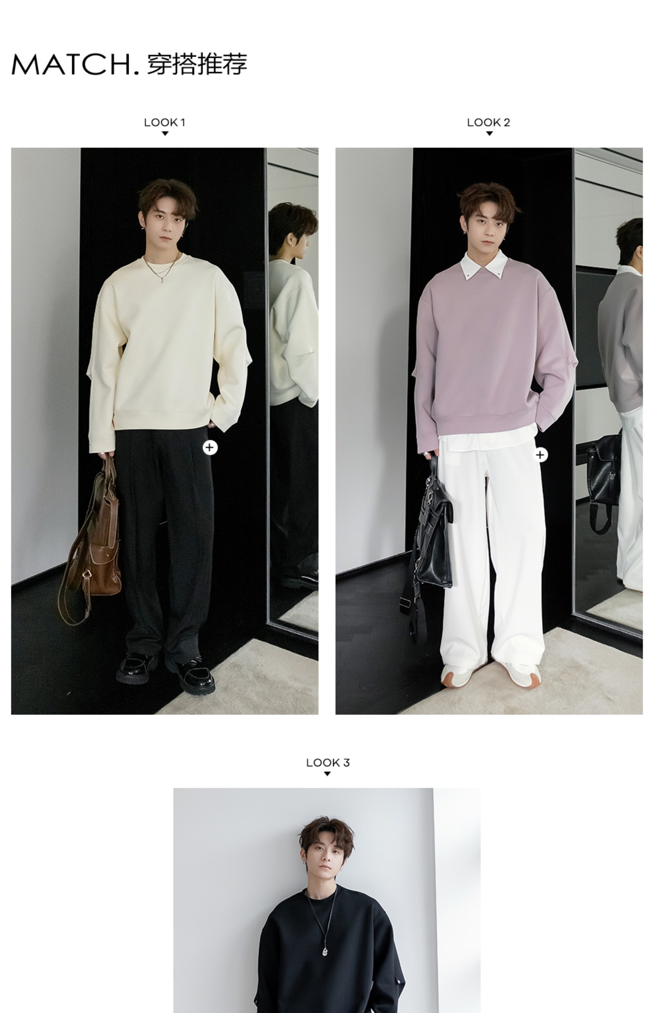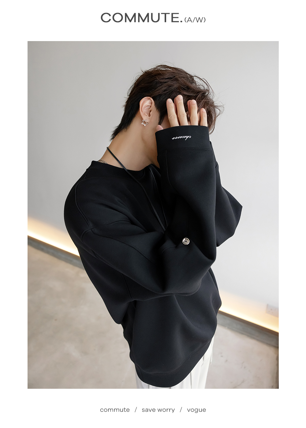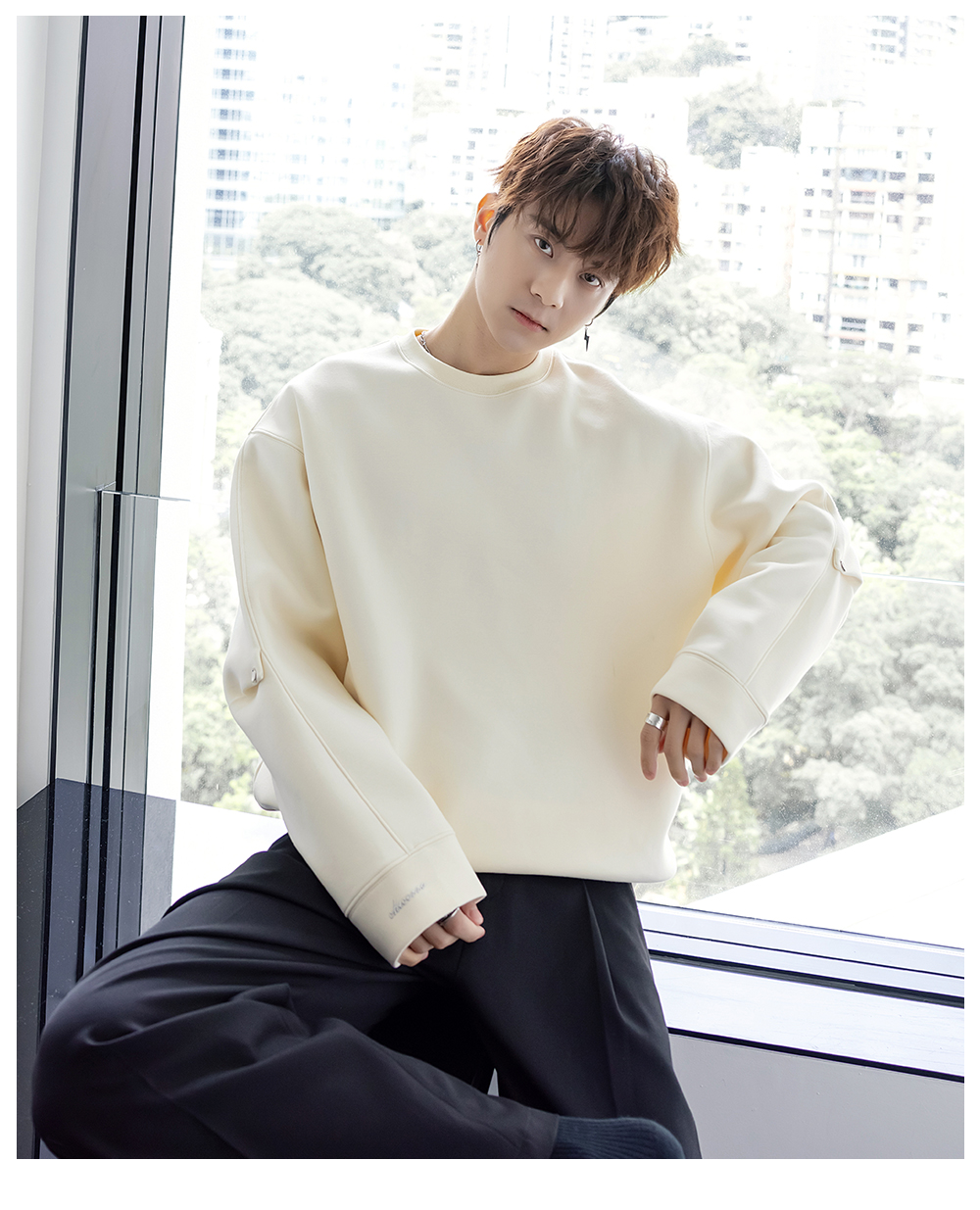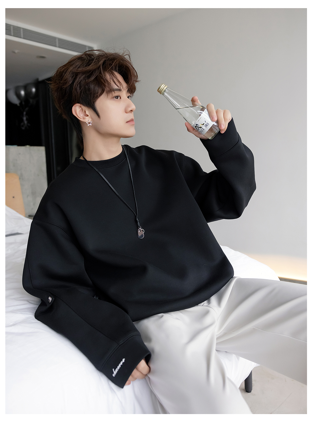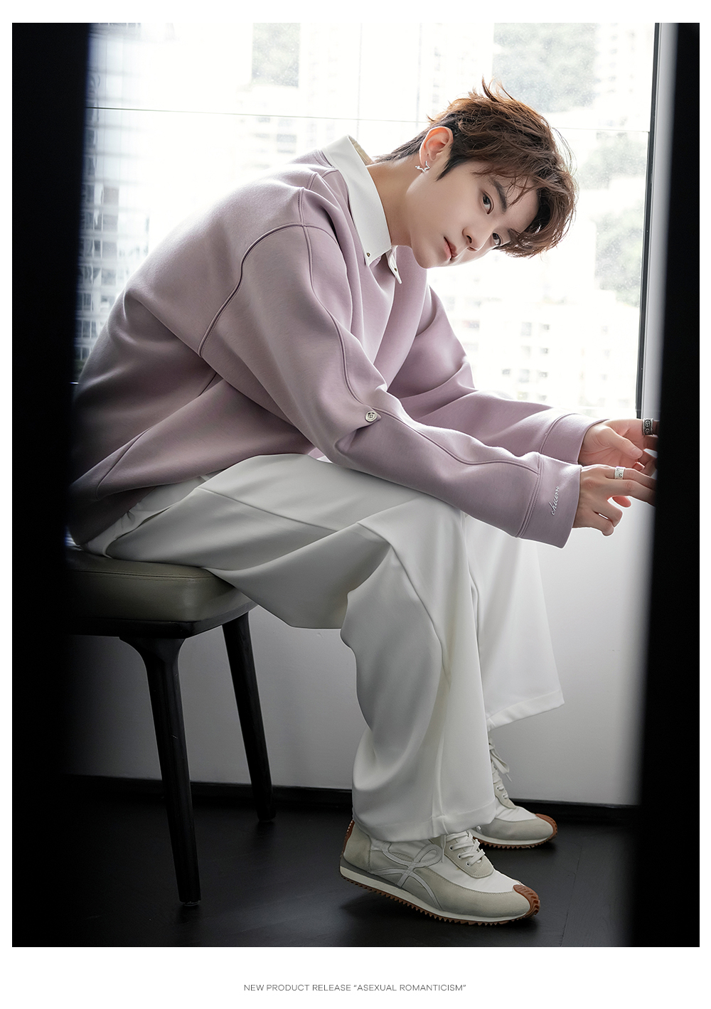 CHICERRO西西裡男裝粉色基礎款學院風金屬釦圓領衛衣男潮百搭高級