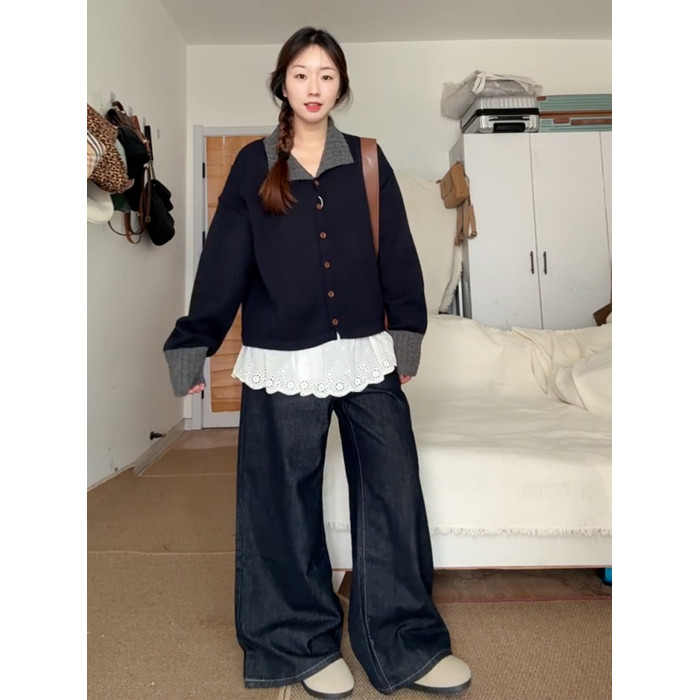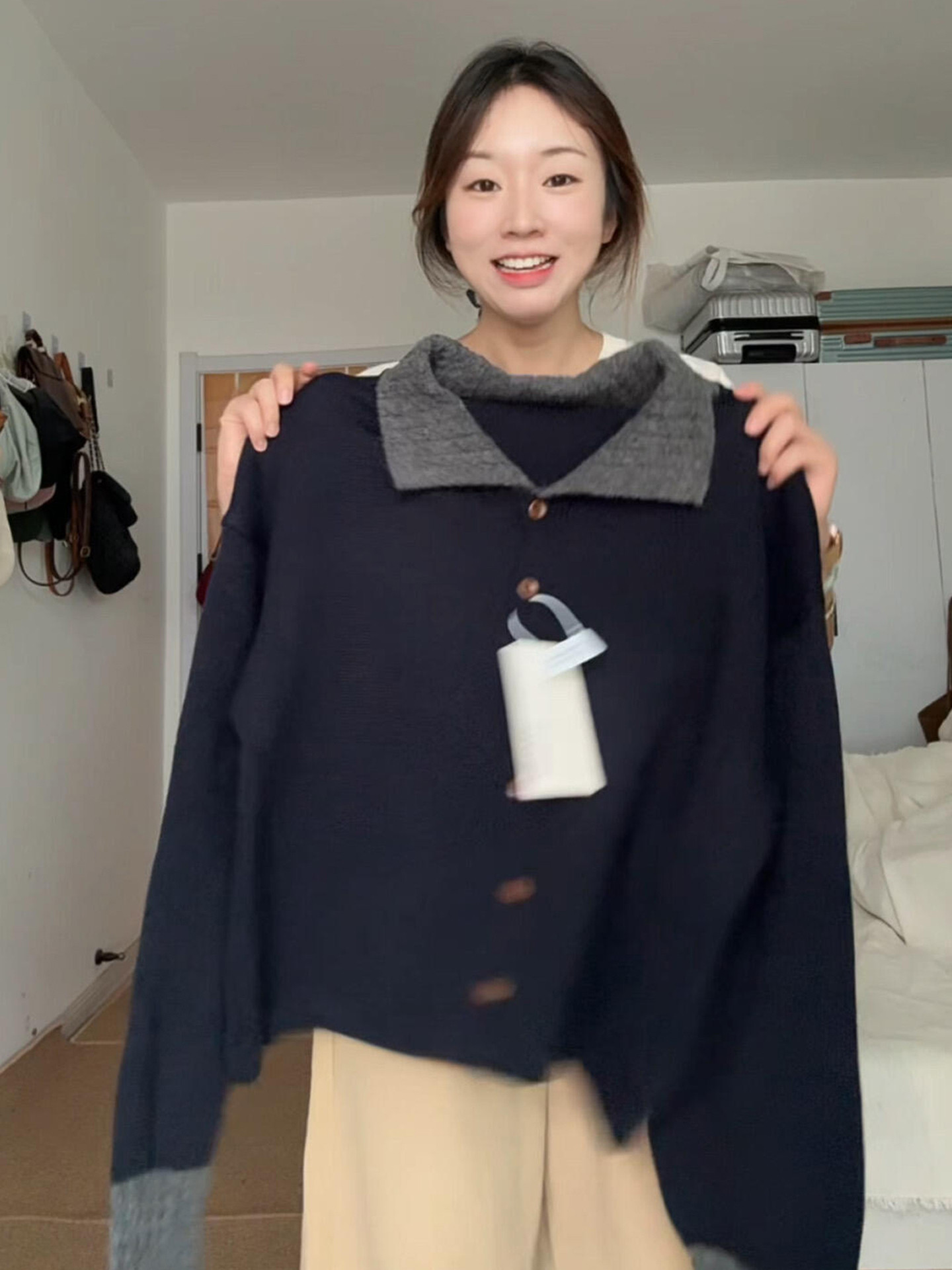 韓系氛圍感翻領毛衣開衫外套女早秋2025新款慵懶風高級感針織上衣