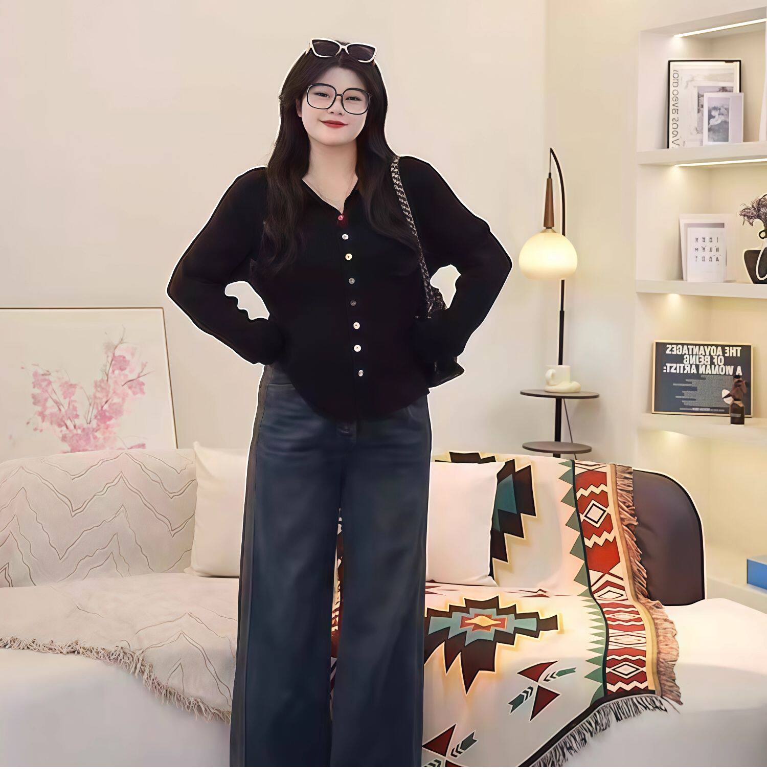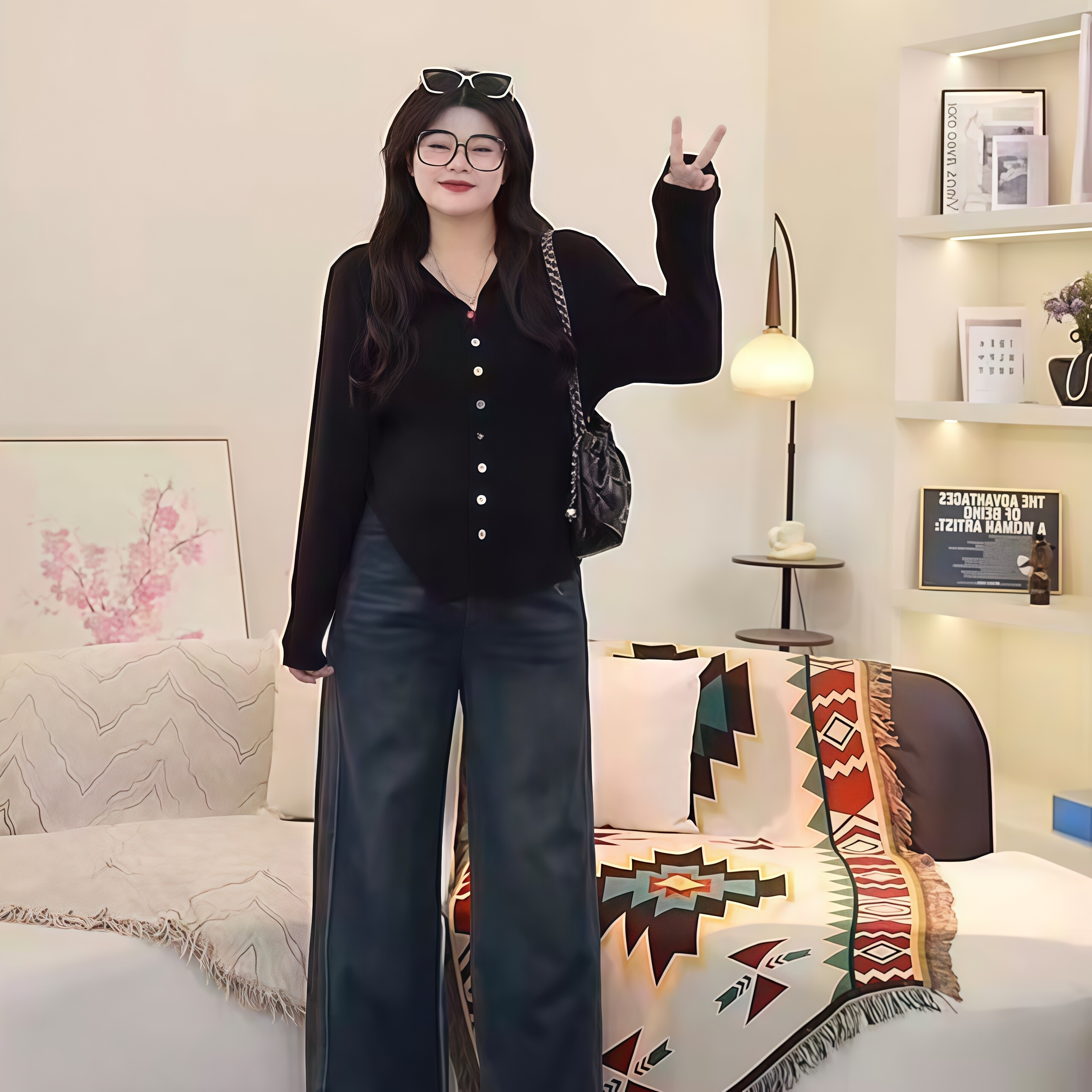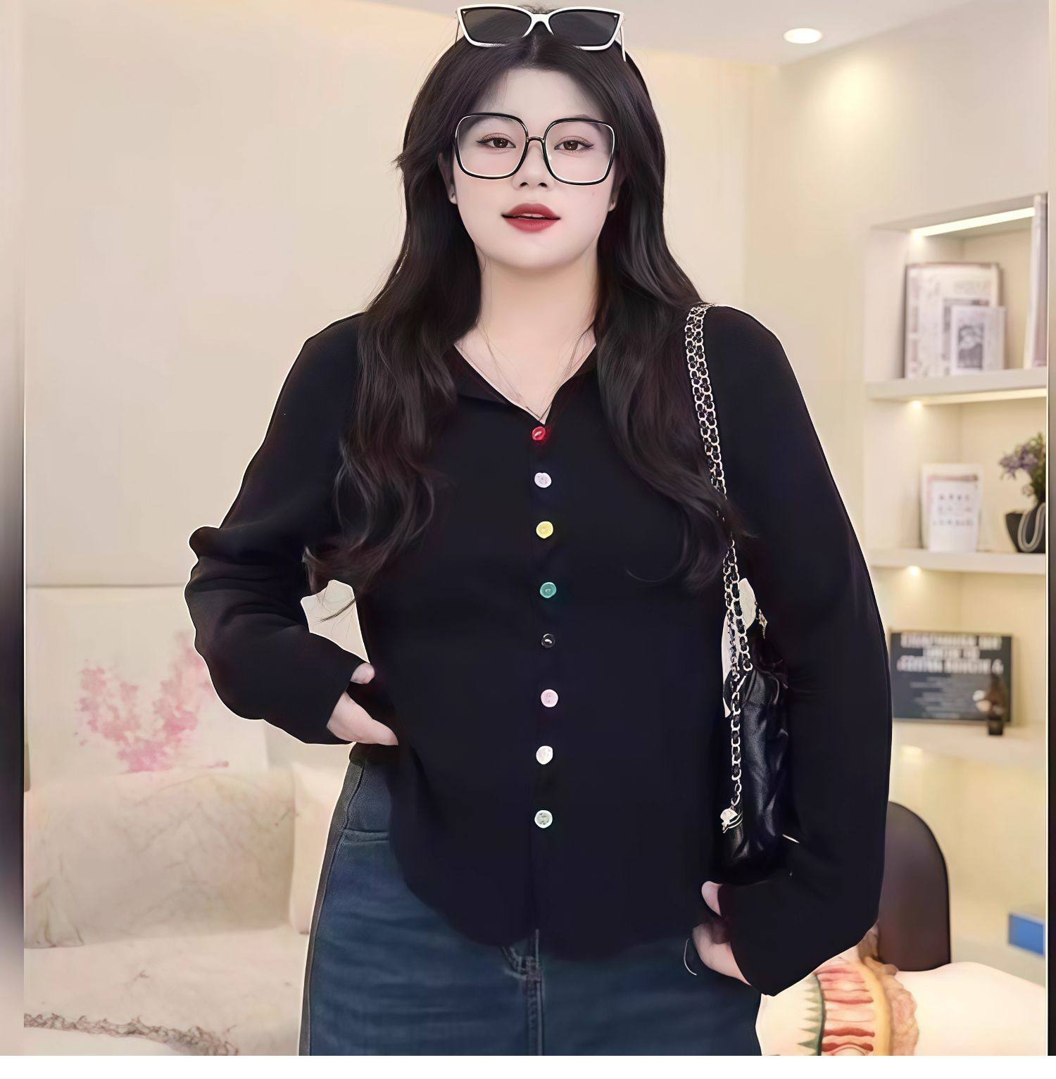 大碼黑色修身正肩開衫針織衫秋季胖MM彩色遮肉顯瘦打底衫上衣女