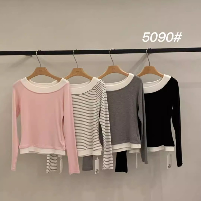 QIQI綺綺家 領口拼色打底衫5090 【杭州意法HuHu】#10-22