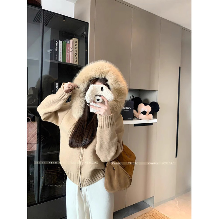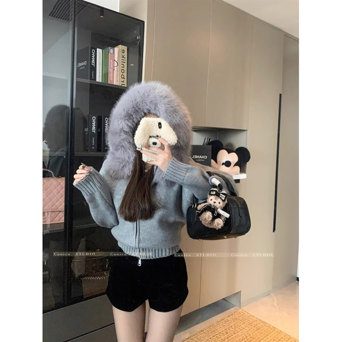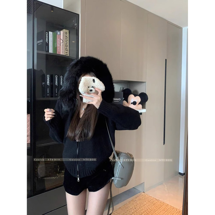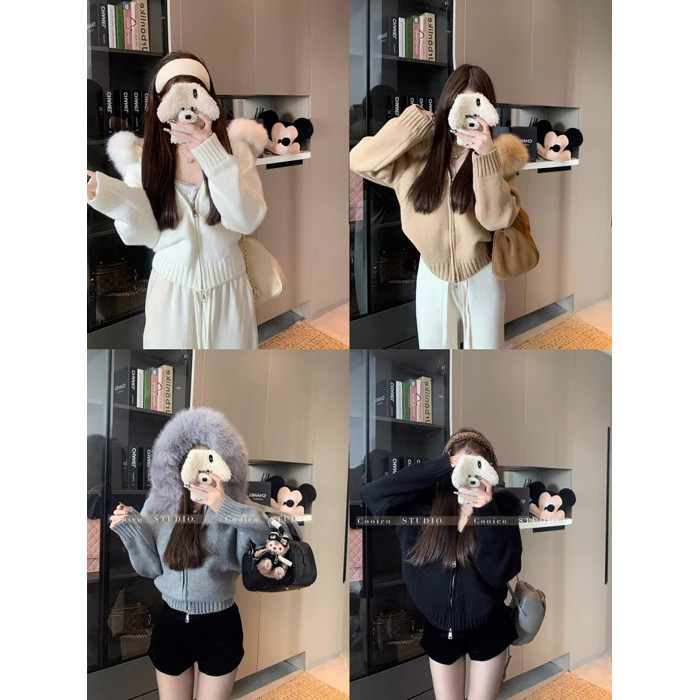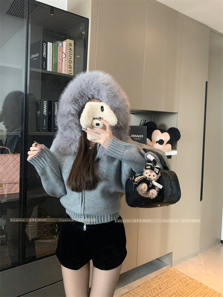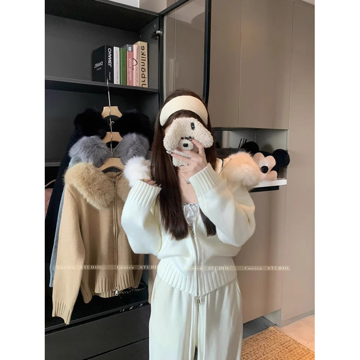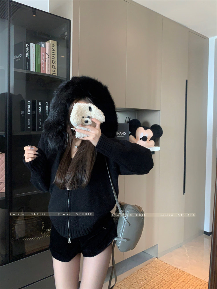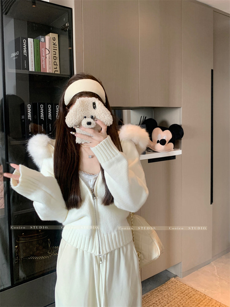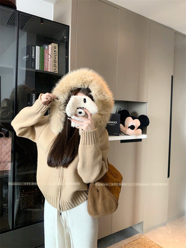 甜美風毛毛領長袖針織衫外套女秋季2025新款寬松顯瘦小衆百搭上衣