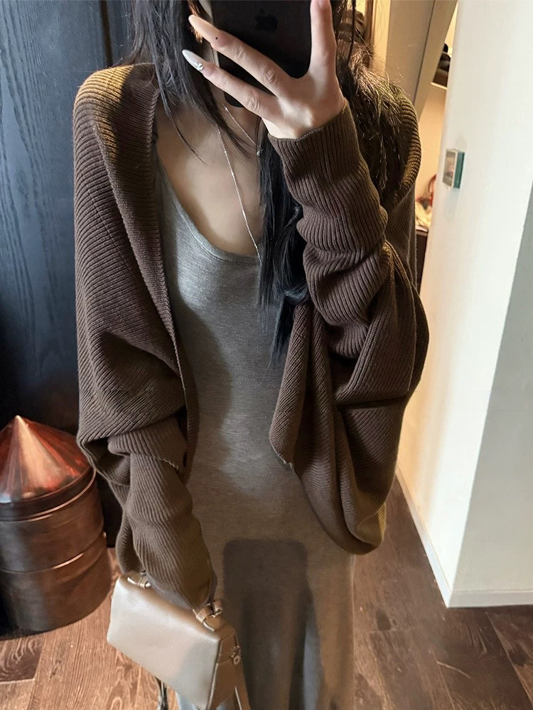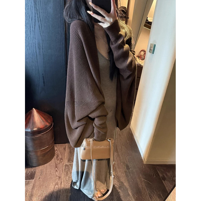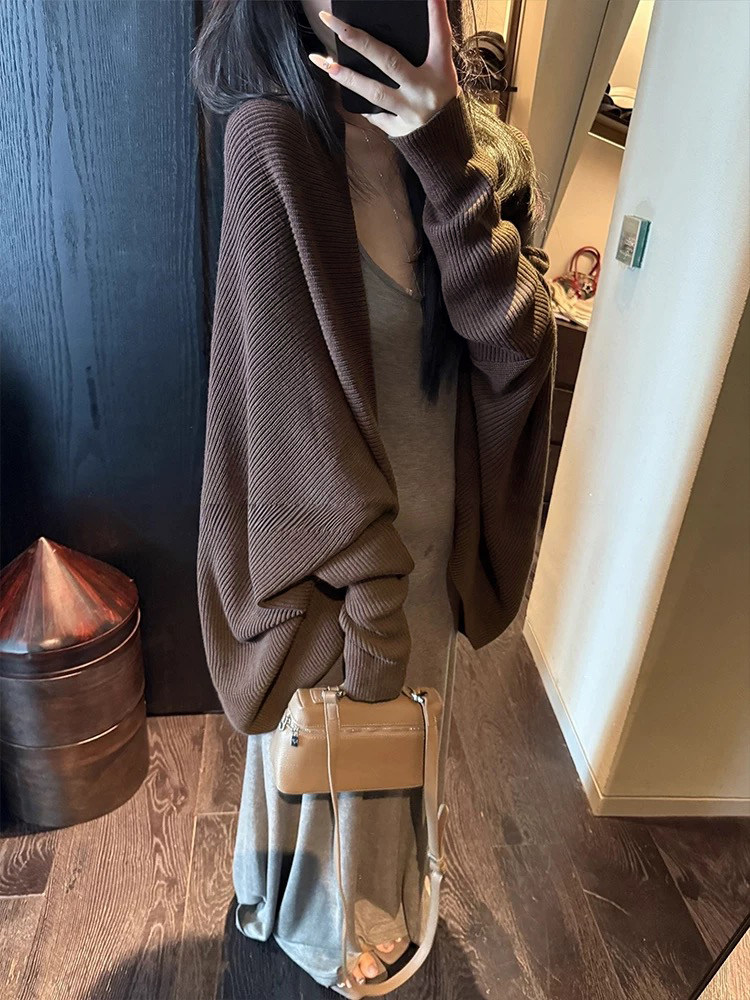 MosesQueen魔西女王蝙蝠袖針織開衫秋冬外搭毛衣外套披肩寬松上衣