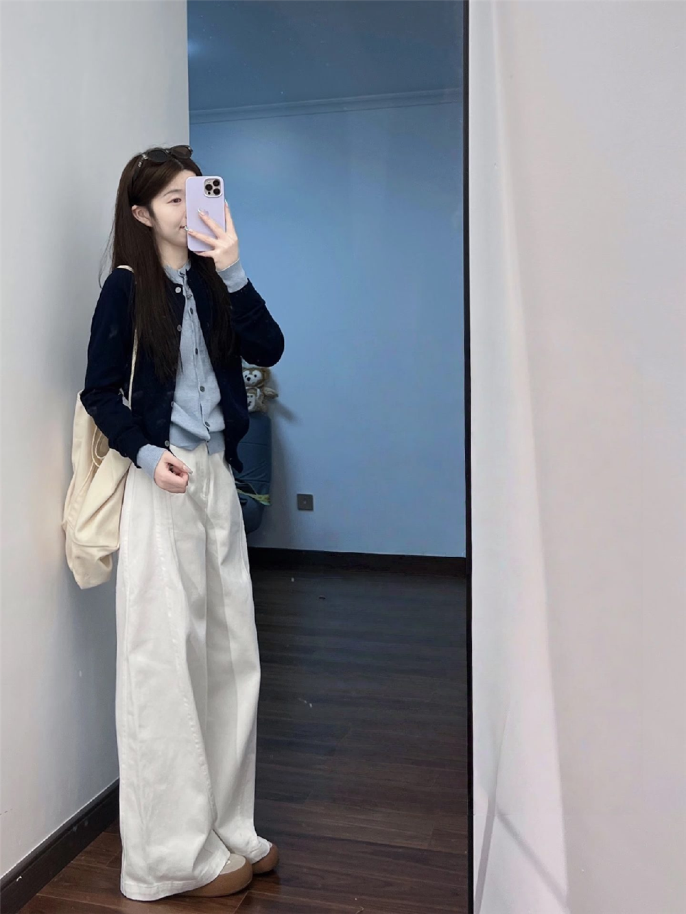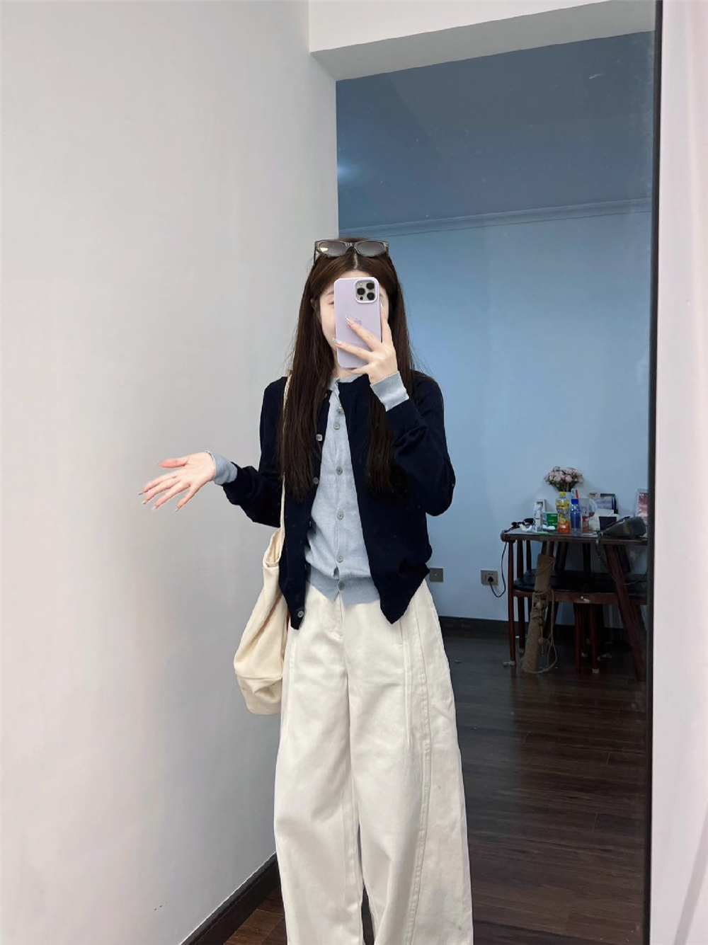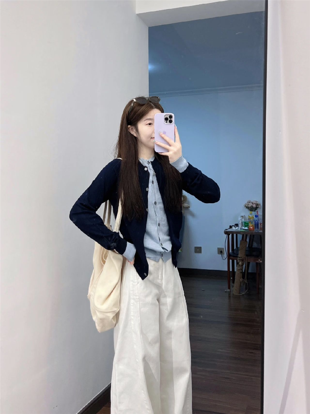 藏青色假兩件設計感薄針織開衫外套女2025新款早秋氛圍感穿搭上衣