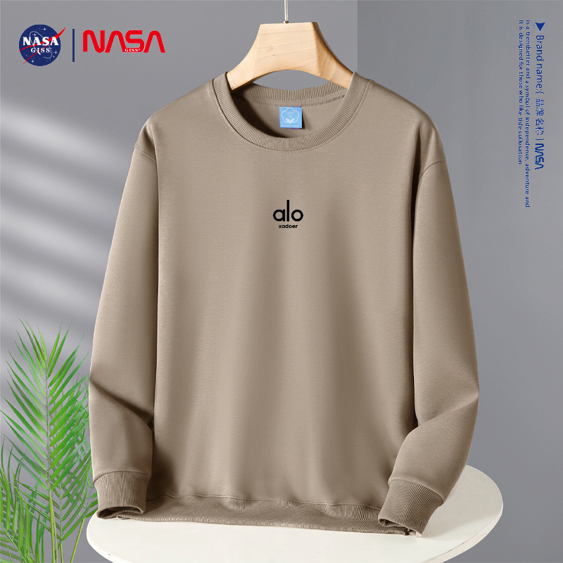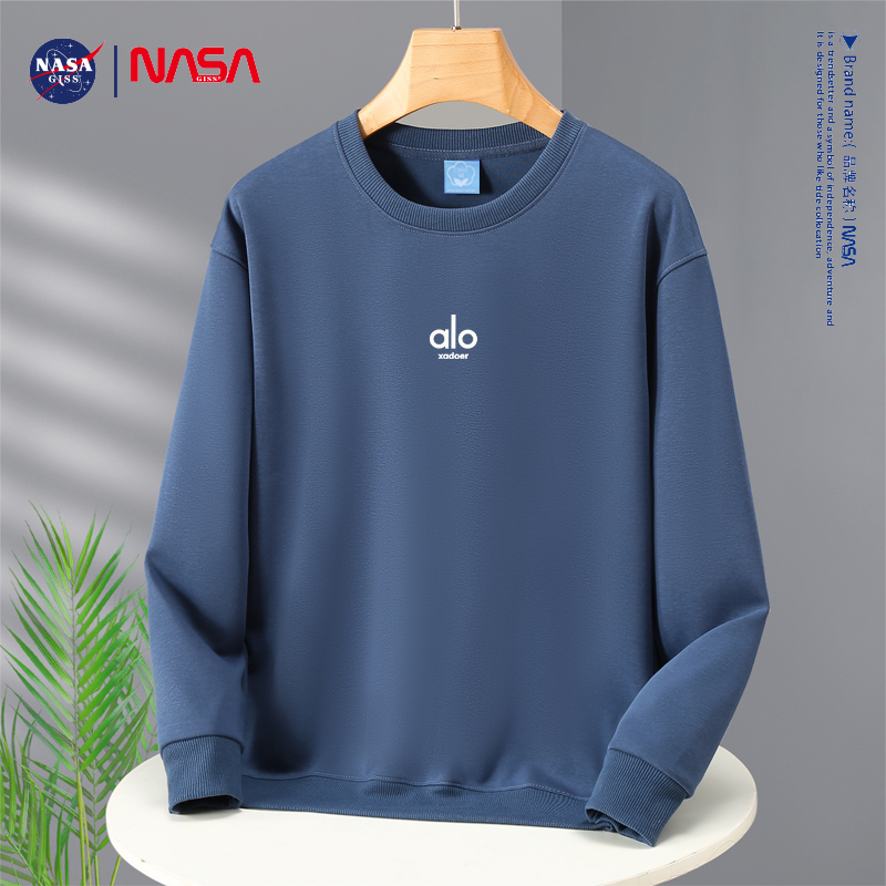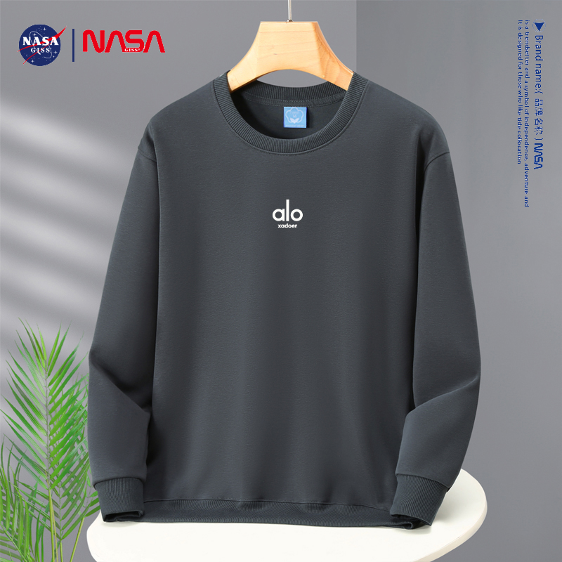 NASA聯名潮牌圓領套頭衛衣男士秋冬季加絨加厚打底衫休閒寬松上衣