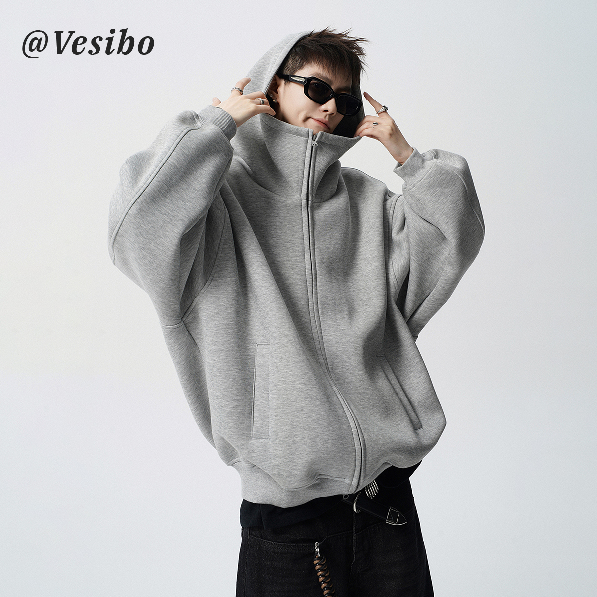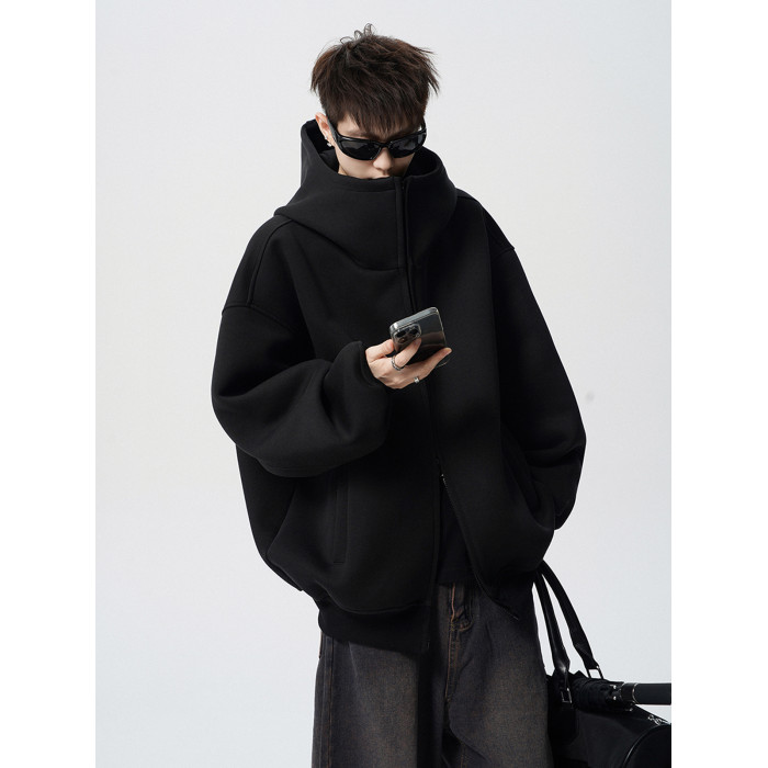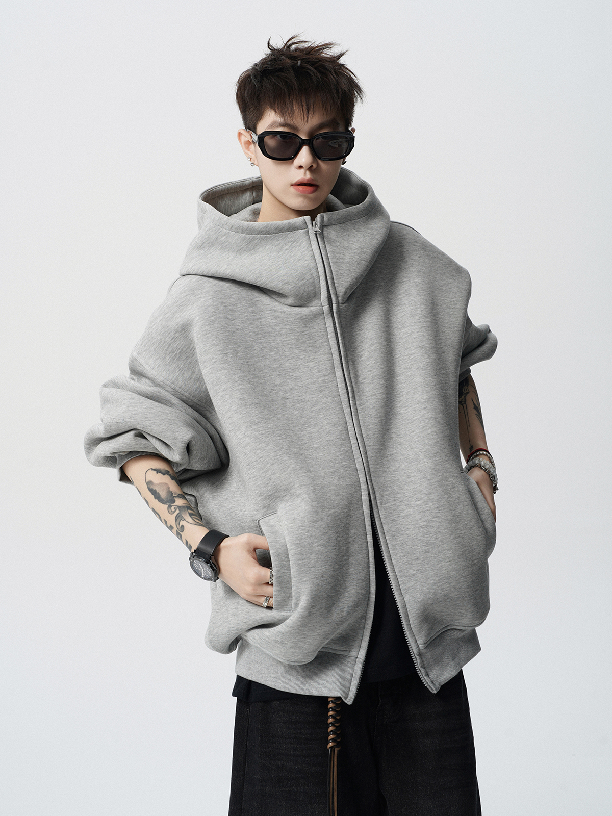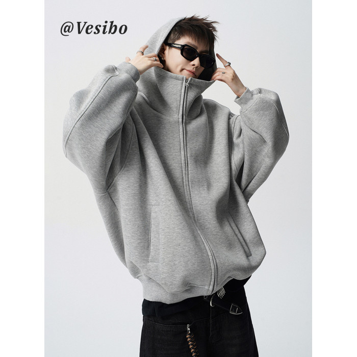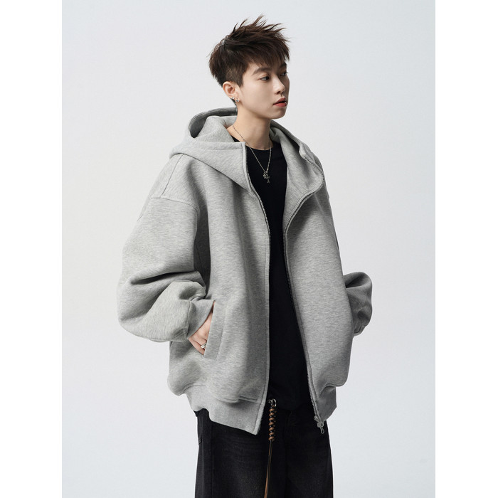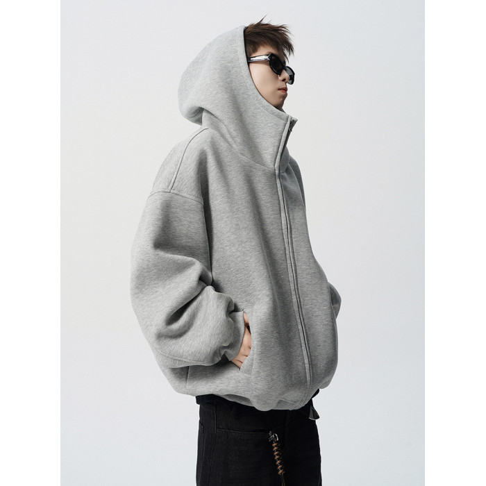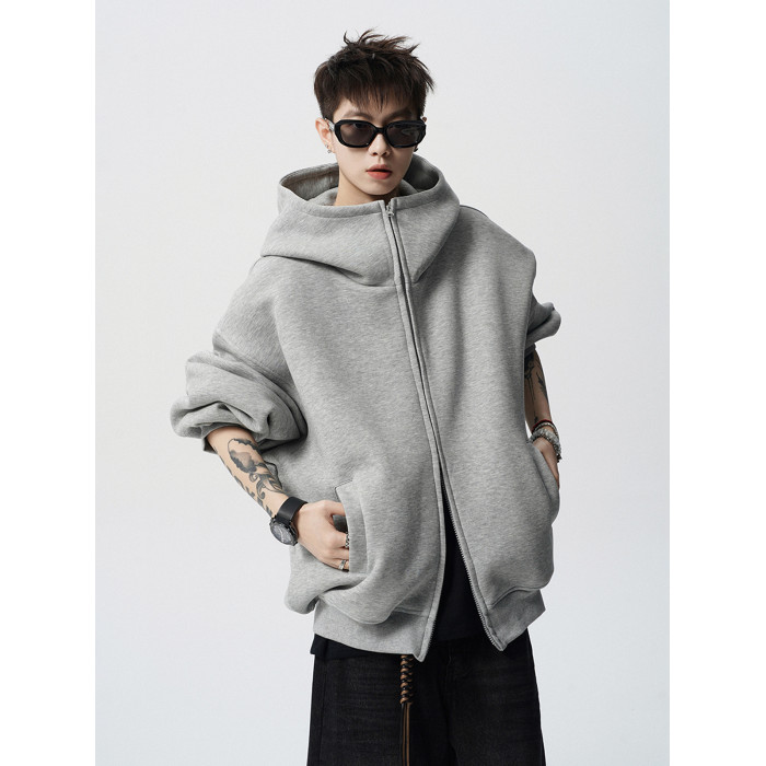 美式重磅開衫衛衣男秋季潮牌慵懶風連帽外套高街痞帥休閒高領帽衫