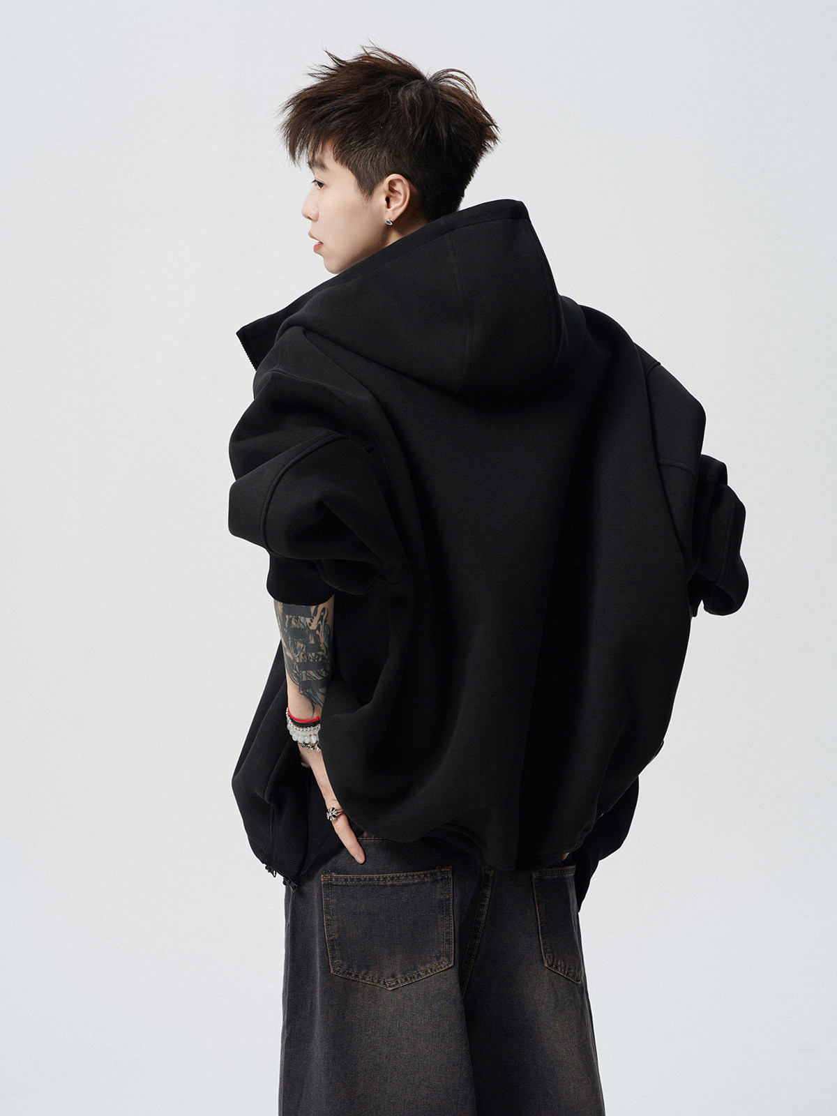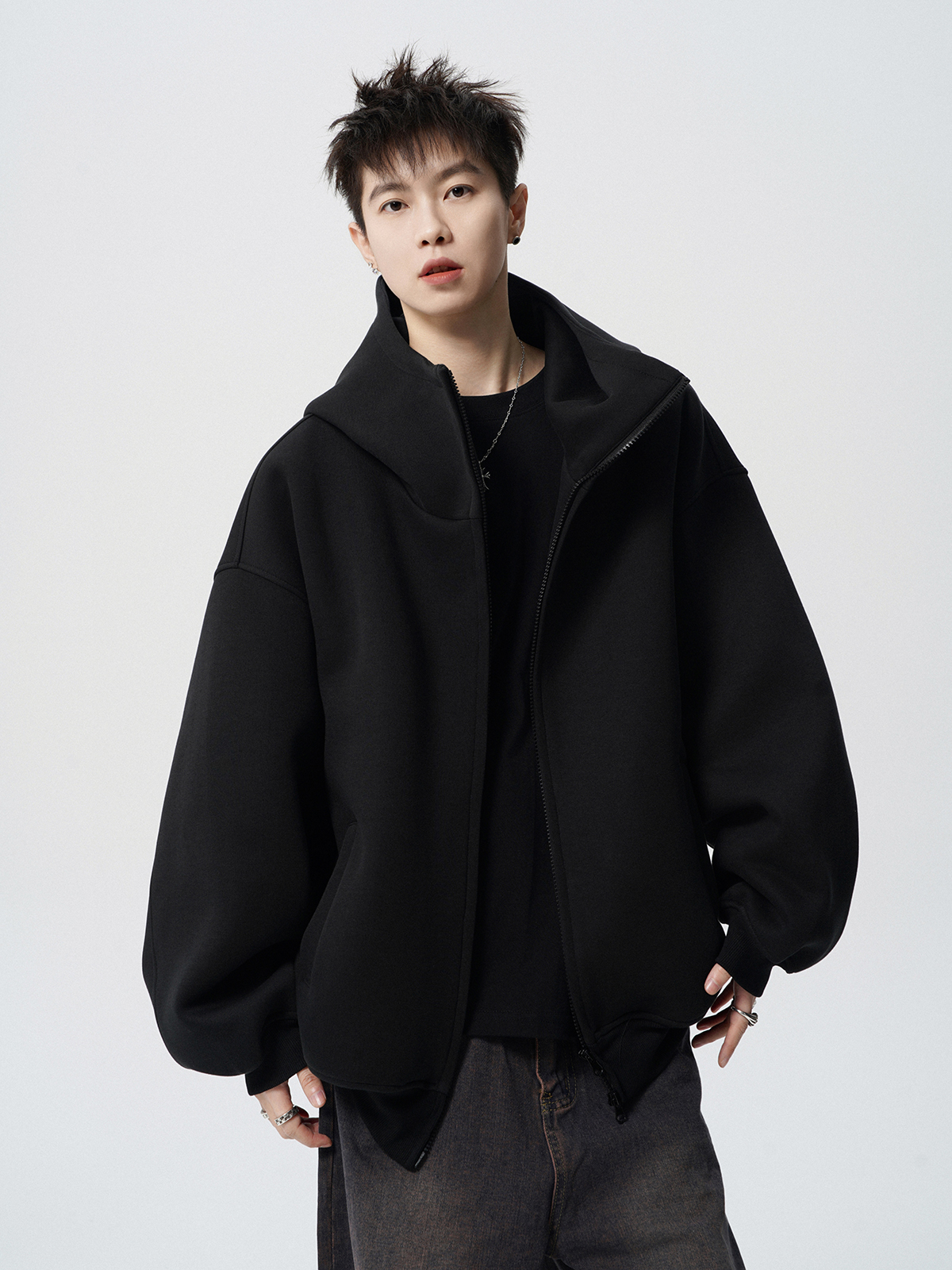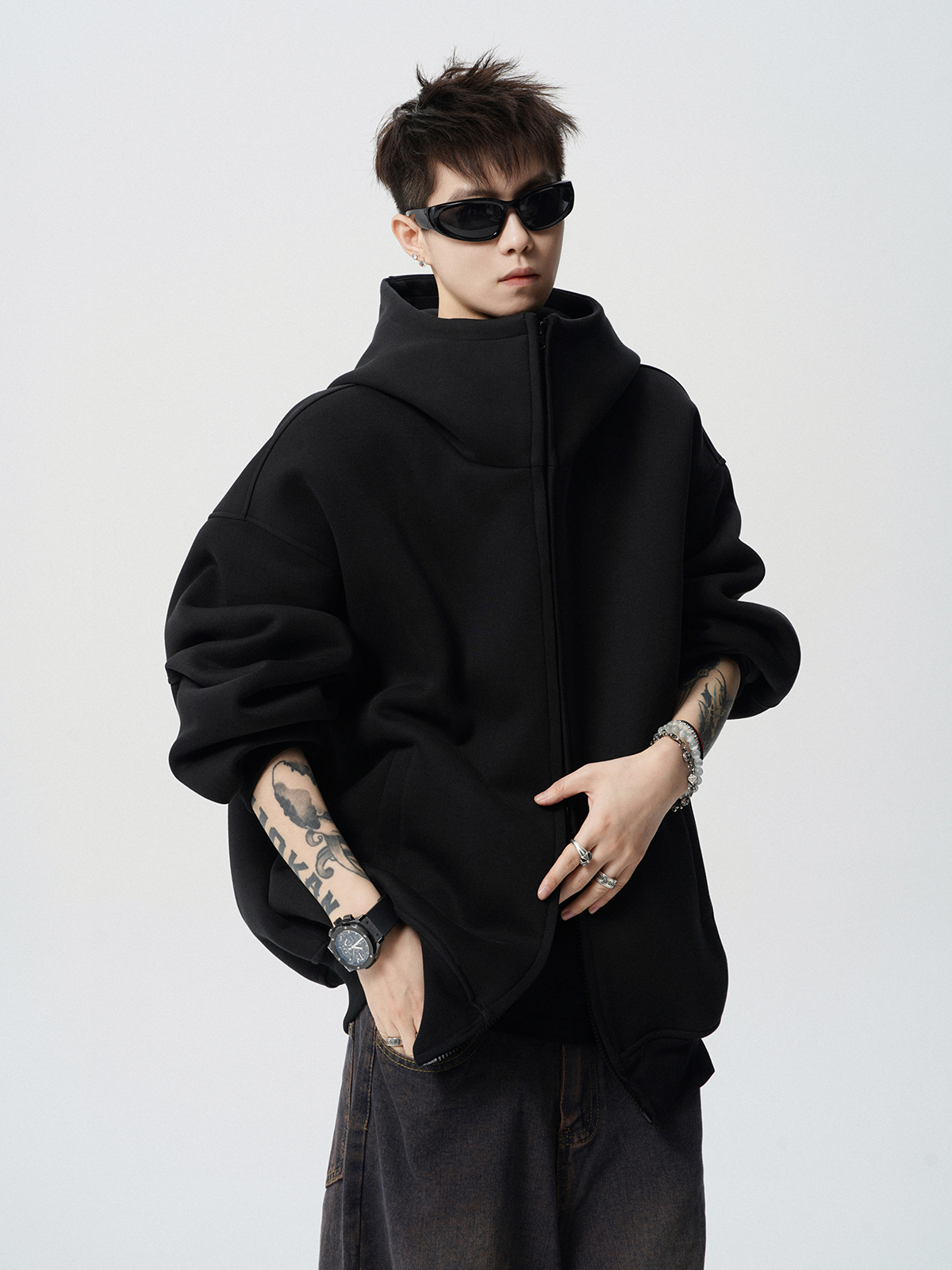 美式重磅開衫衛衣男秋季潮牌慵懶風連帽外套高街痞帥休閒高領帽衫