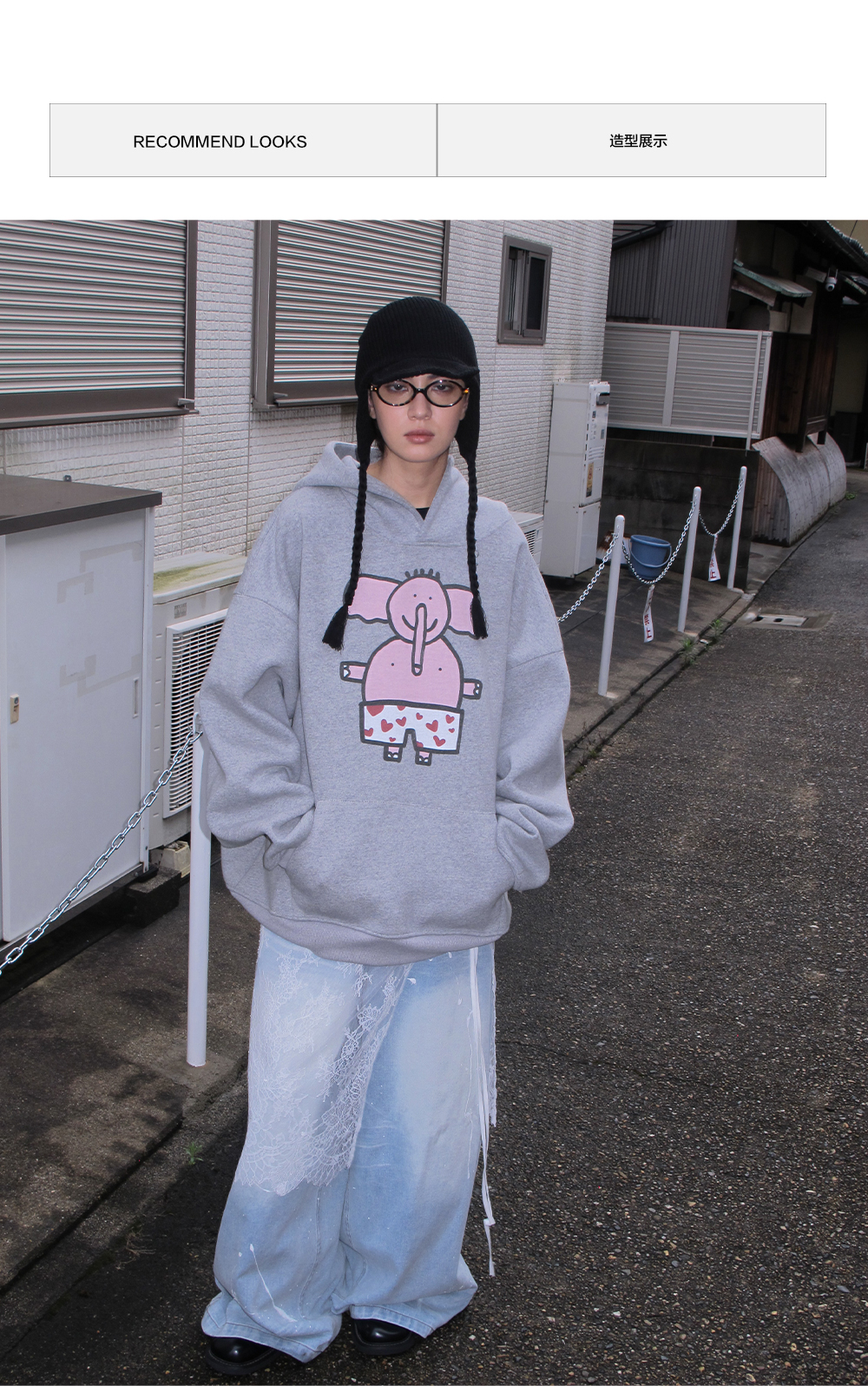 ANTERIOR LOVED 多色小象印花原創寬鬆衛衣