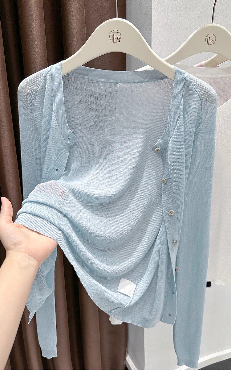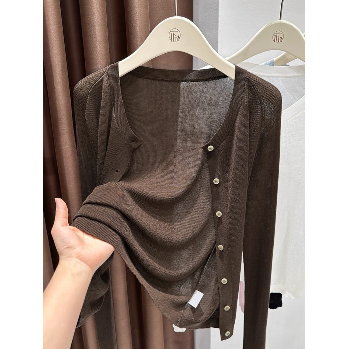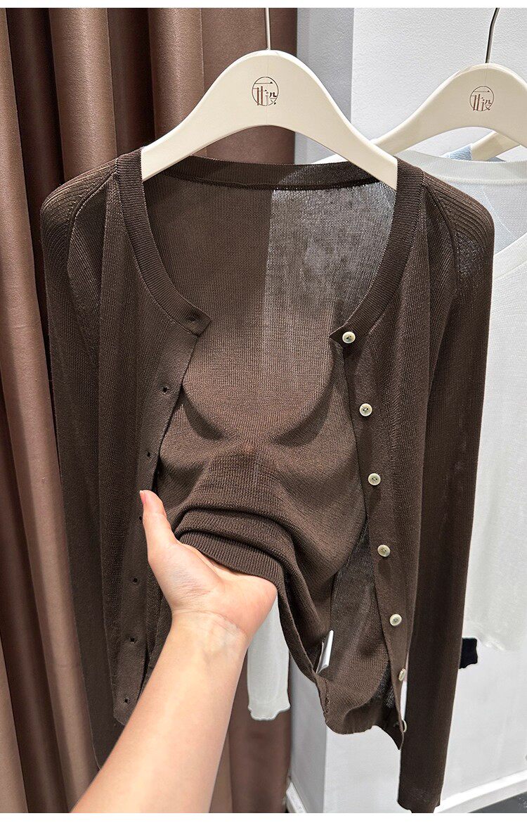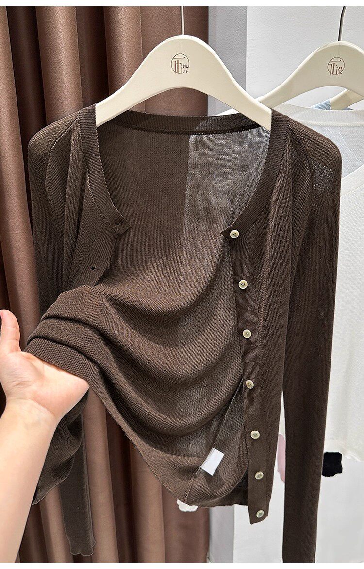 咖色針織開衫外套薄款早秋流行穿搭萊賽爾天絲上衣防曬披肩高級感
