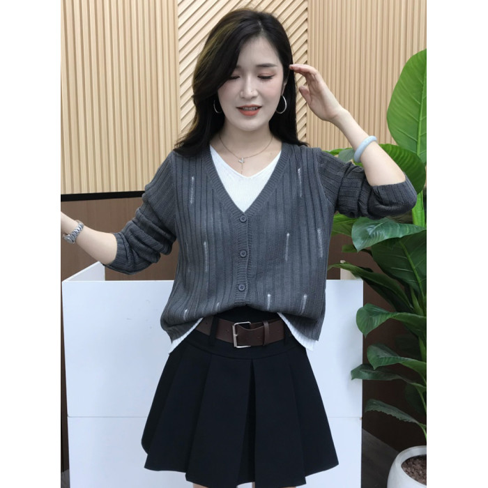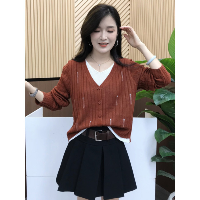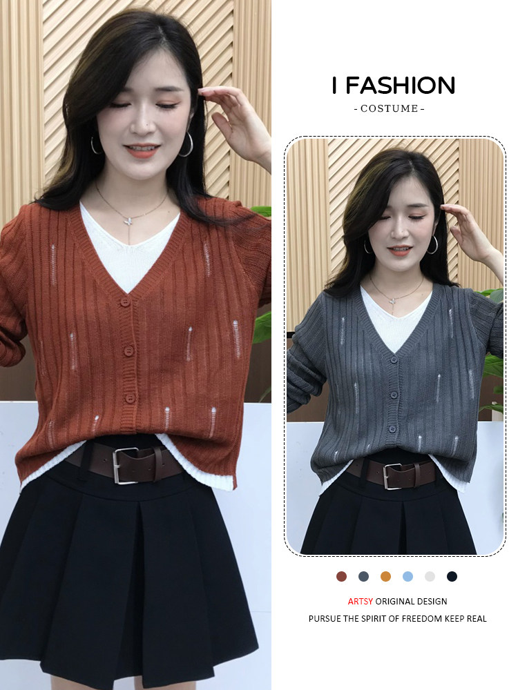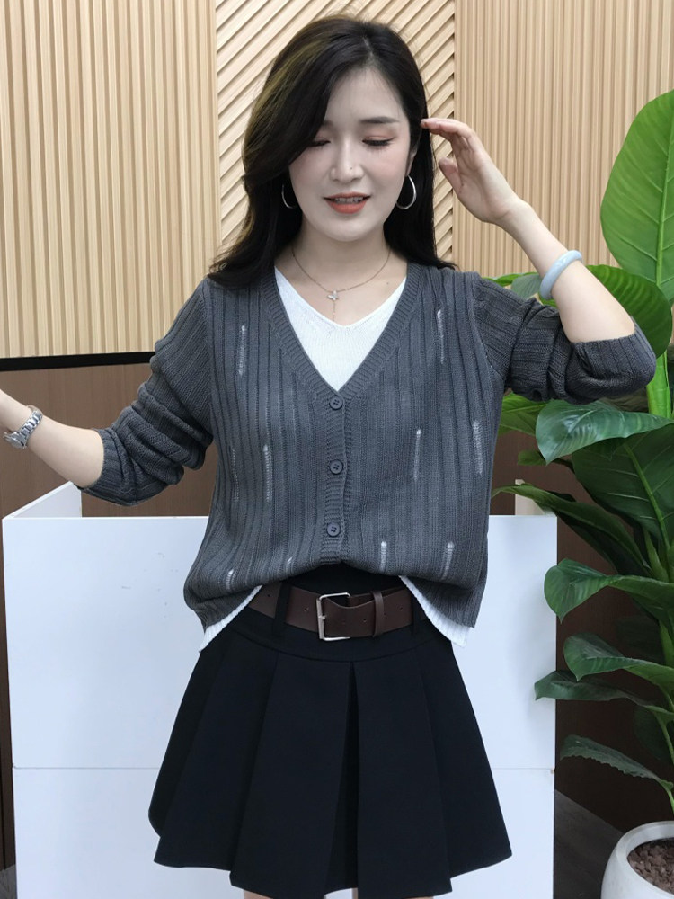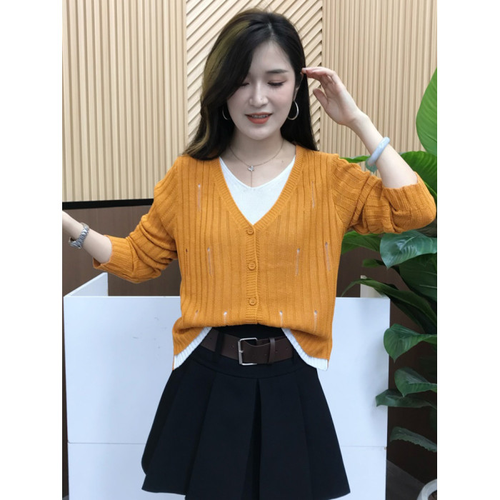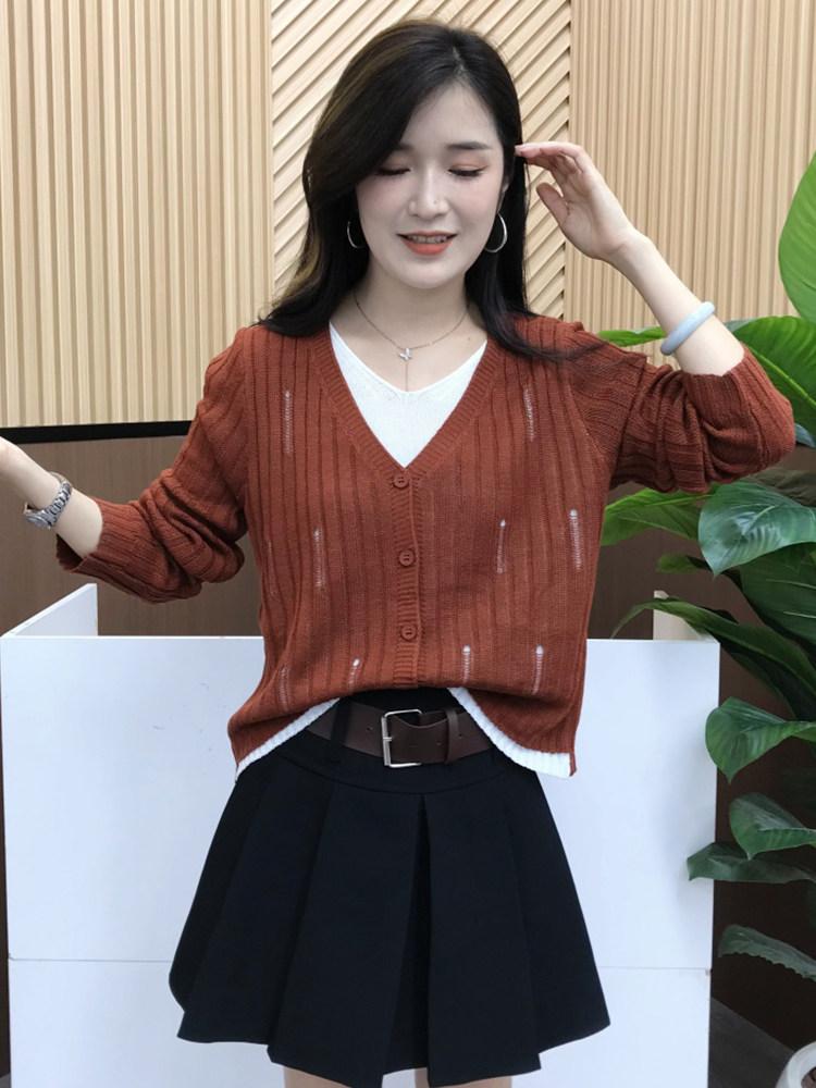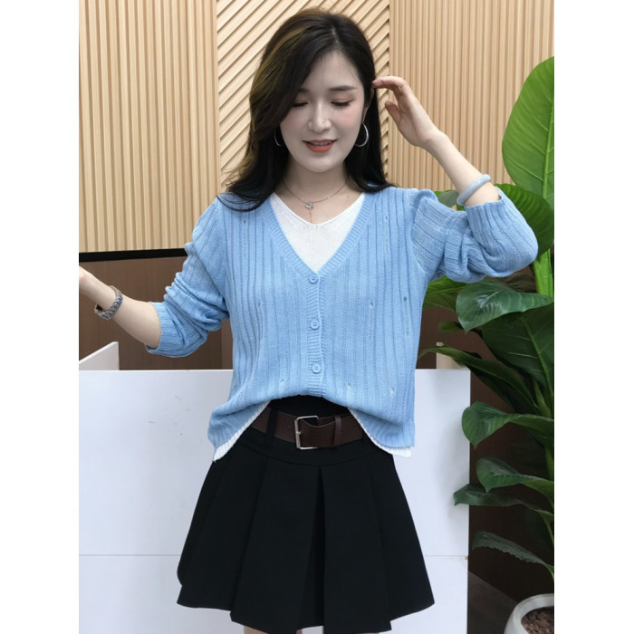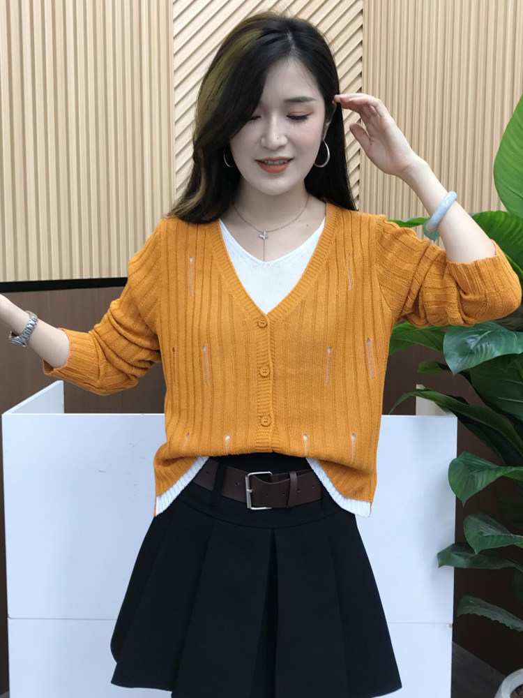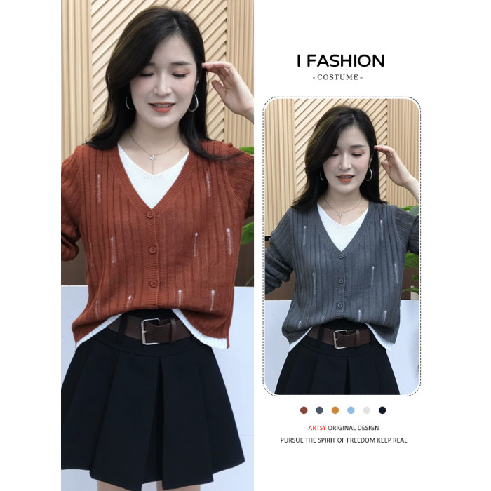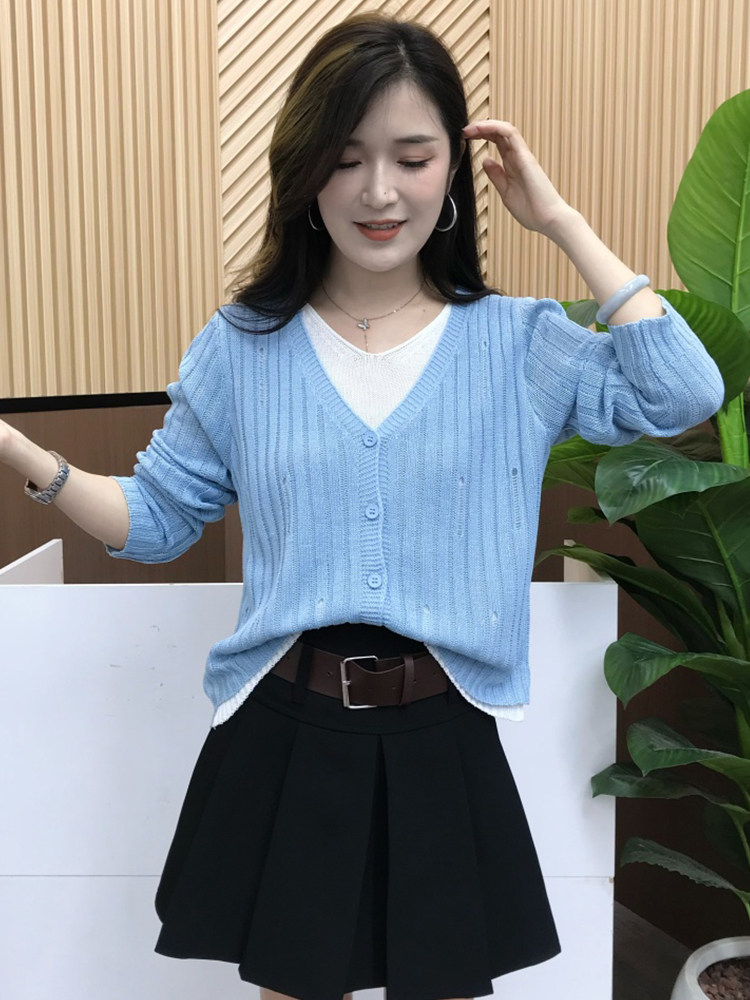 休閒寬松顯瘦小衆拼接上衣女2025秋季新款設計感假兩件V領針織衫
