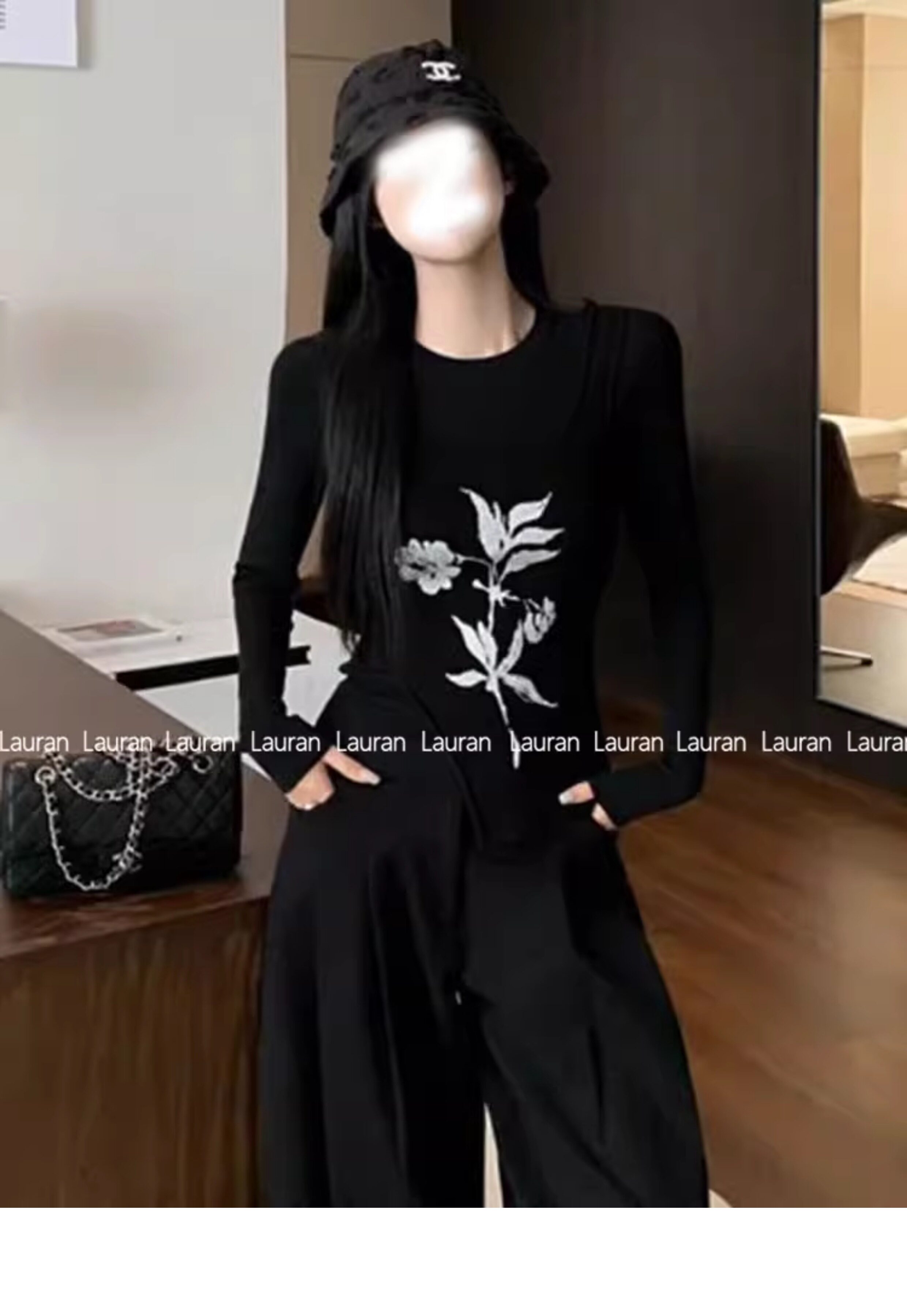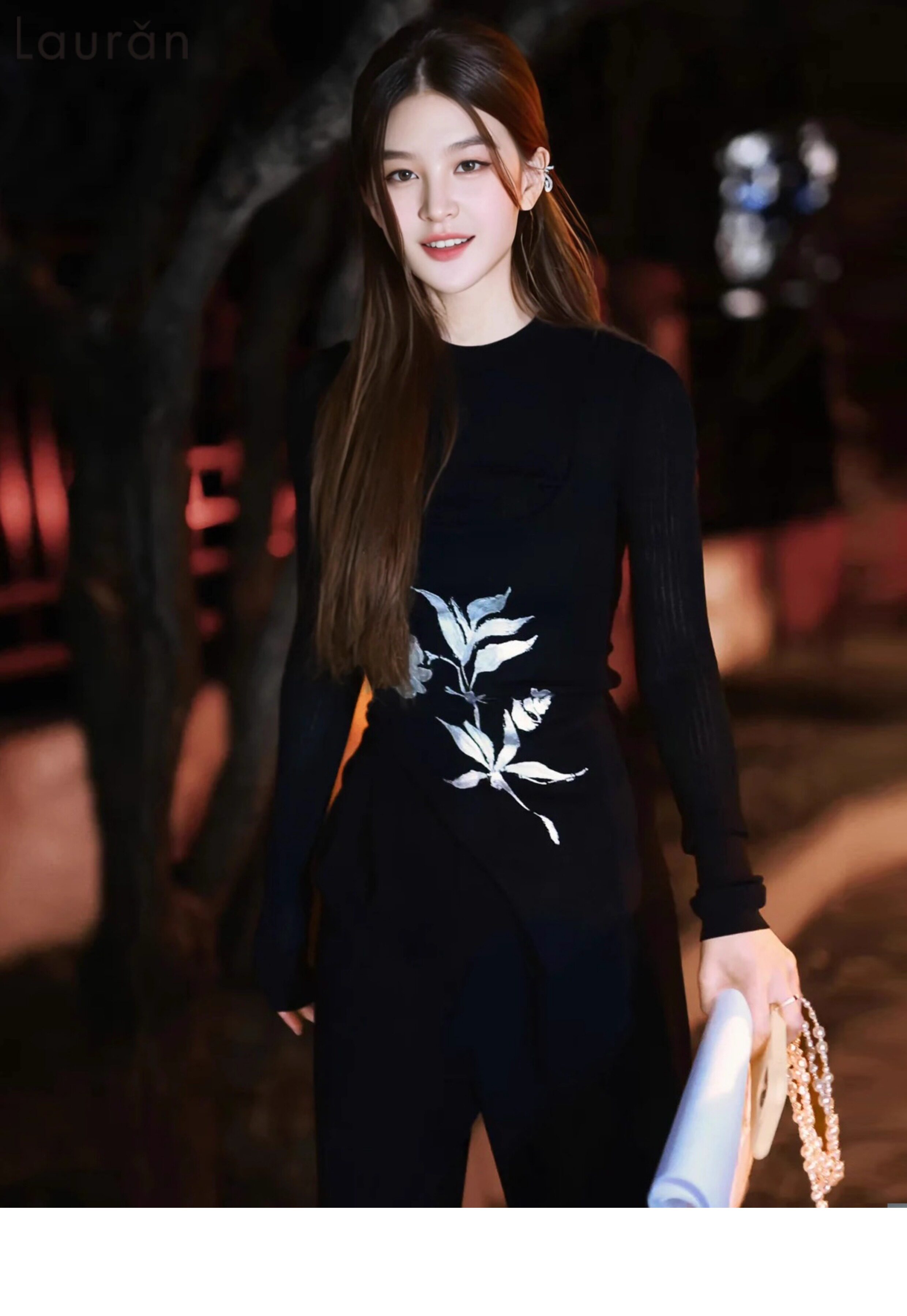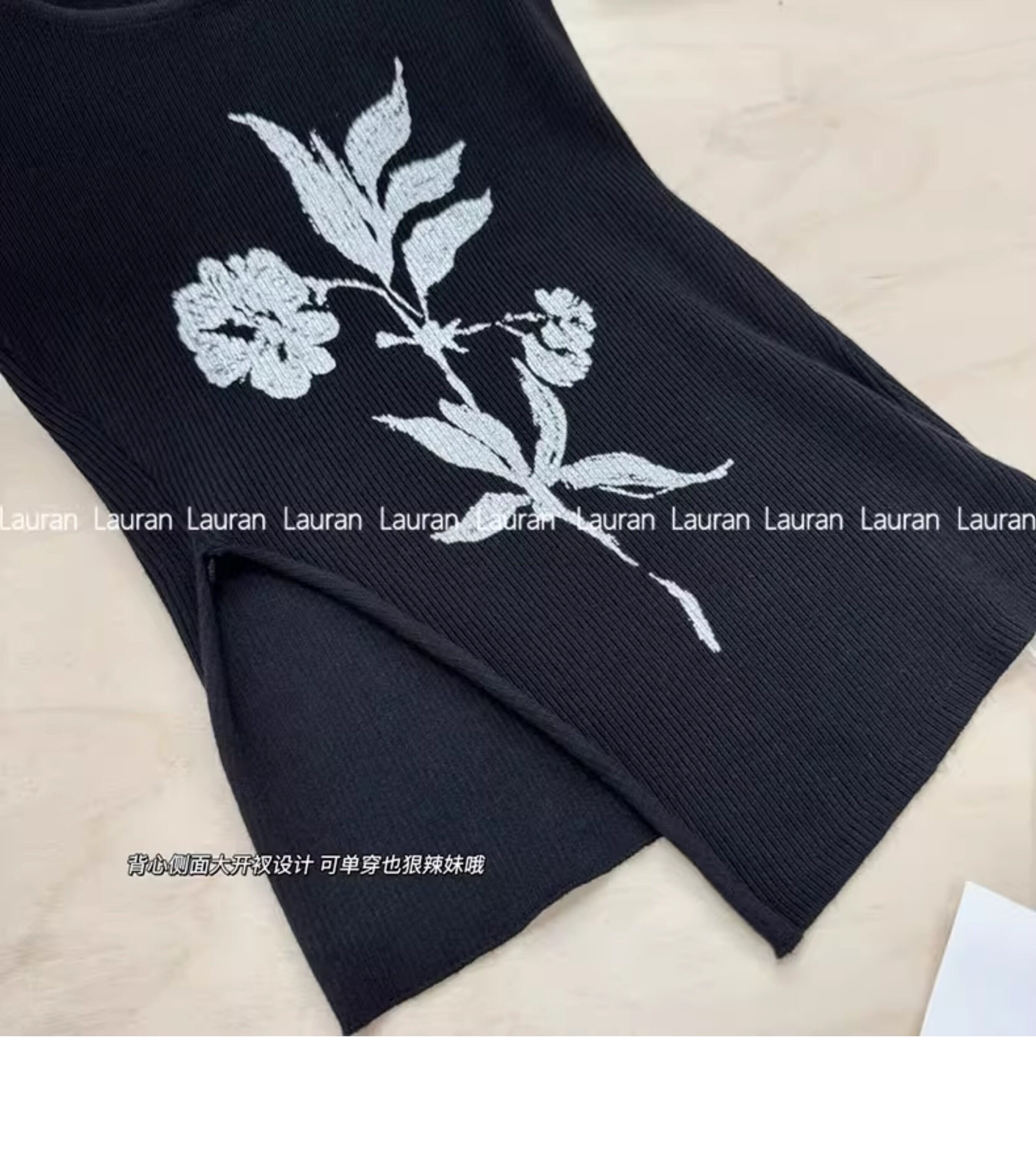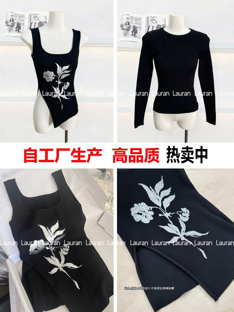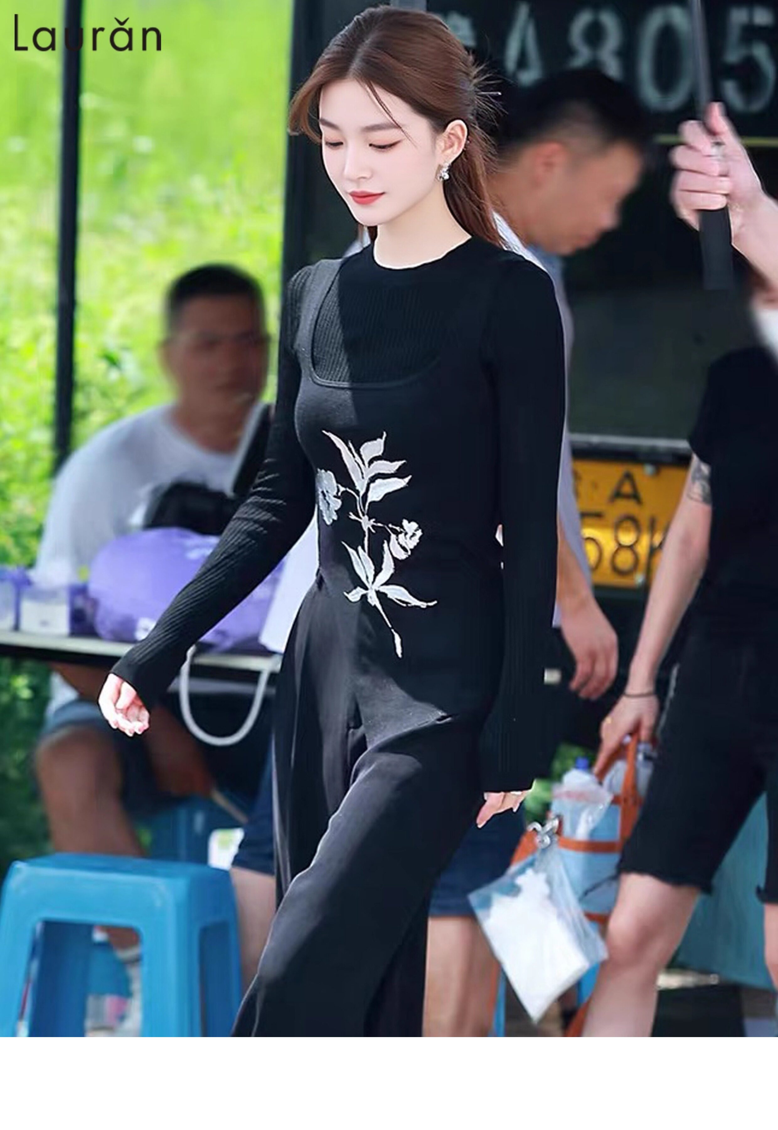 許我耀眼趙露思同款黑色針織衫上衣女秋設計感長袖曡穿背心打底衫