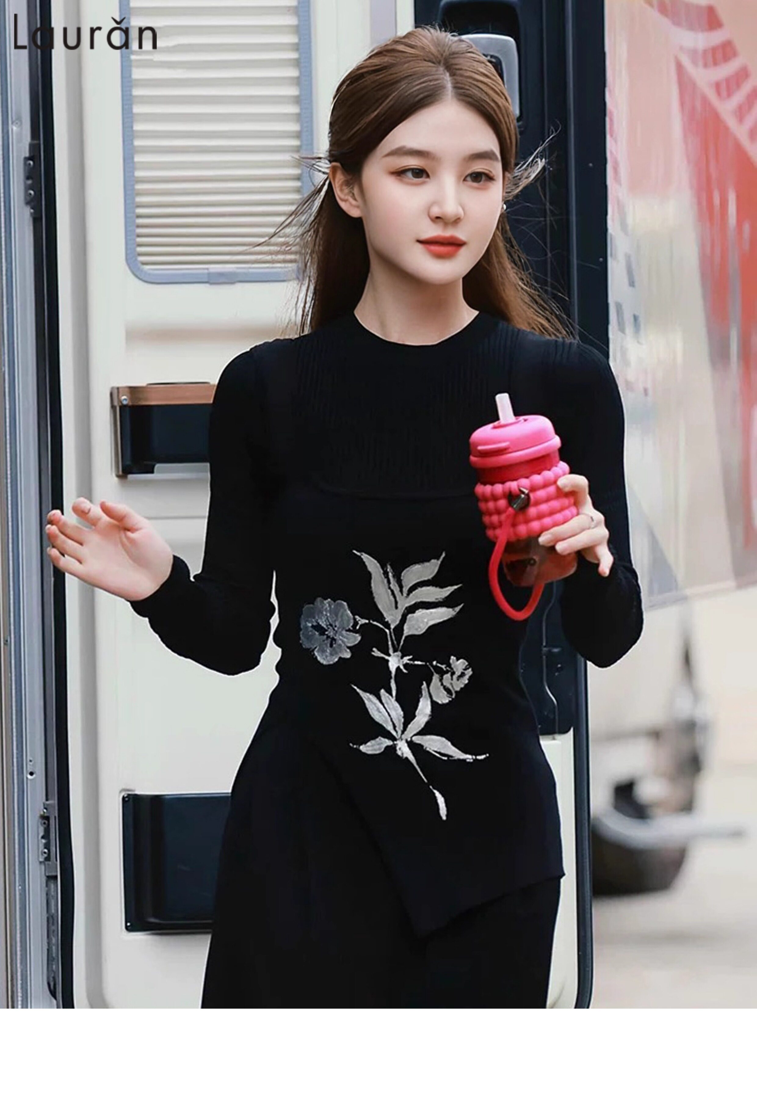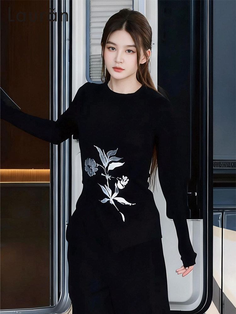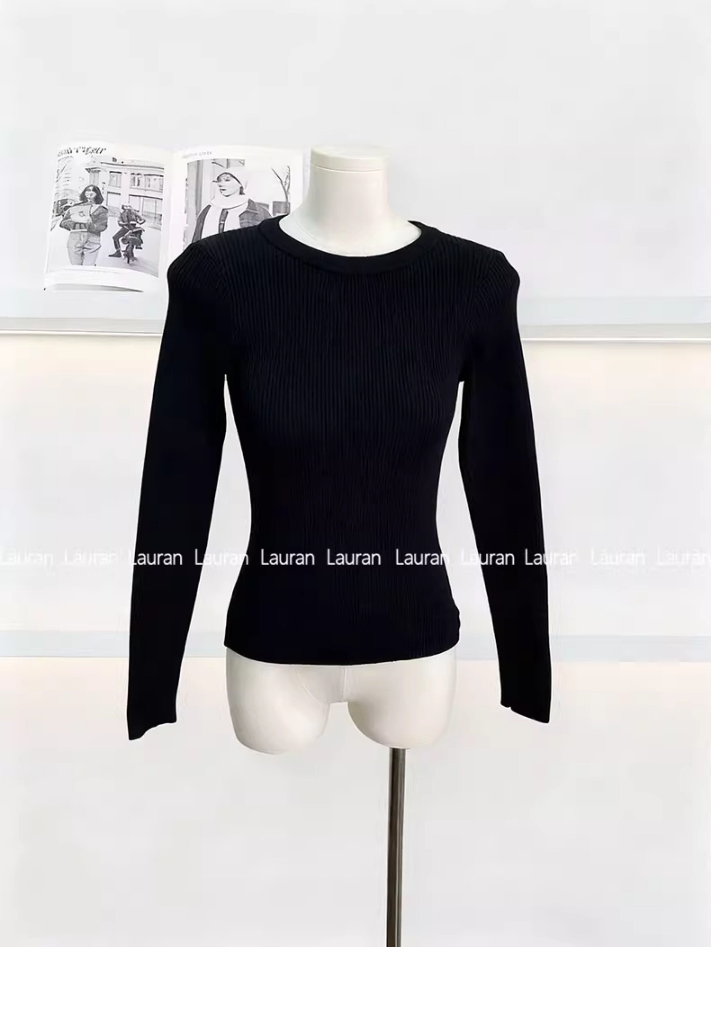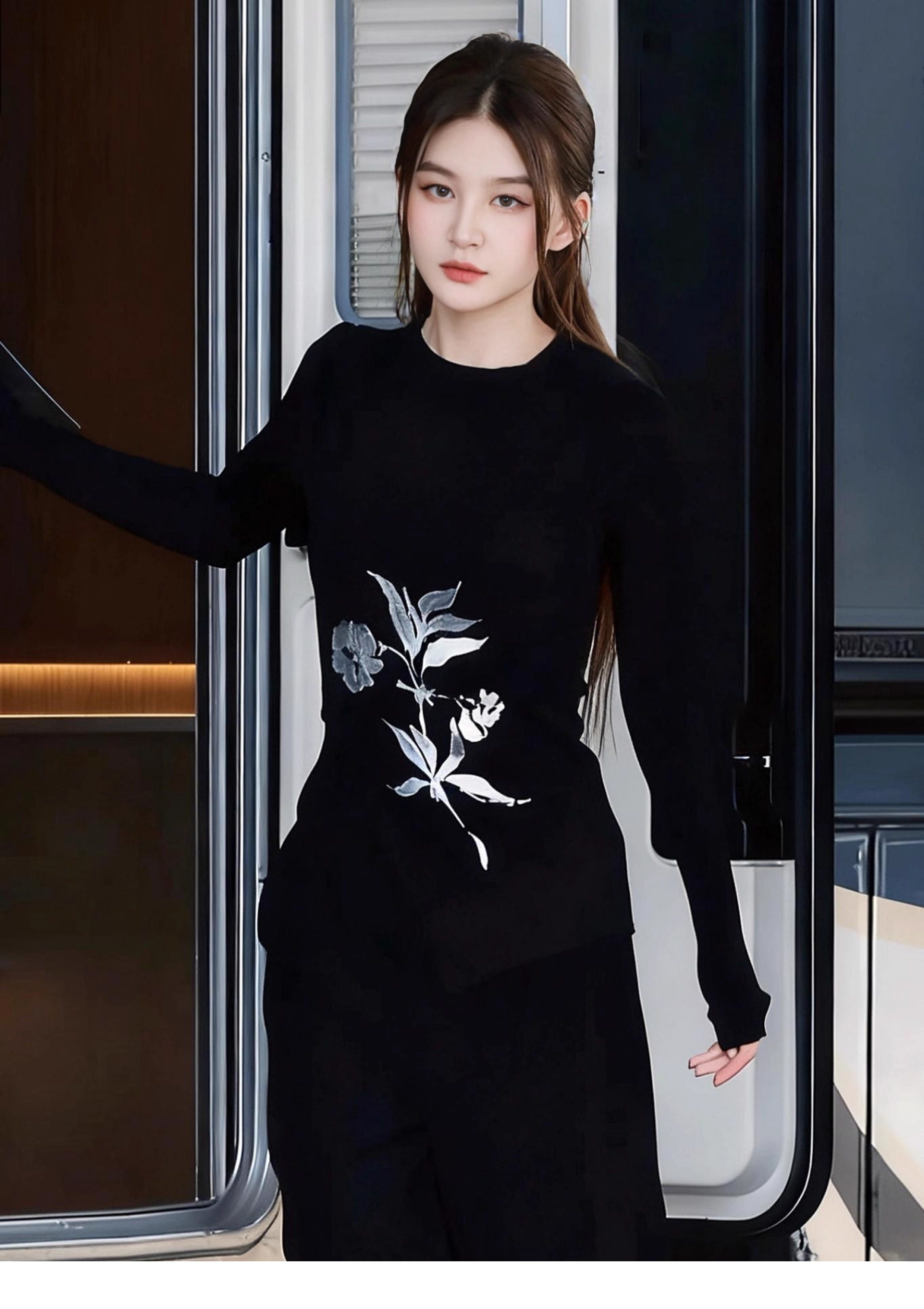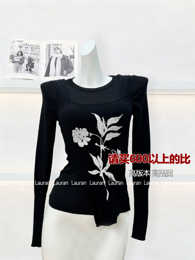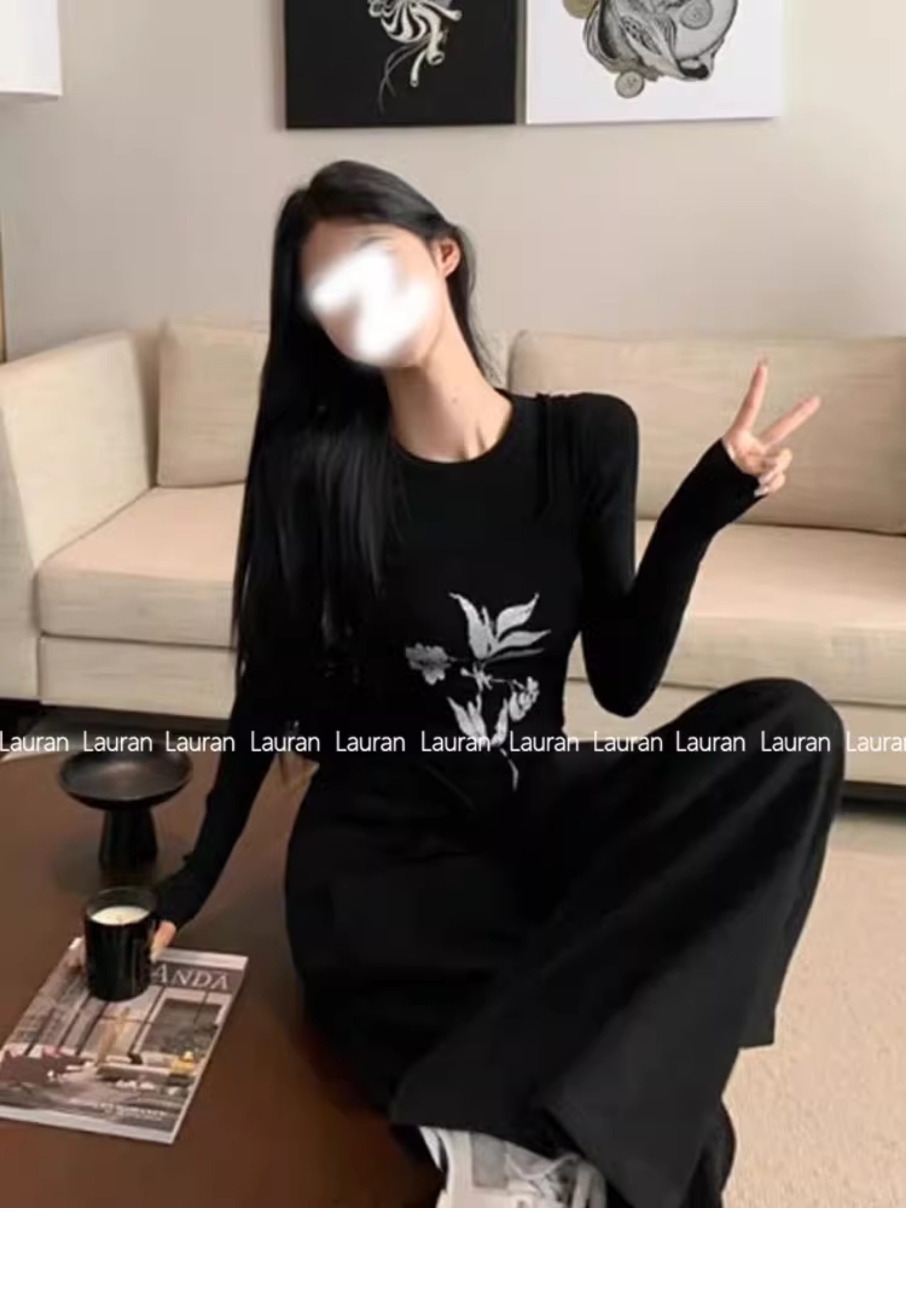 許我耀眼趙露思同款黑色針織衫上衣女秋設計感長袖曡穿背心打底衫