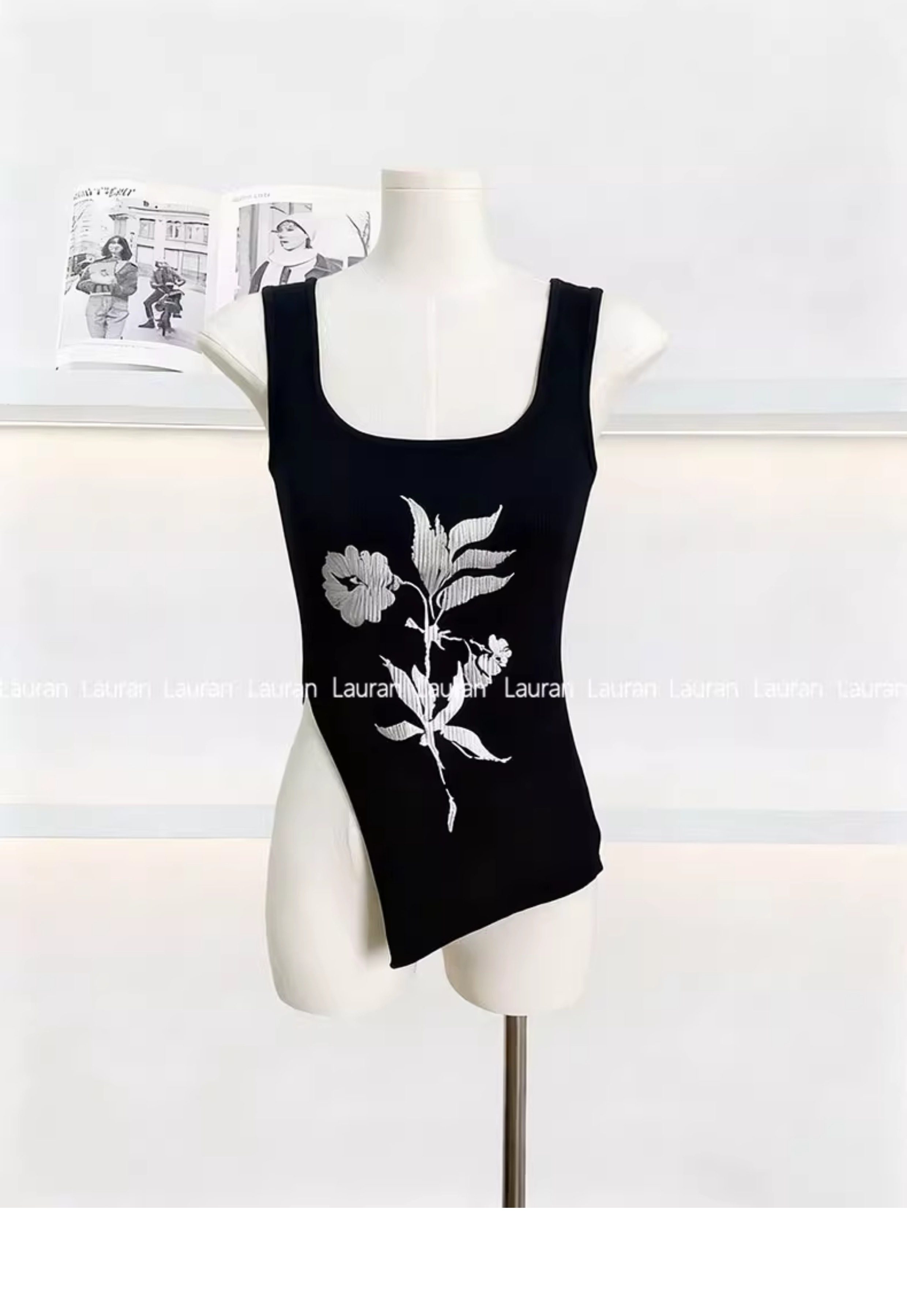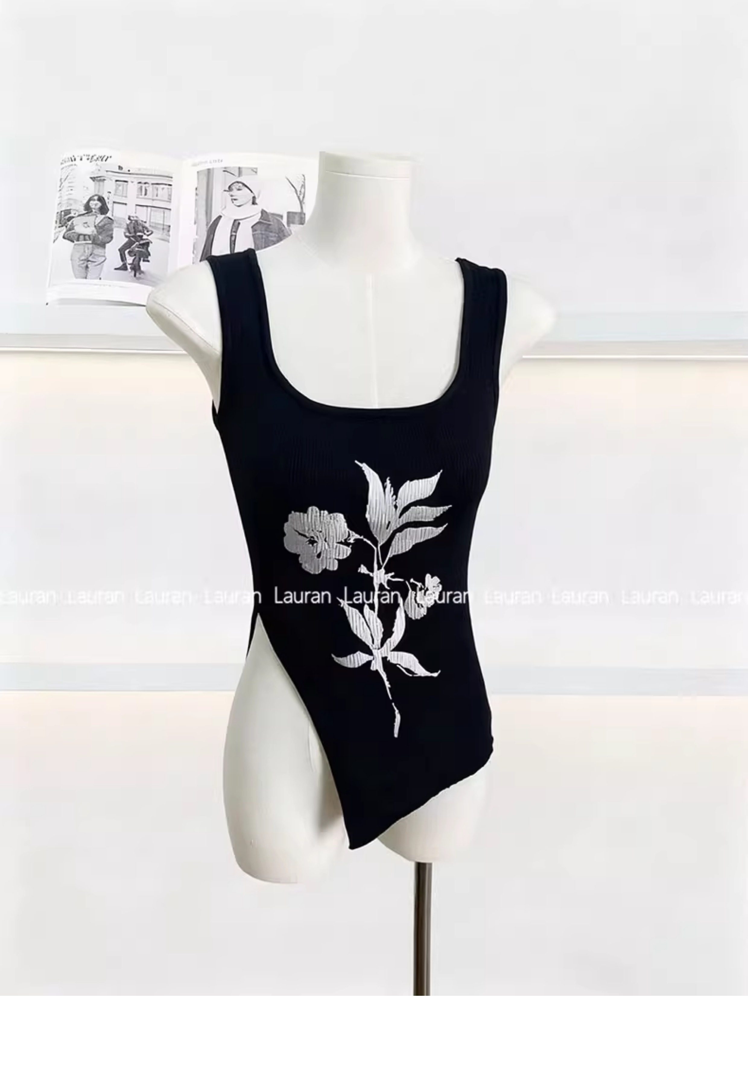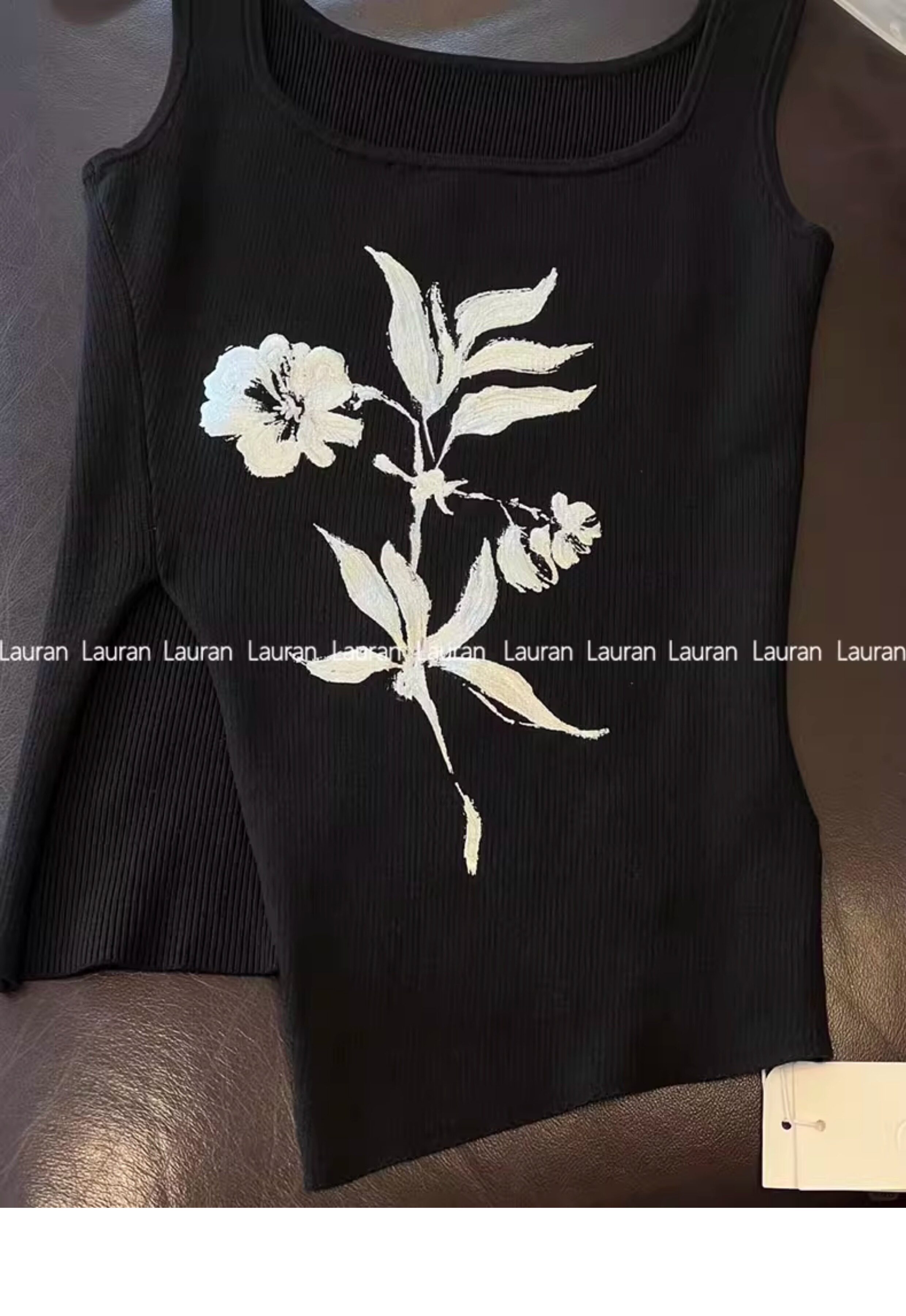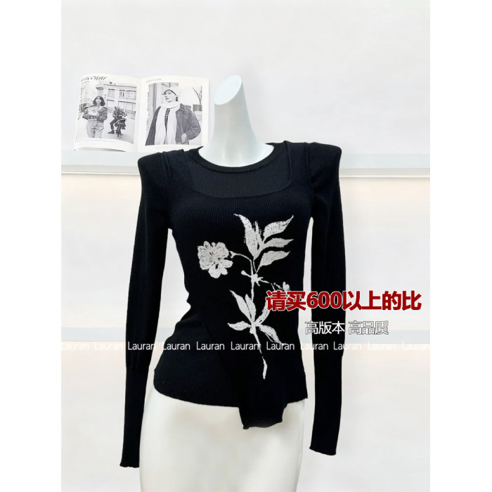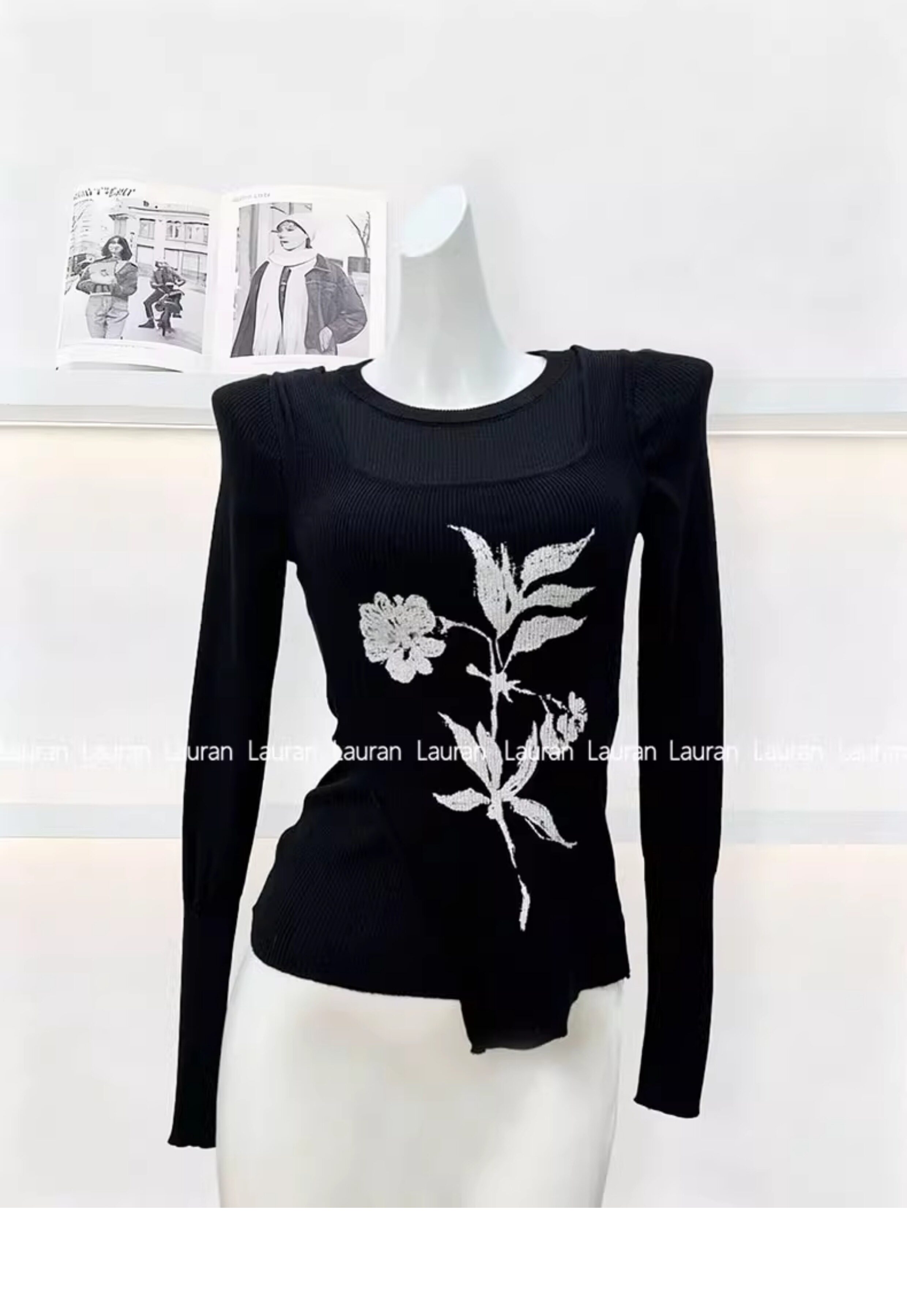 許我耀眼趙露思同款黑色針織衫上衣女秋設計感長袖曡穿背心打底衫