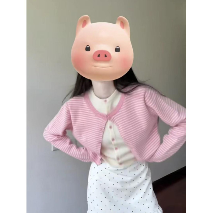 粉色條紋假兩件針織衫女早秋季氛圍感短款開衫毛衣外套高級感上衣