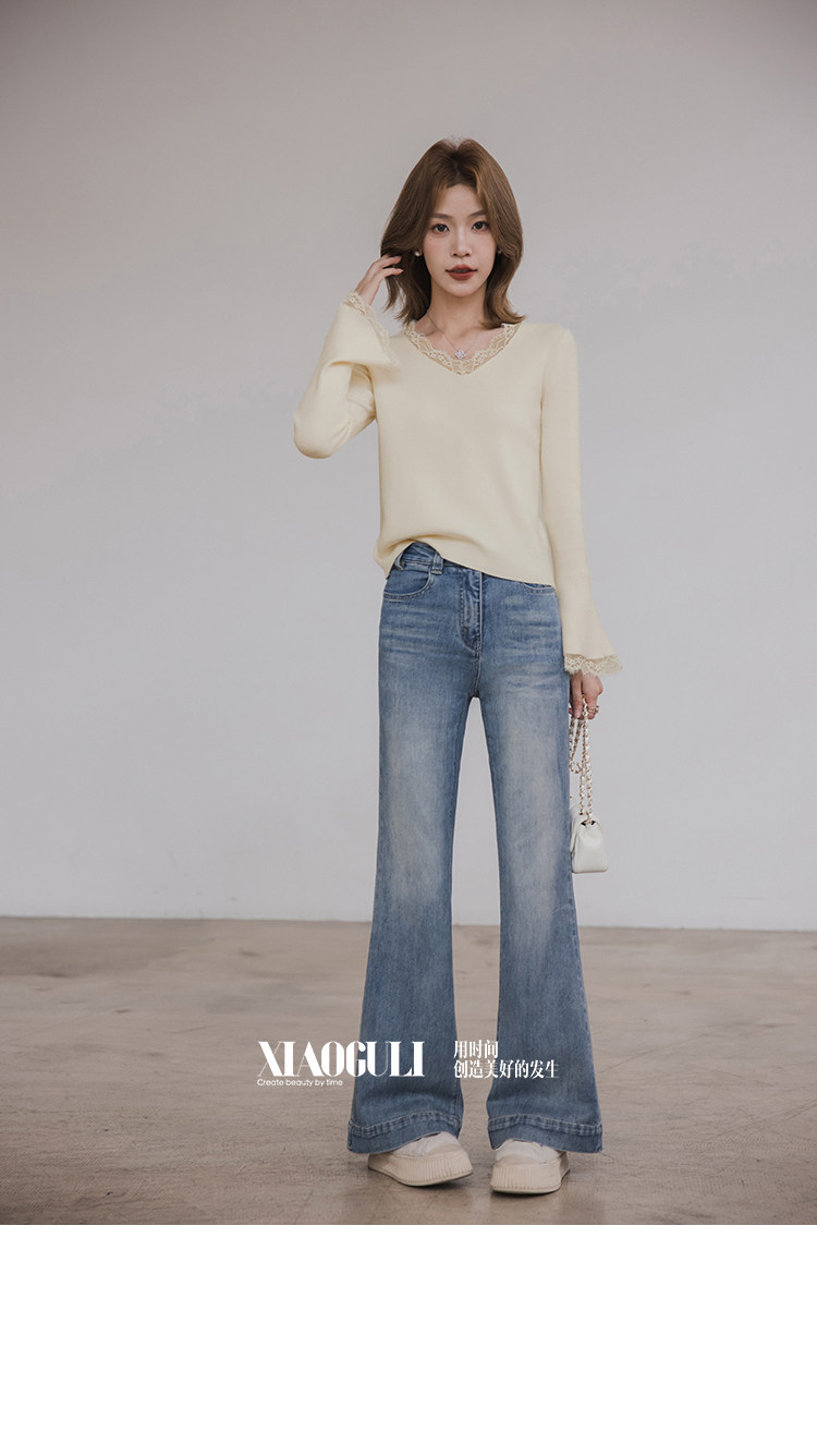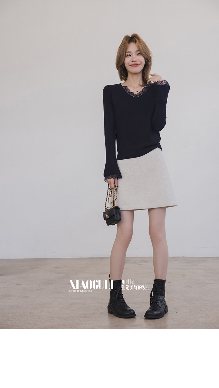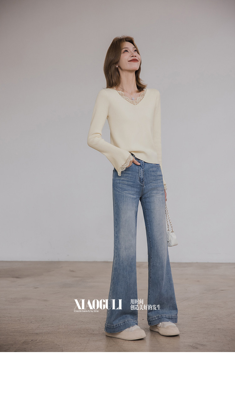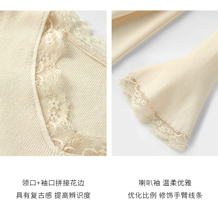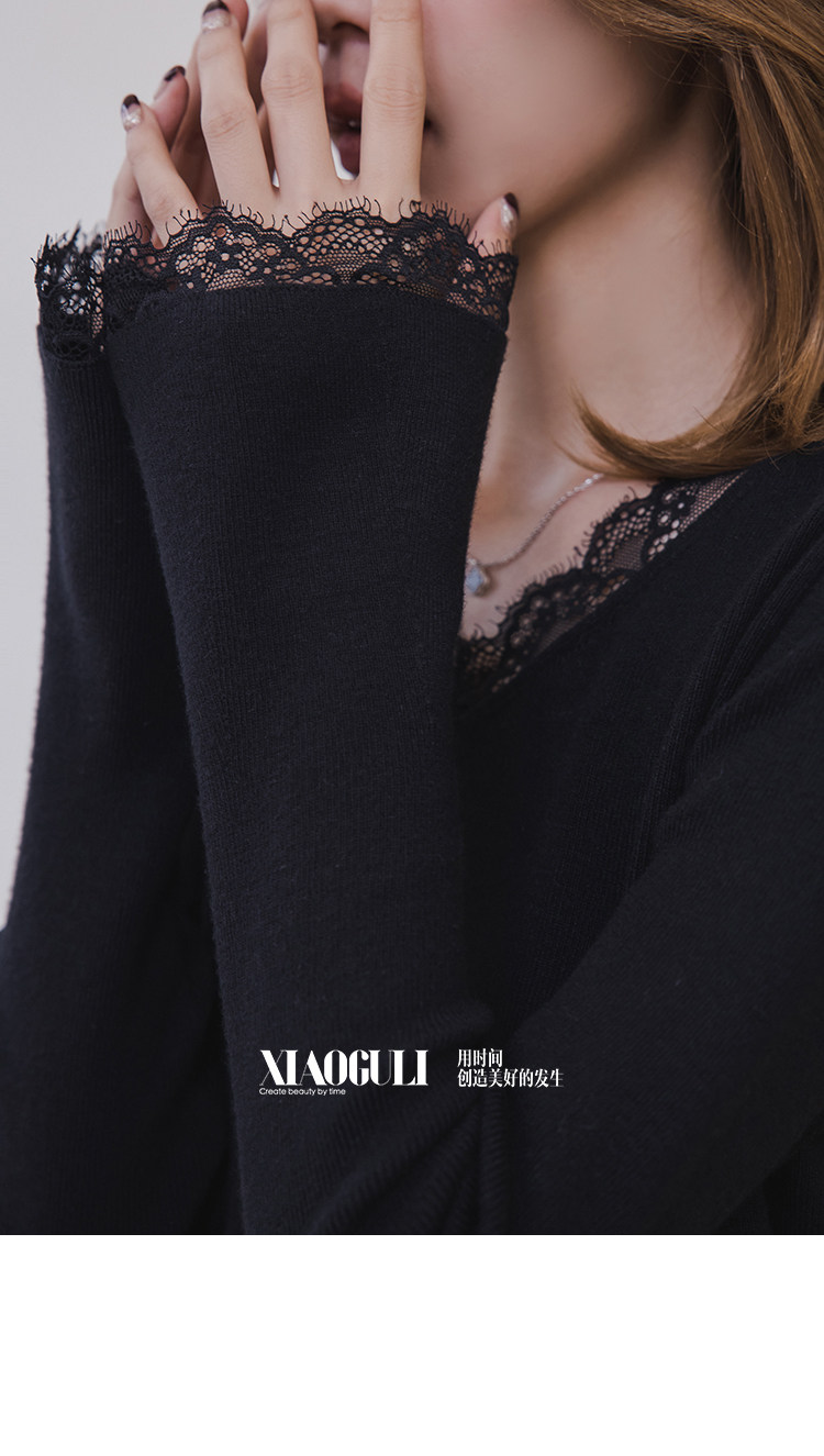 小穀粒氧氣針織衫 蕾絲邊設計感毛衣女秋季新款v領百搭顯瘦上衣