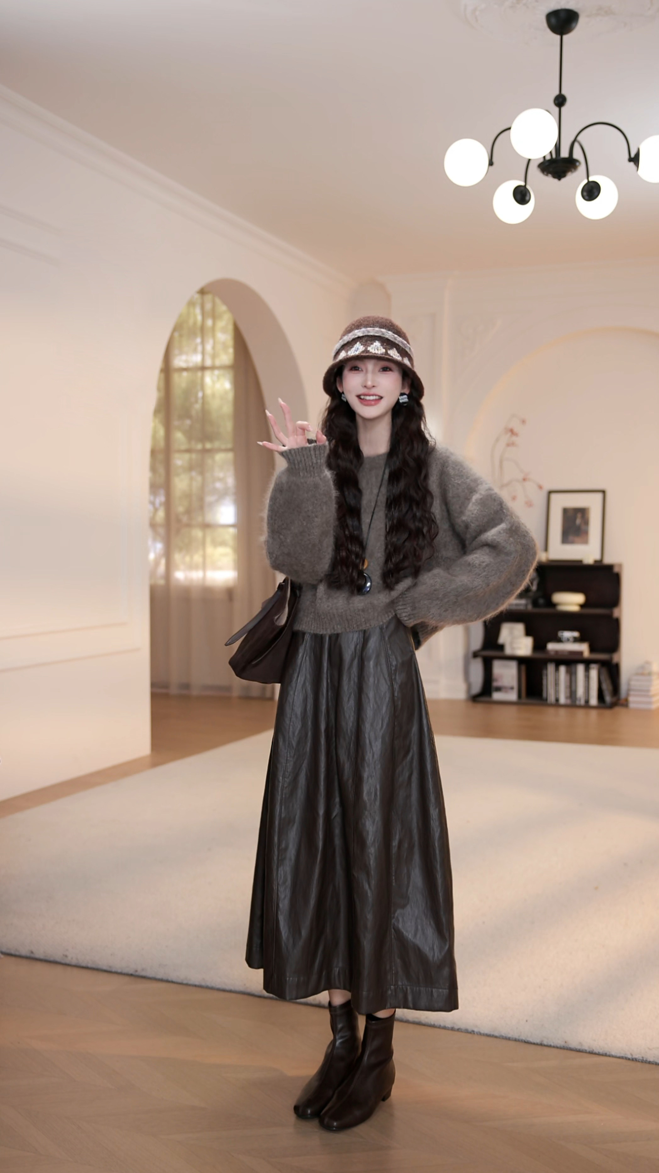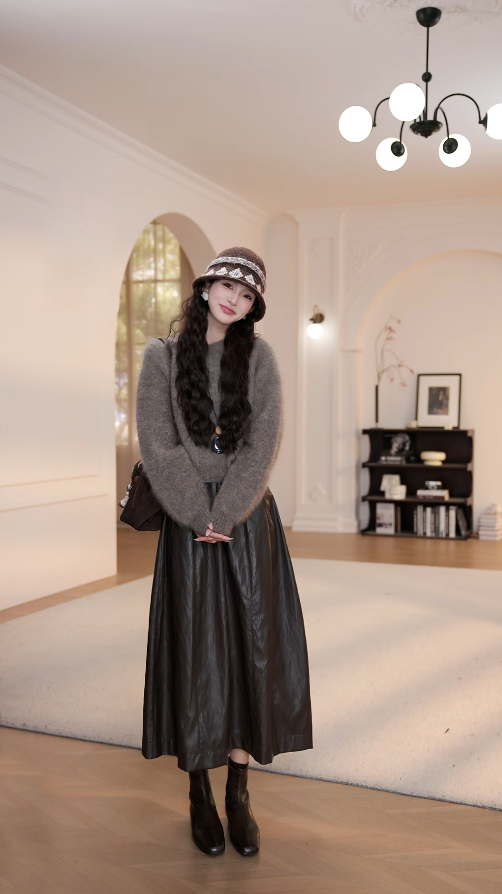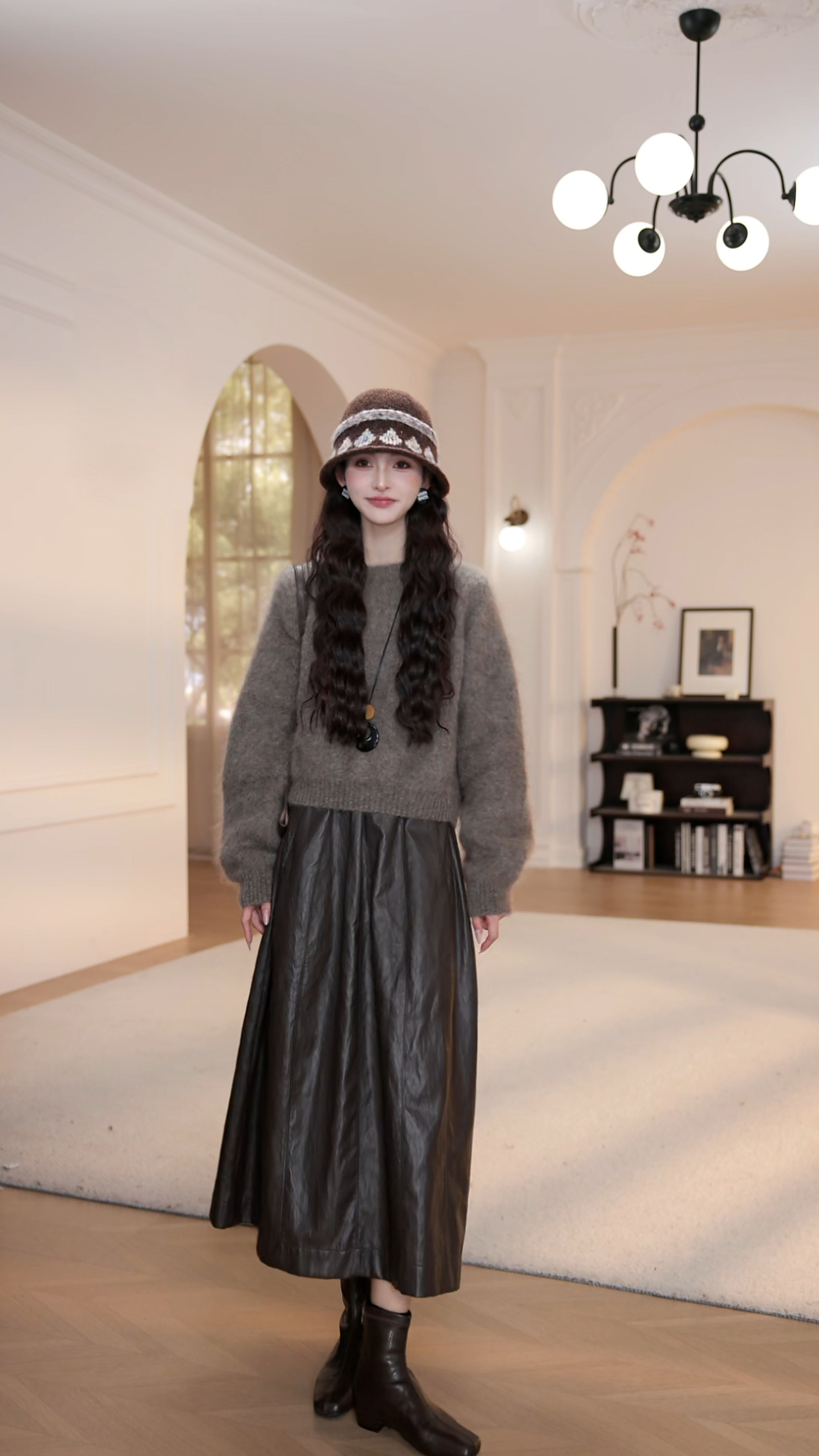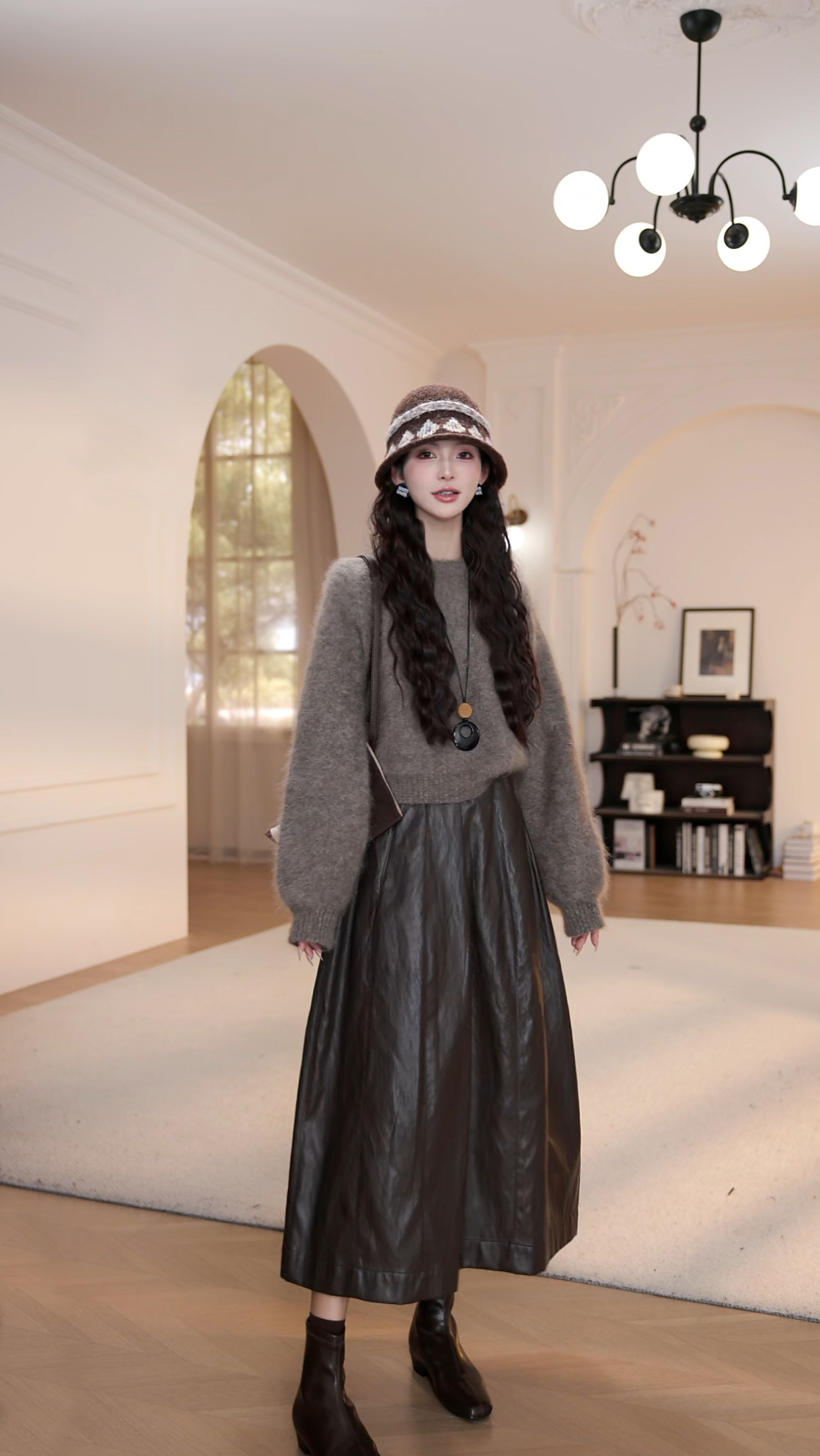 wYANYAN咖色圓領毛衣女秋季新款寬鬆顯瘦長袖慵嬾風衫8947