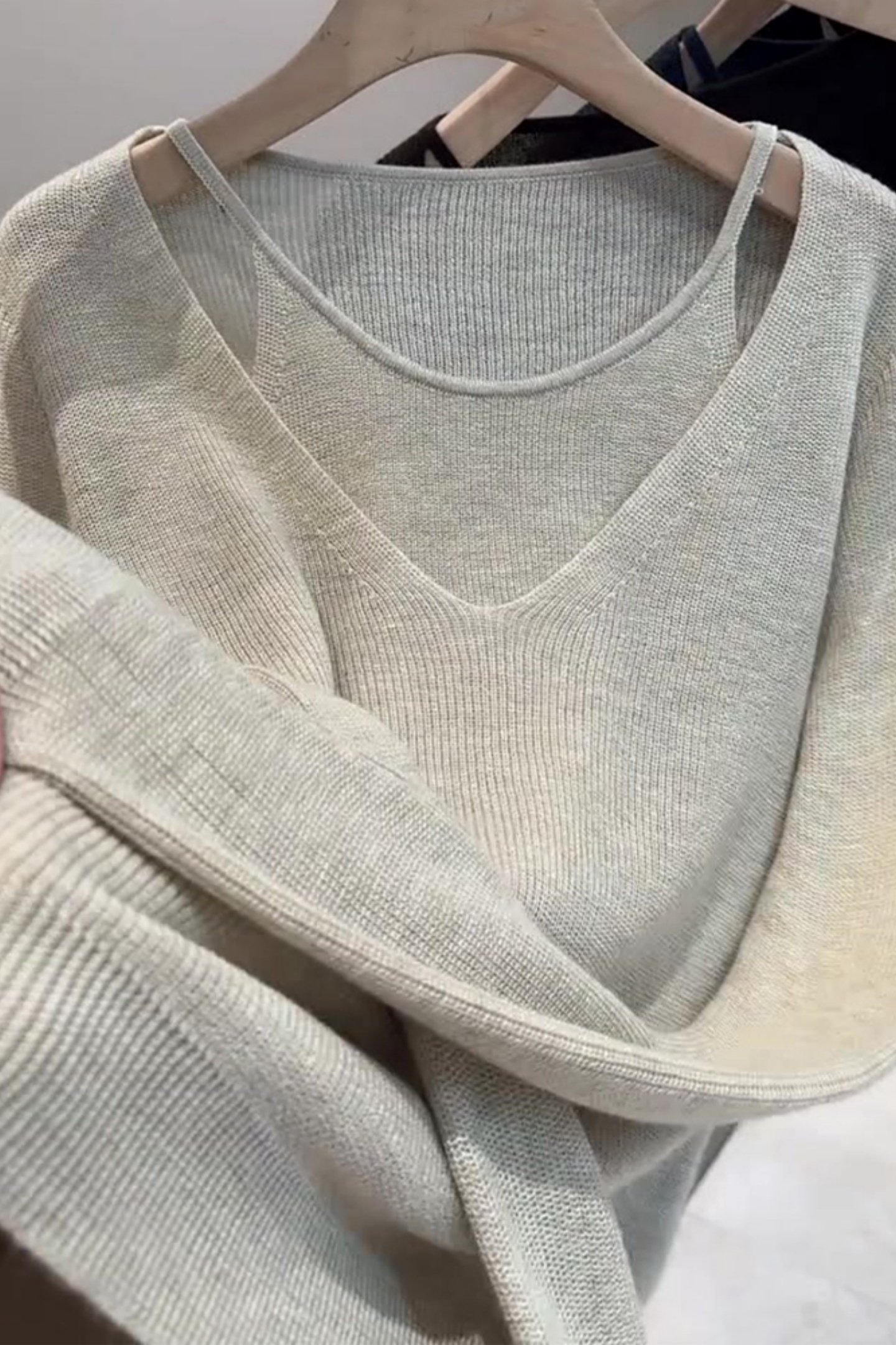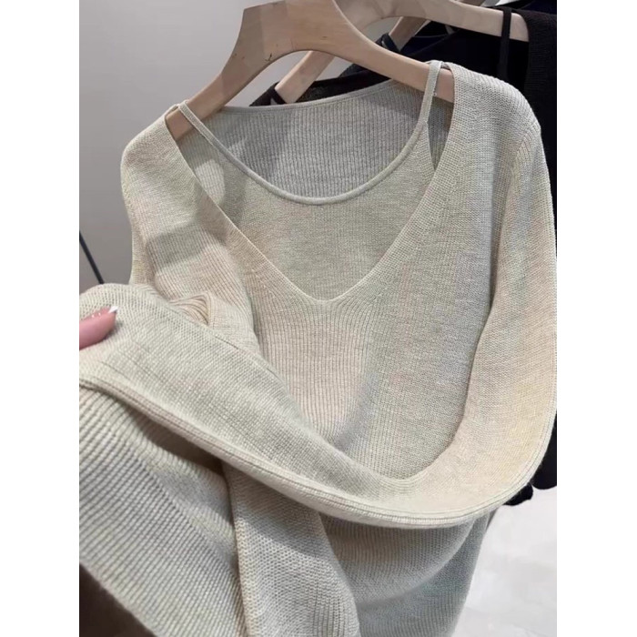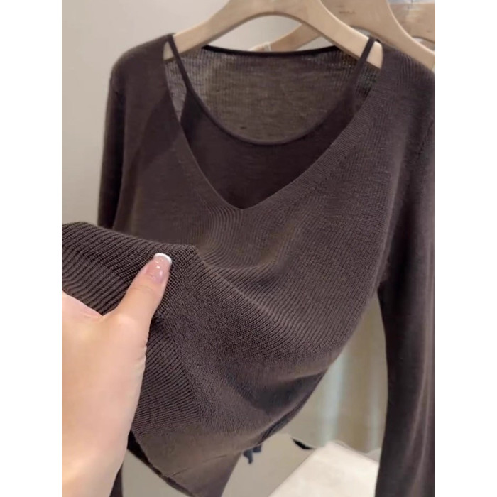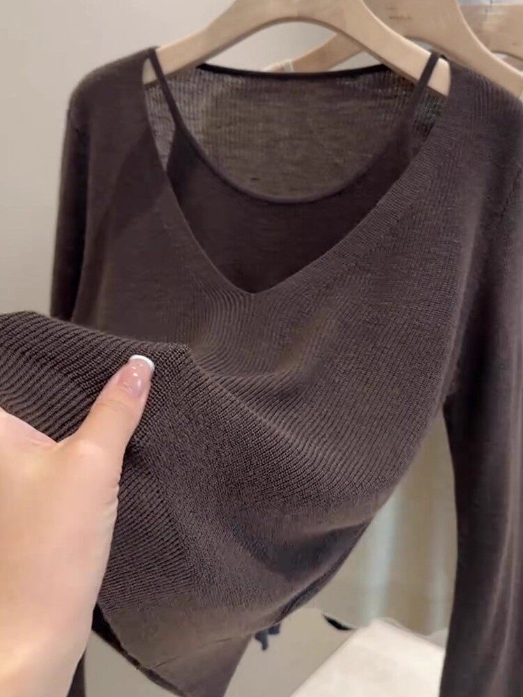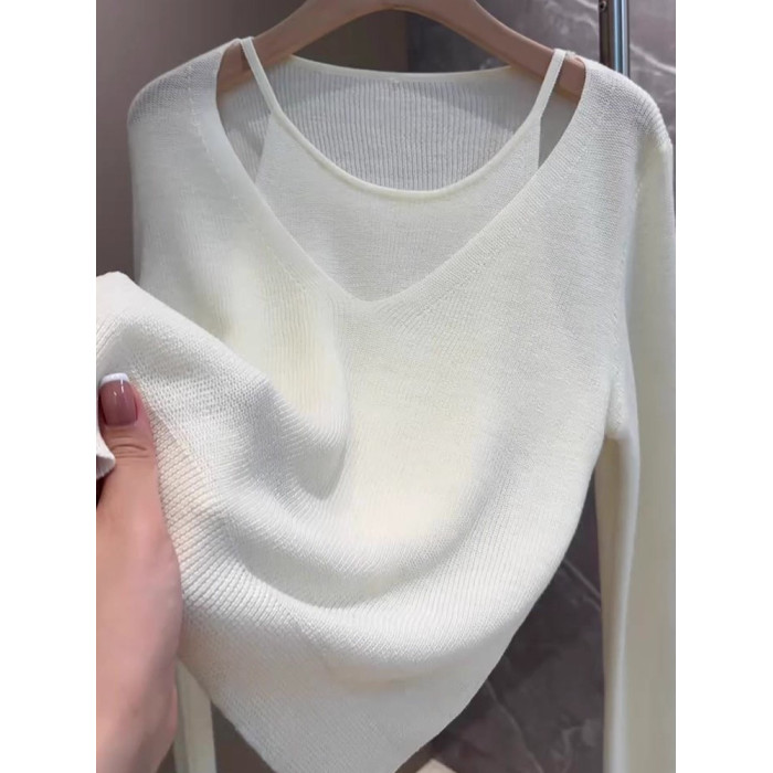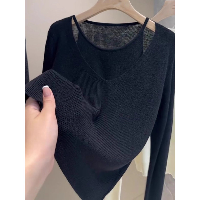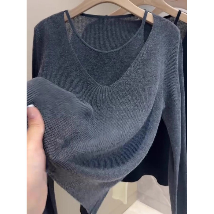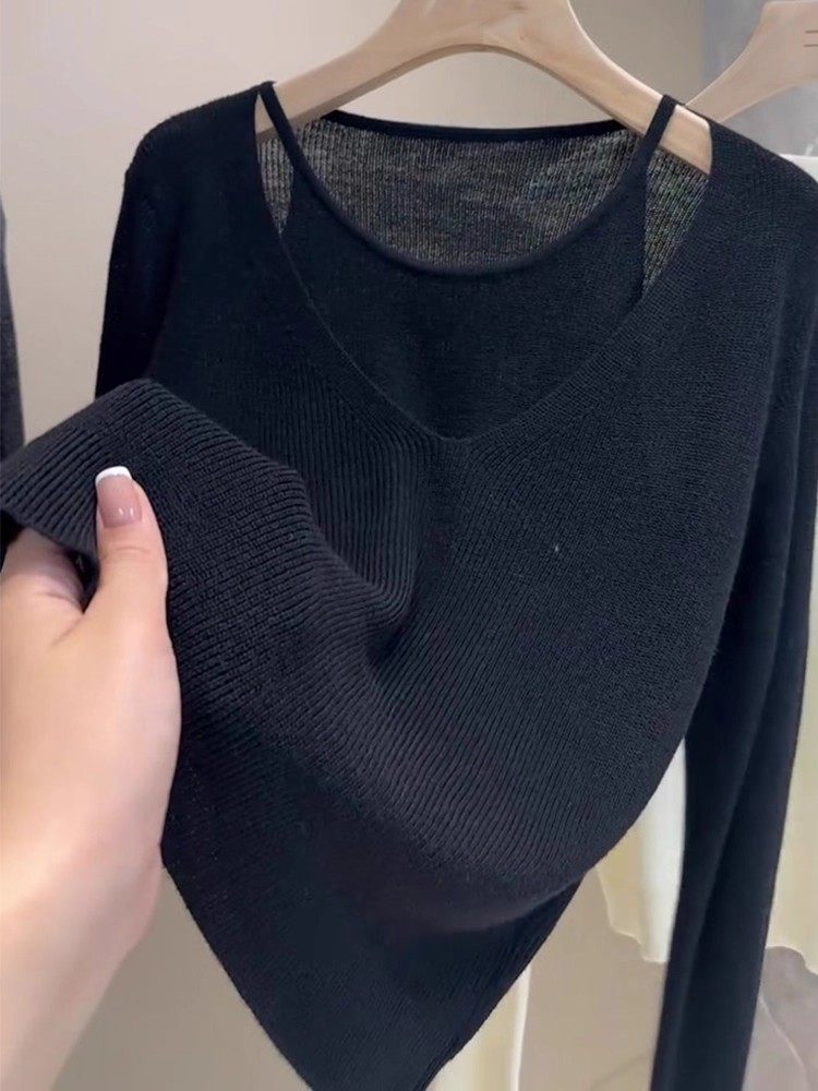 歐貨2025秋季新款顯瘦百搭假兩件純色簡約風六羊毛針織衫上衣女潮