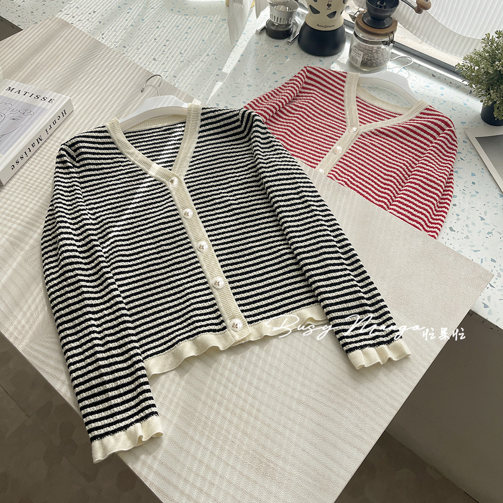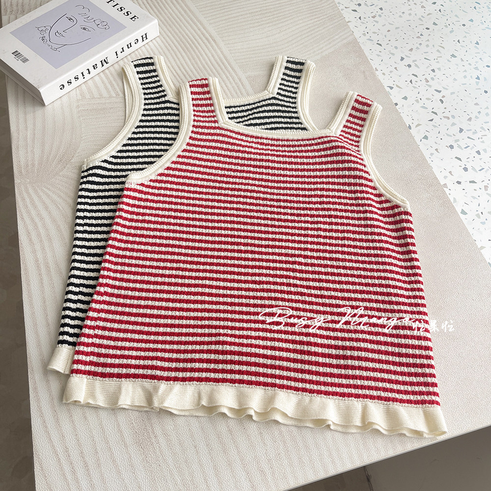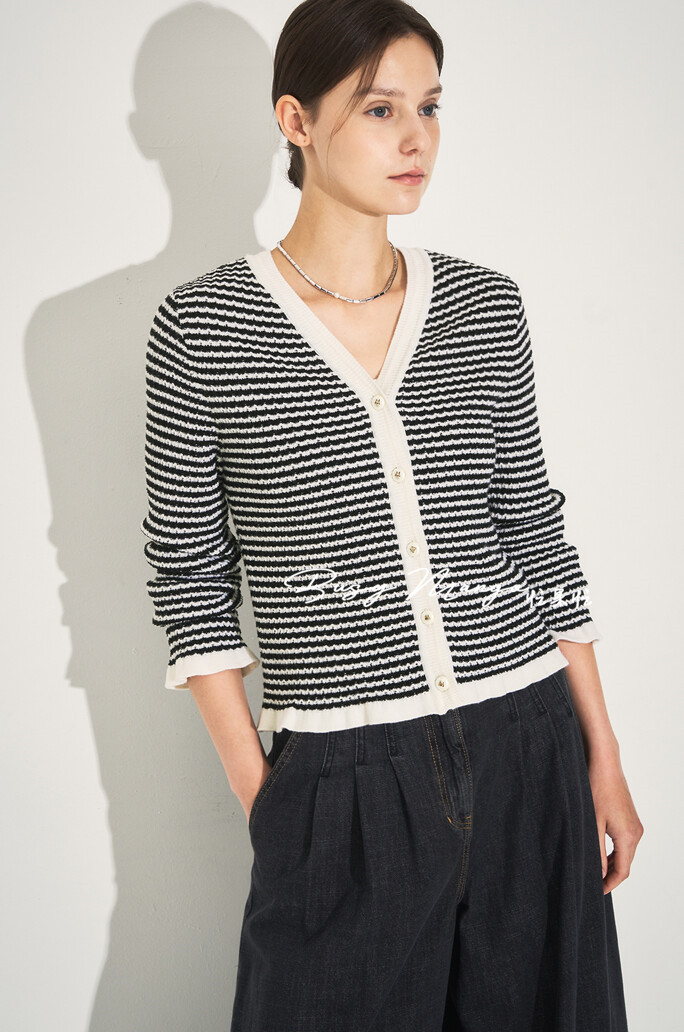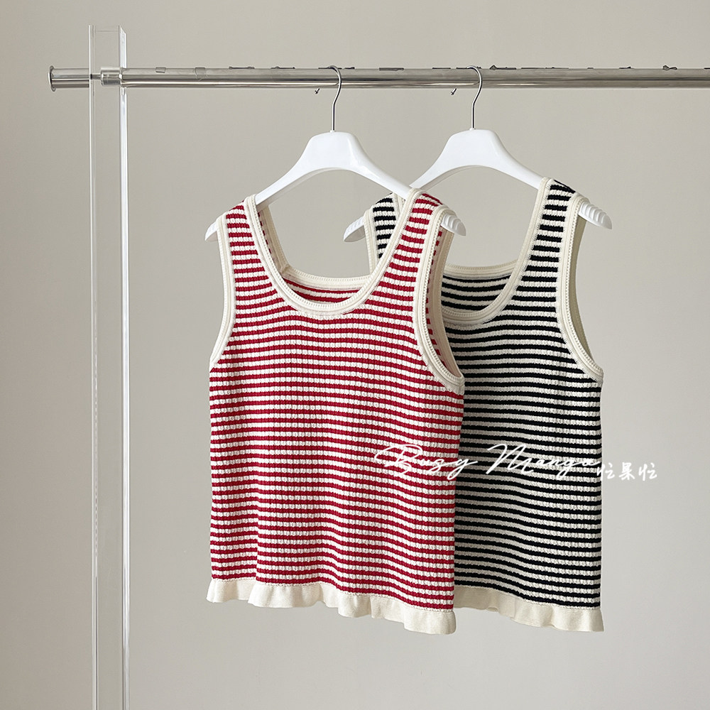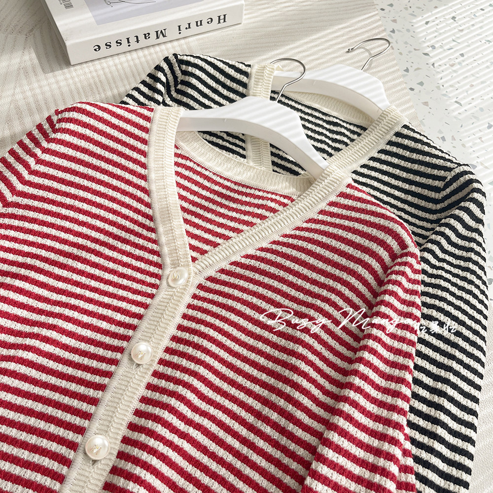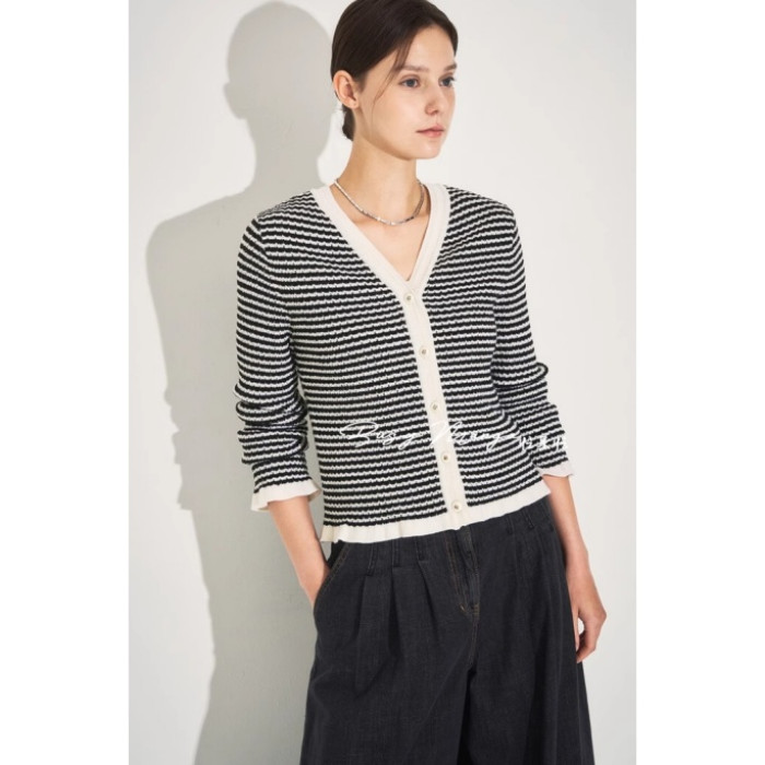 自畱款~主打款,兩件套哦~客供羊毛針織面料,9%羊毛+46%人造絲,松軟的立體針織織面,彈力大,柔軟舒適,貼身也不紥肉,經典的橫條紋配色,仿珍珠紐釦,背心和開衫的搭配,任何造型都可以wan美兼顧,休閒或通勤都可以哦!