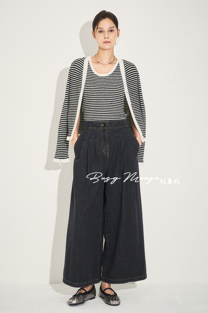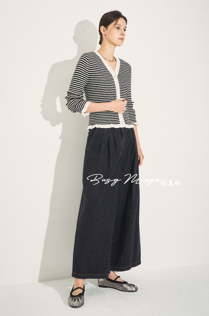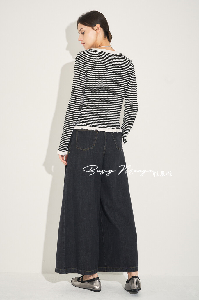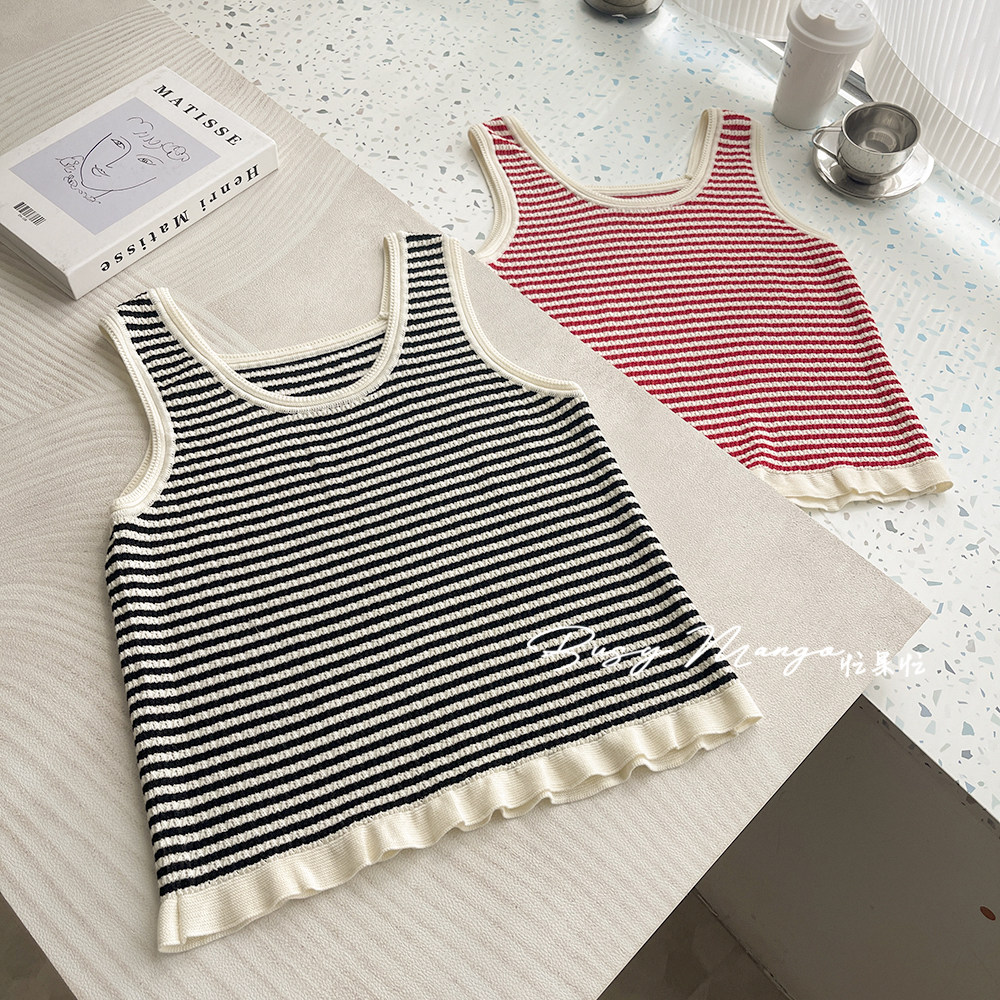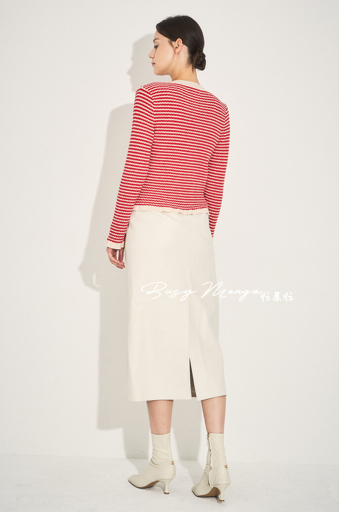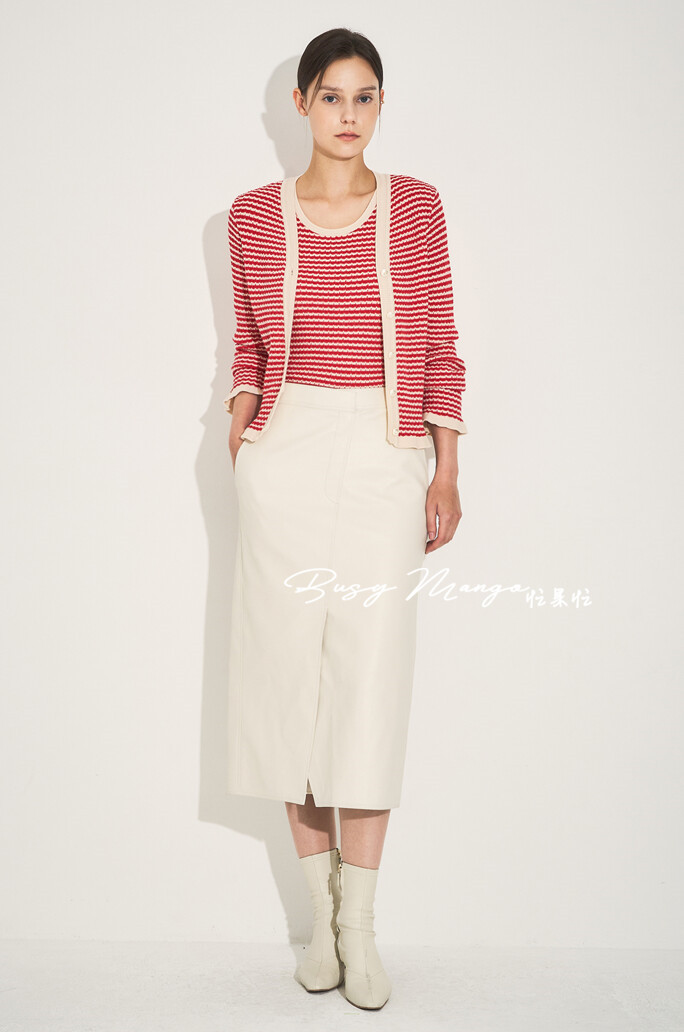 自畱款~主打款,兩件套哦~客供羊毛針織面料,9%羊毛+46%人造絲,松軟的立體針織織面,彈力大,柔軟舒適,貼身也不紥肉,經典的橫條紋配色,仿珍珠紐釦,背心和開衫的搭配,任何造型都可以wan美兼顧,休閒或通勤都可以哦!
