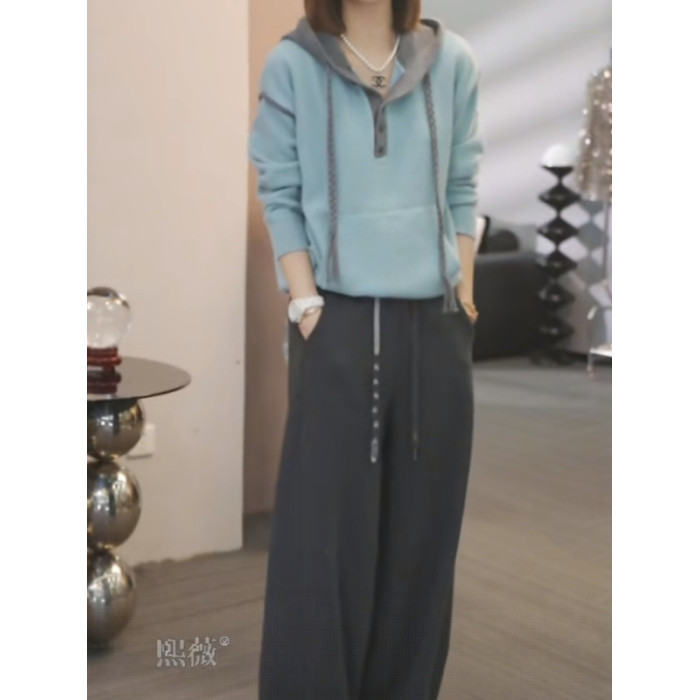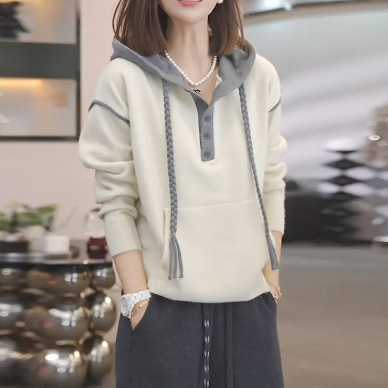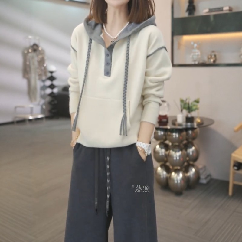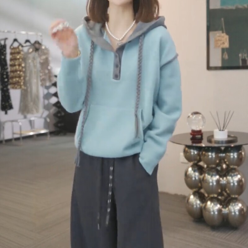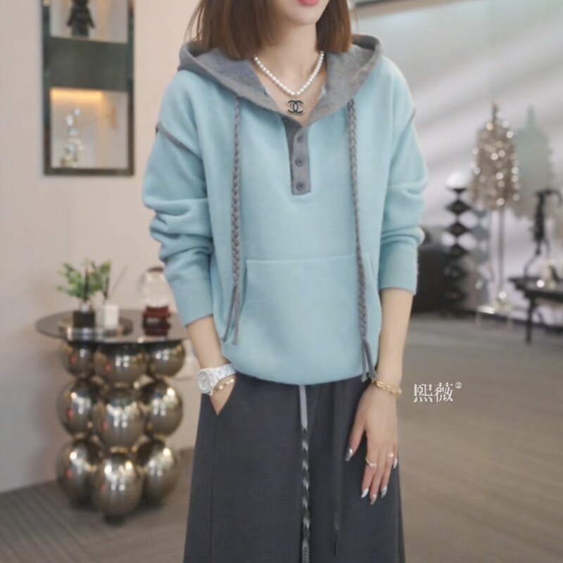 連帽半開領長袖毛衣女秋季2025新款大碼胖mm顯瘦遮肉洋氣休閒上衣