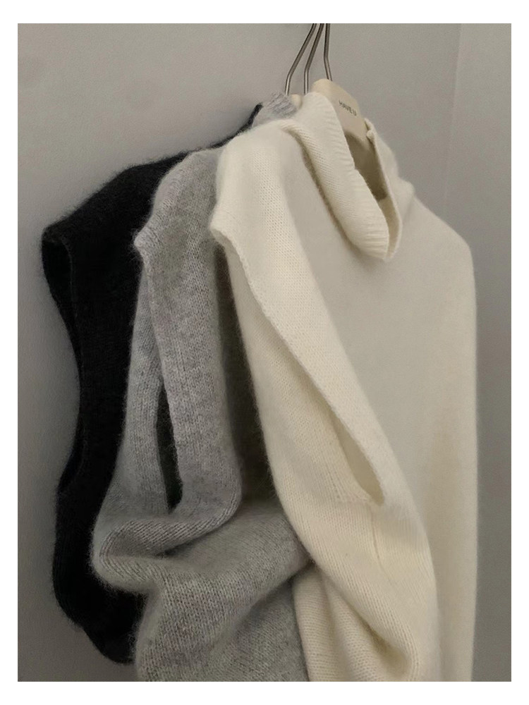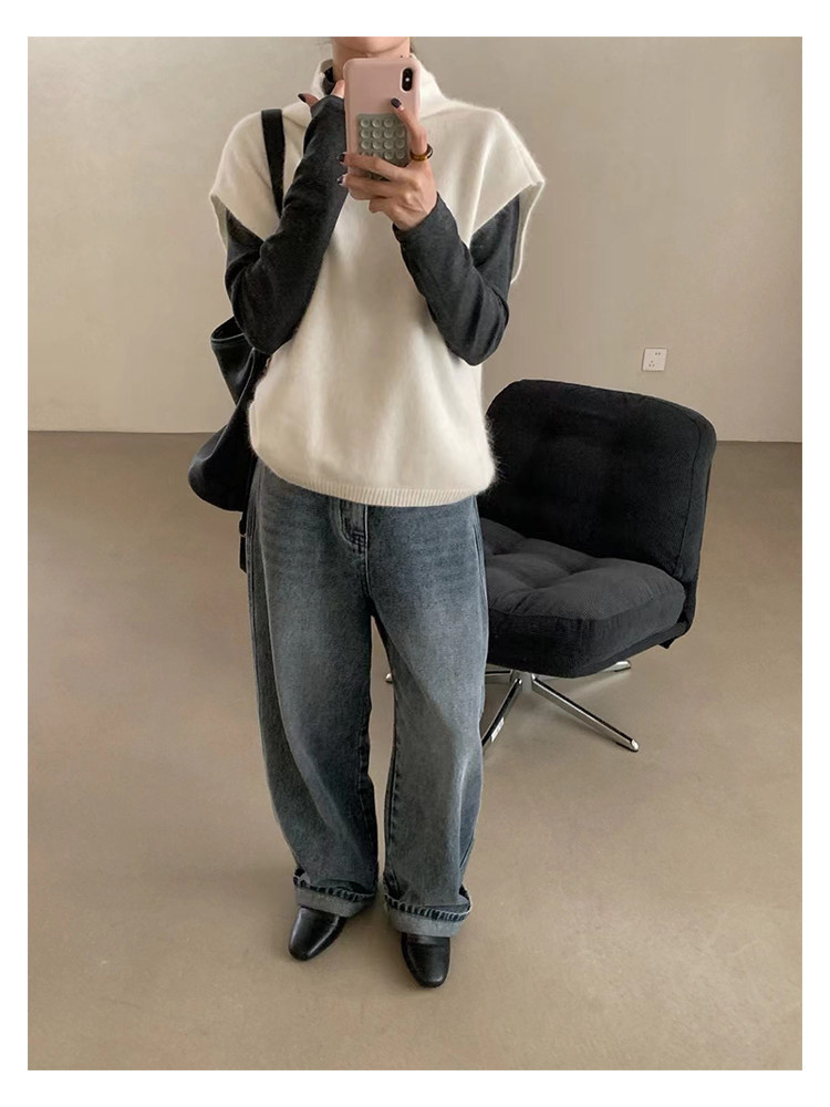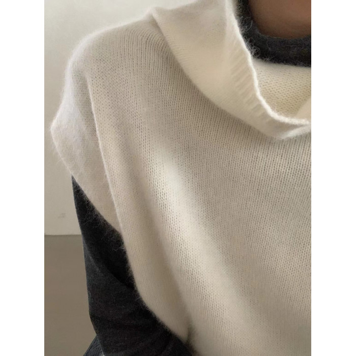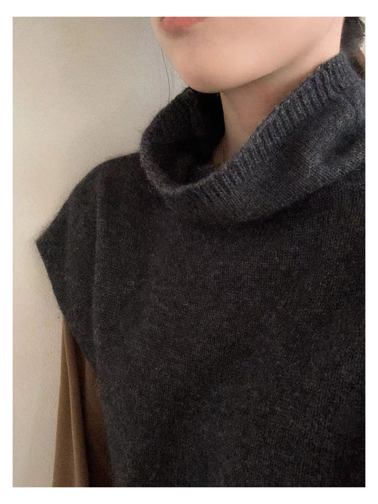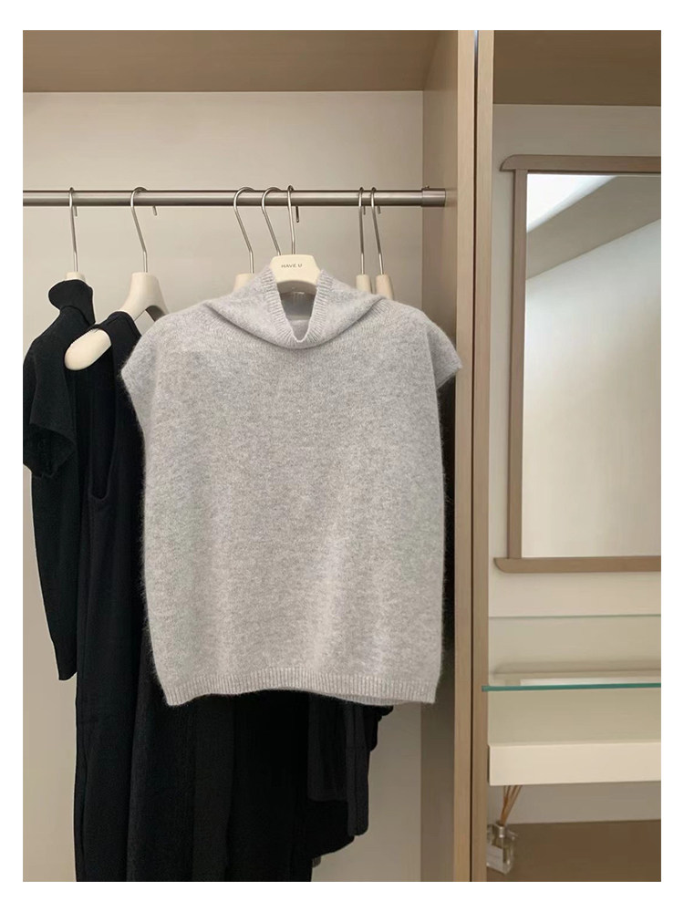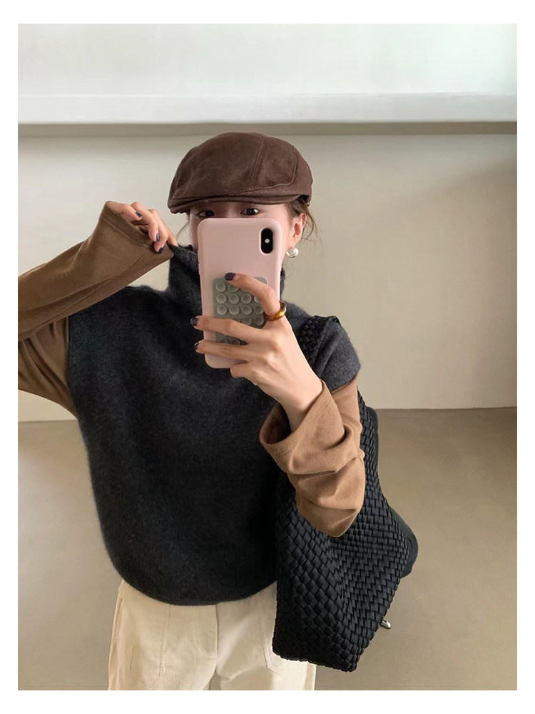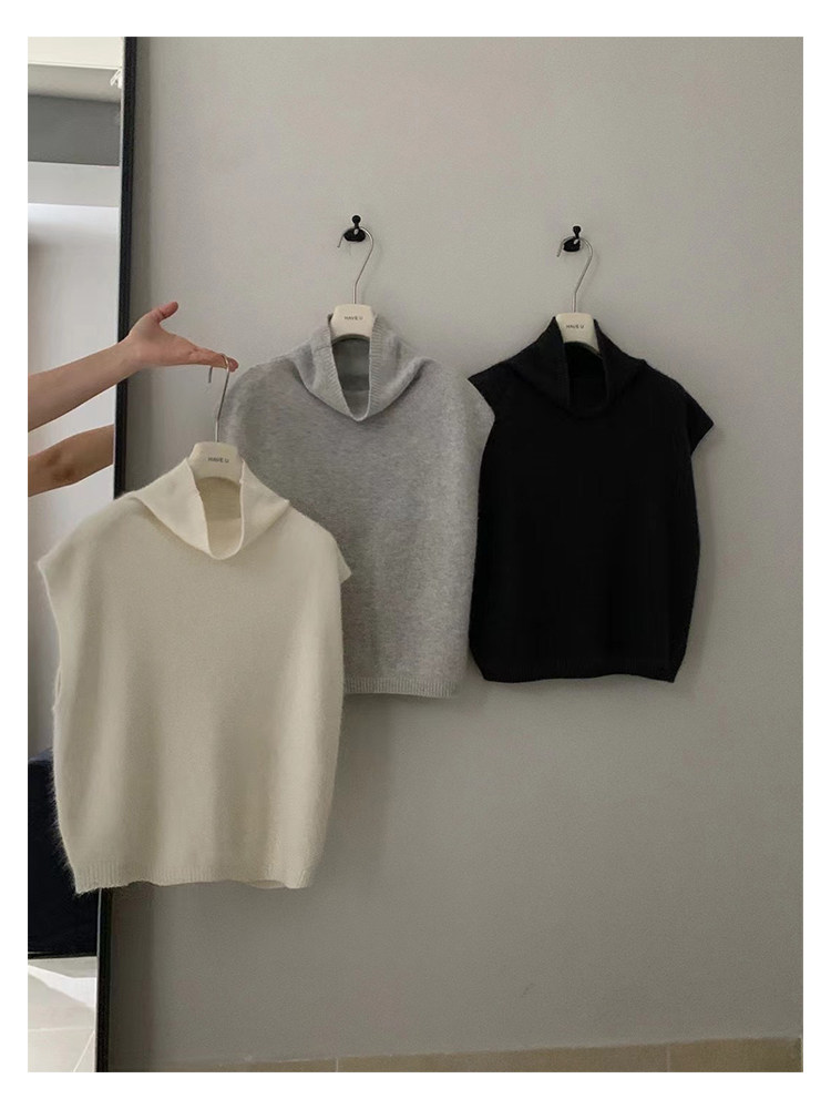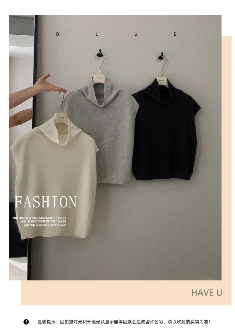 have u浣熊絨高領針織馬甲女秋季寬鬆毛衣背心曡穿高級感無袖上衣
