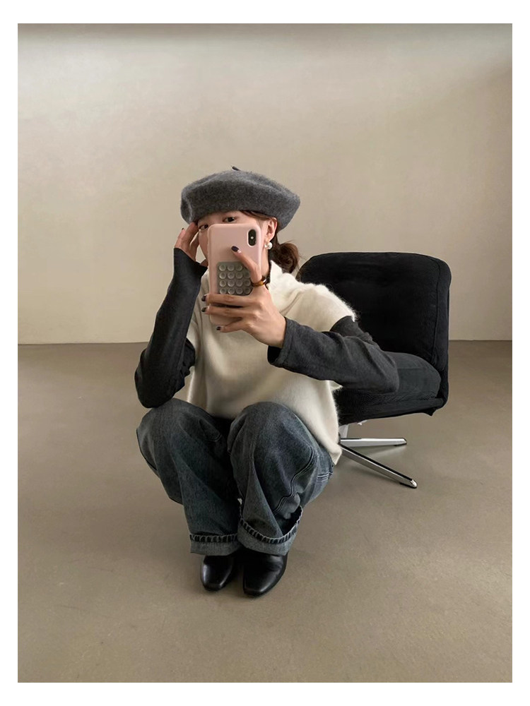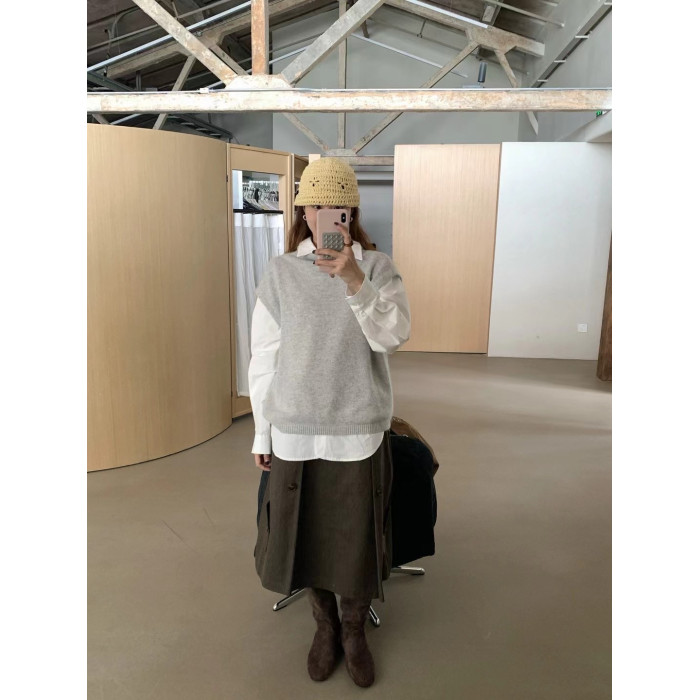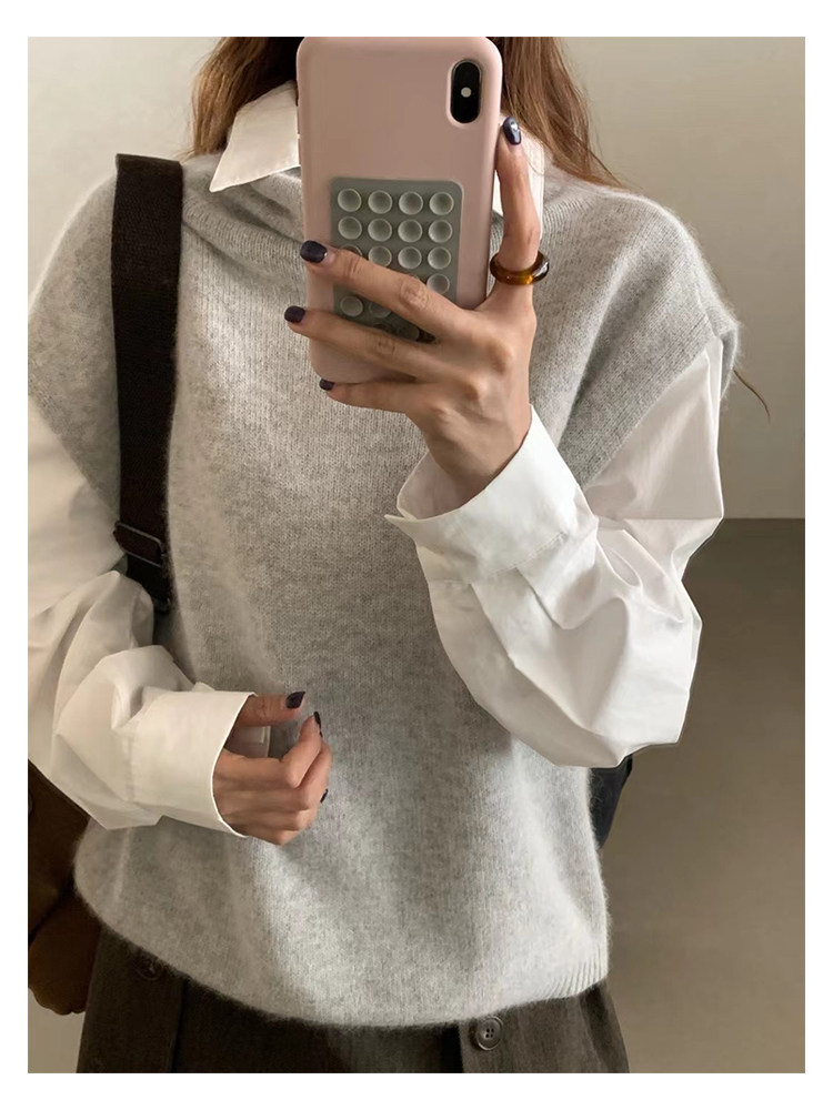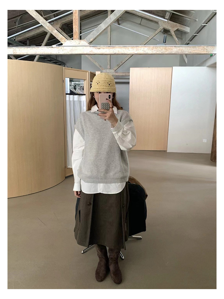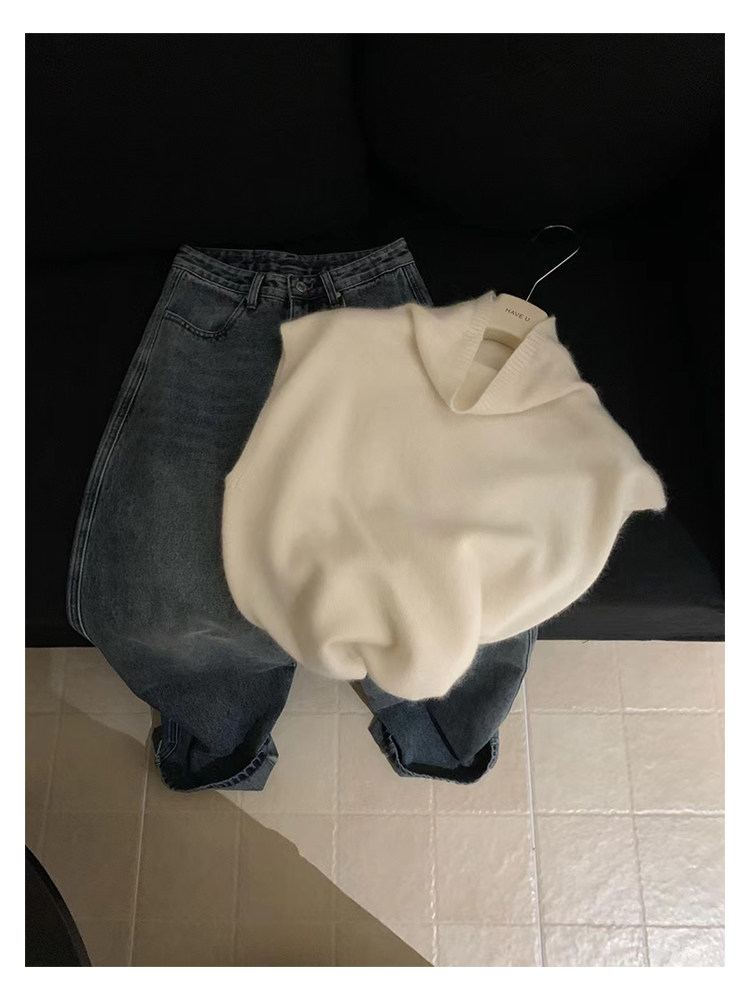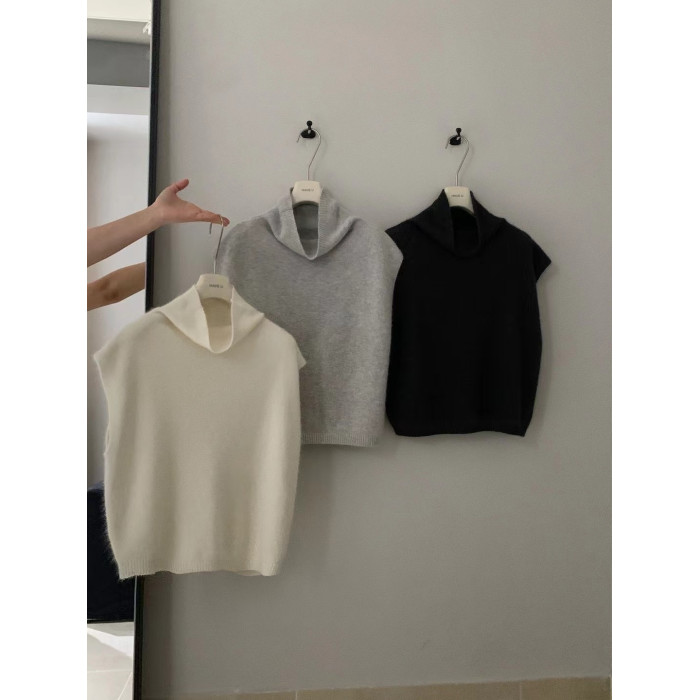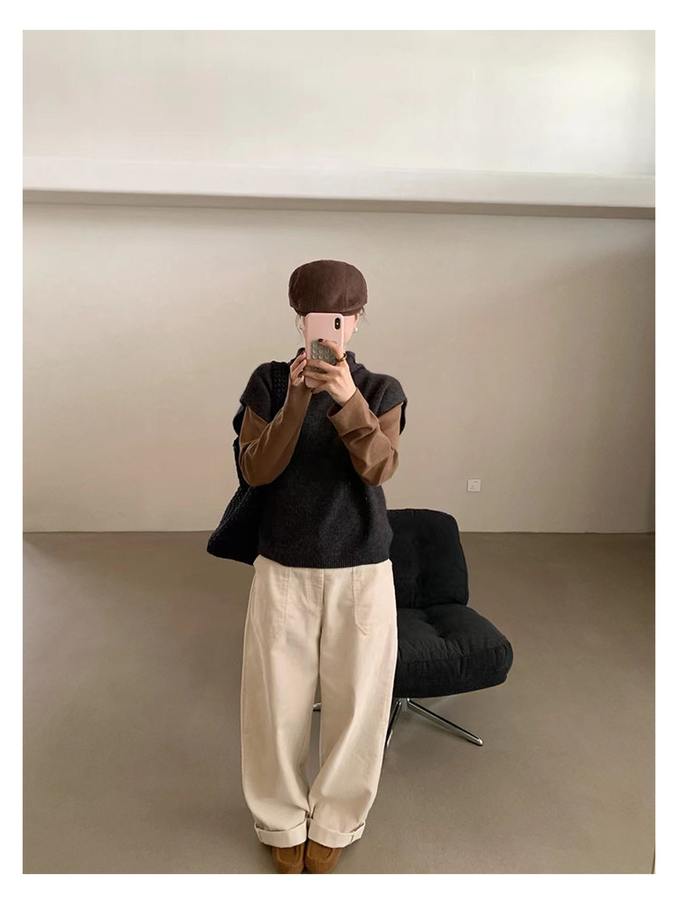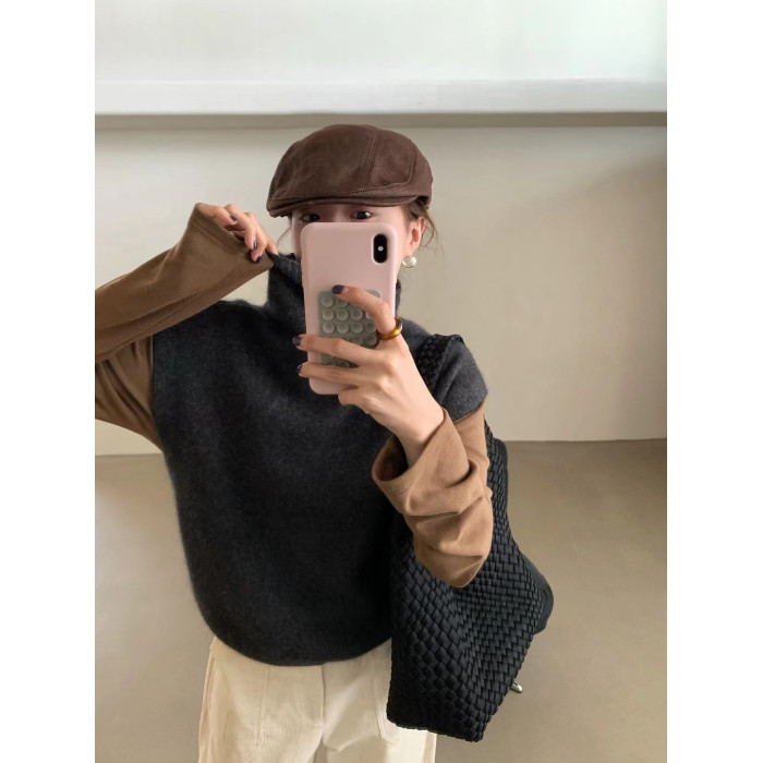 have u浣熊絨高領針織馬甲女秋季寬鬆毛衣背心曡穿高級感無袖上衣