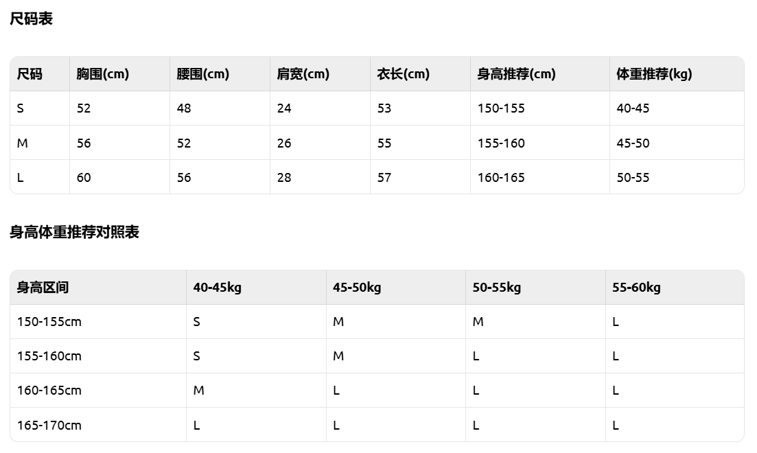 款式及尺寸: