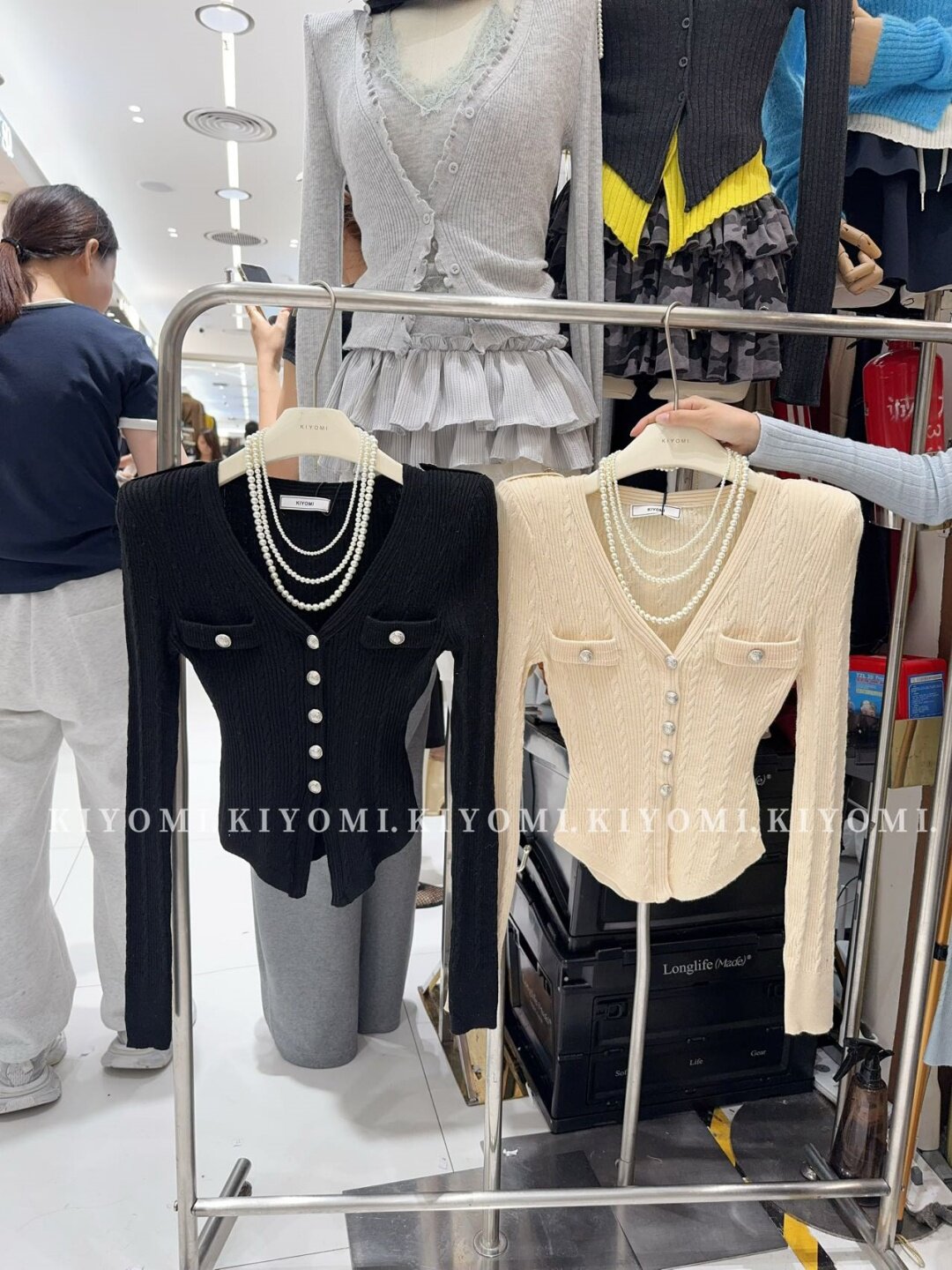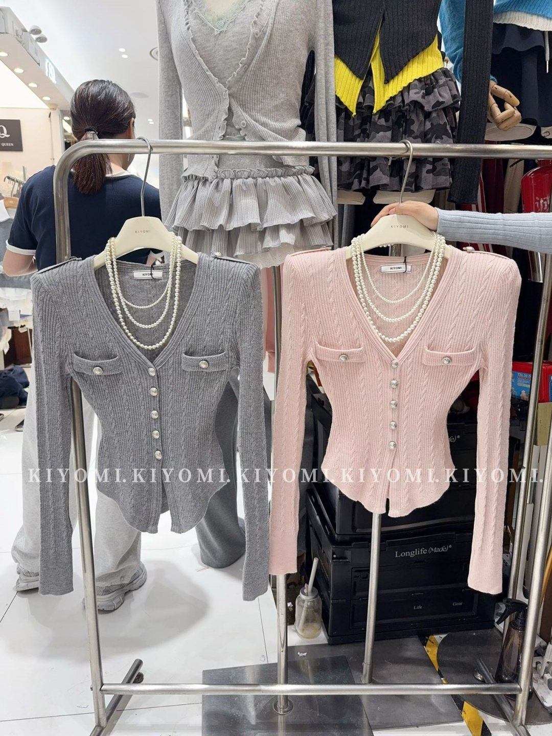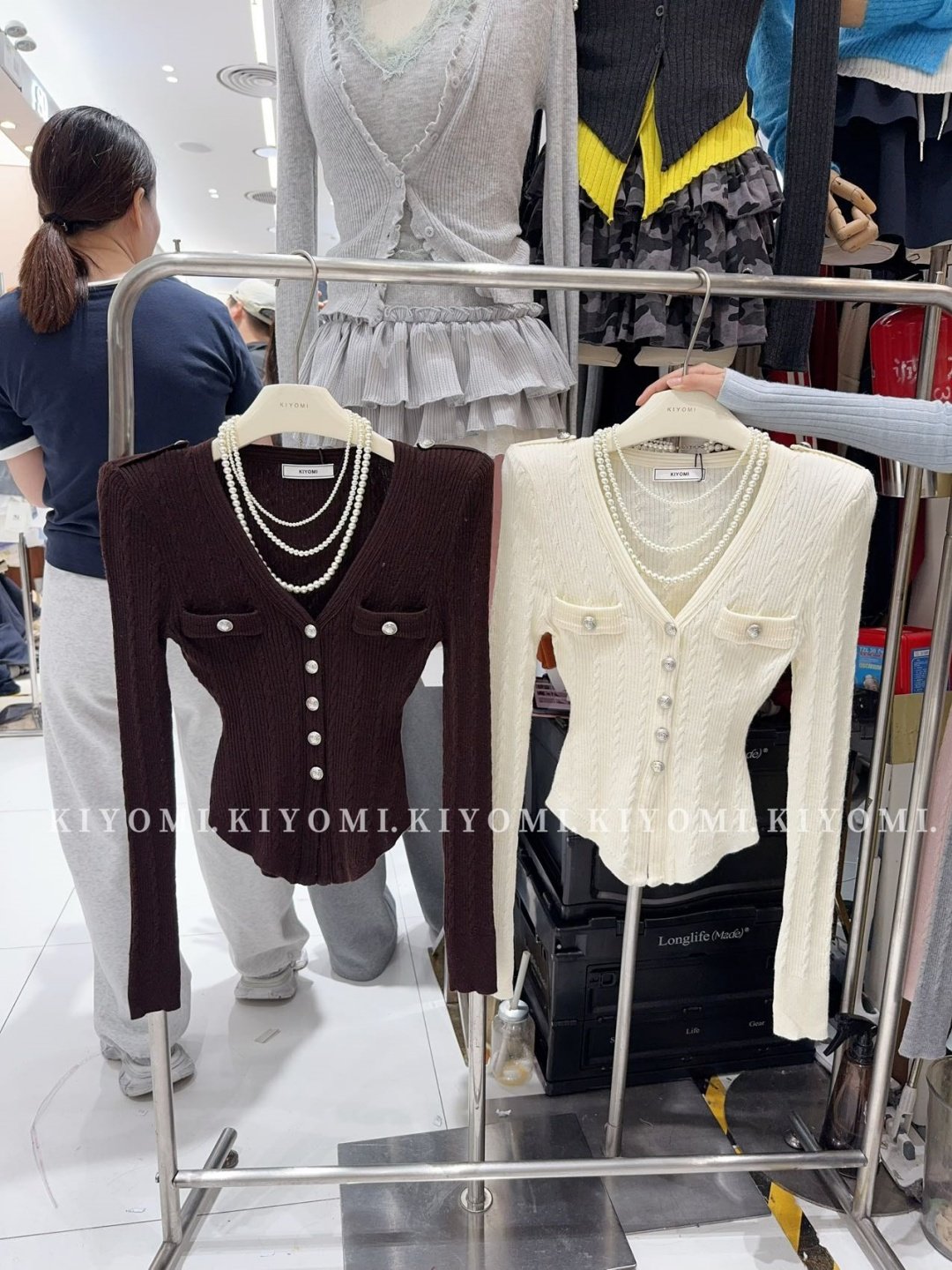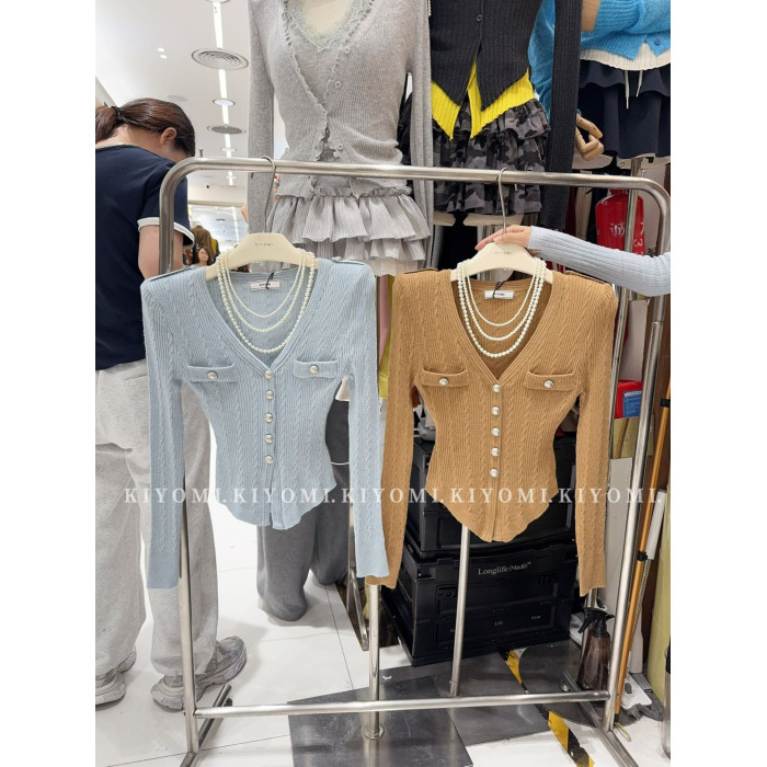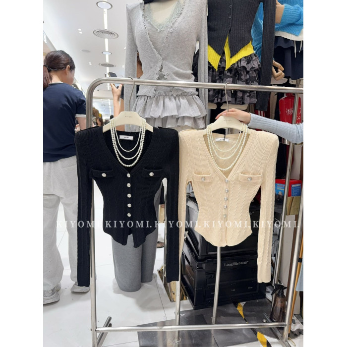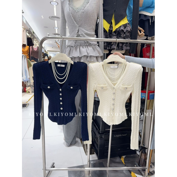 KIYOMI2025秋季新款韓版氣質V領長袖針織衫修身單排釦短款上衣女