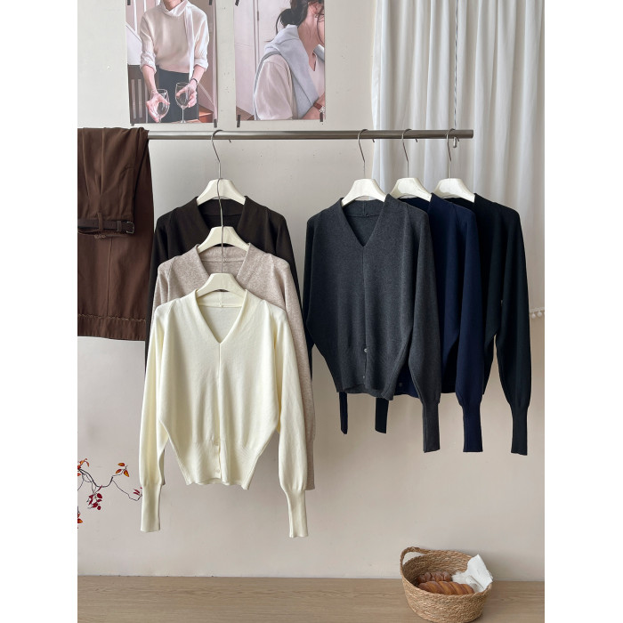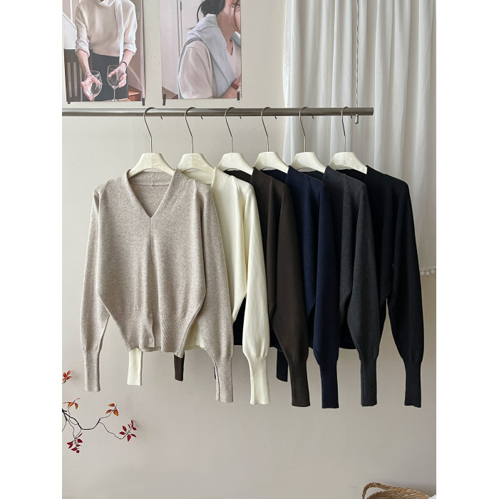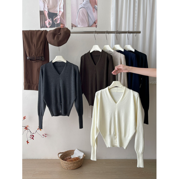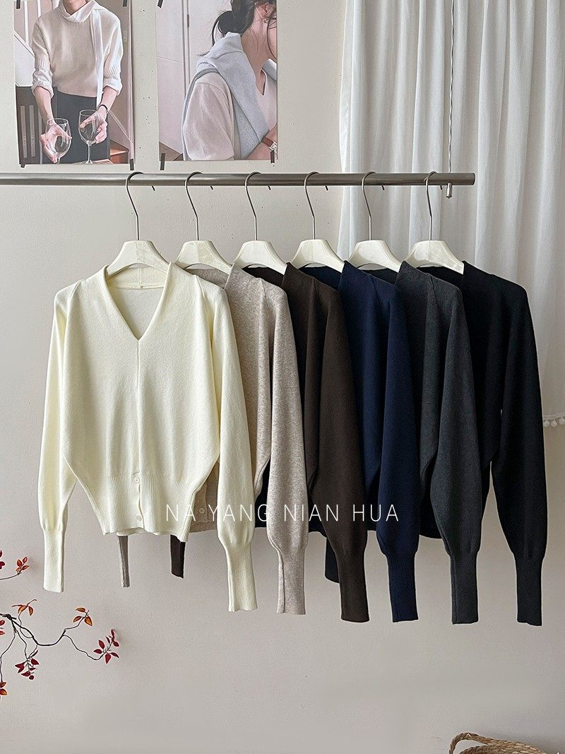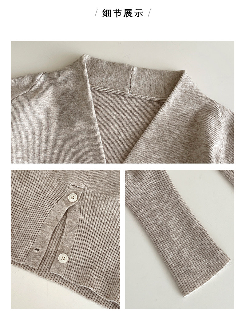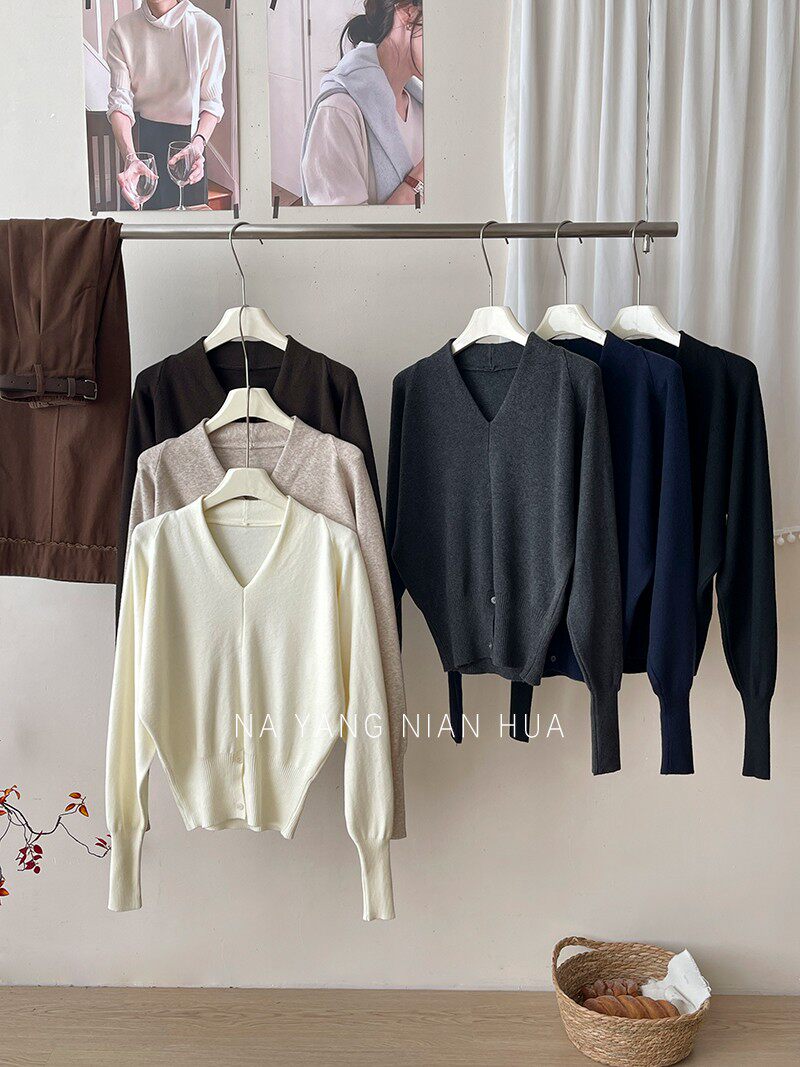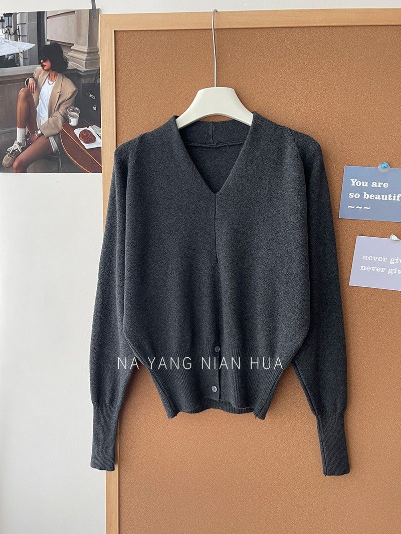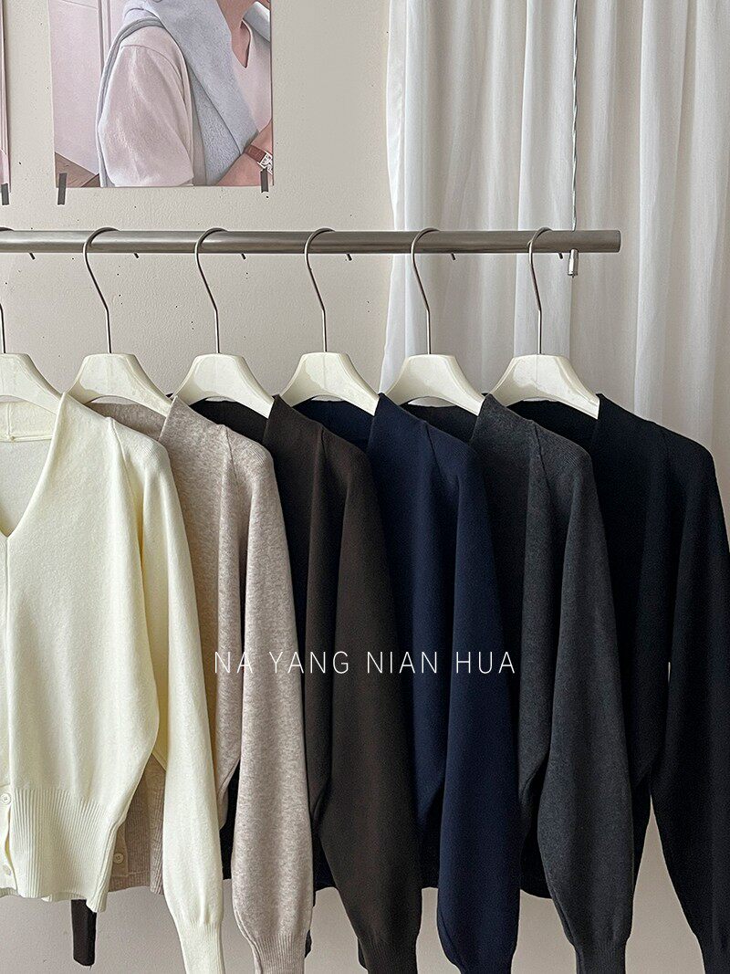 法式老錢風收腰開叉軟糯V領針織衫女秋冬復古百搭洋氣質打底上衣