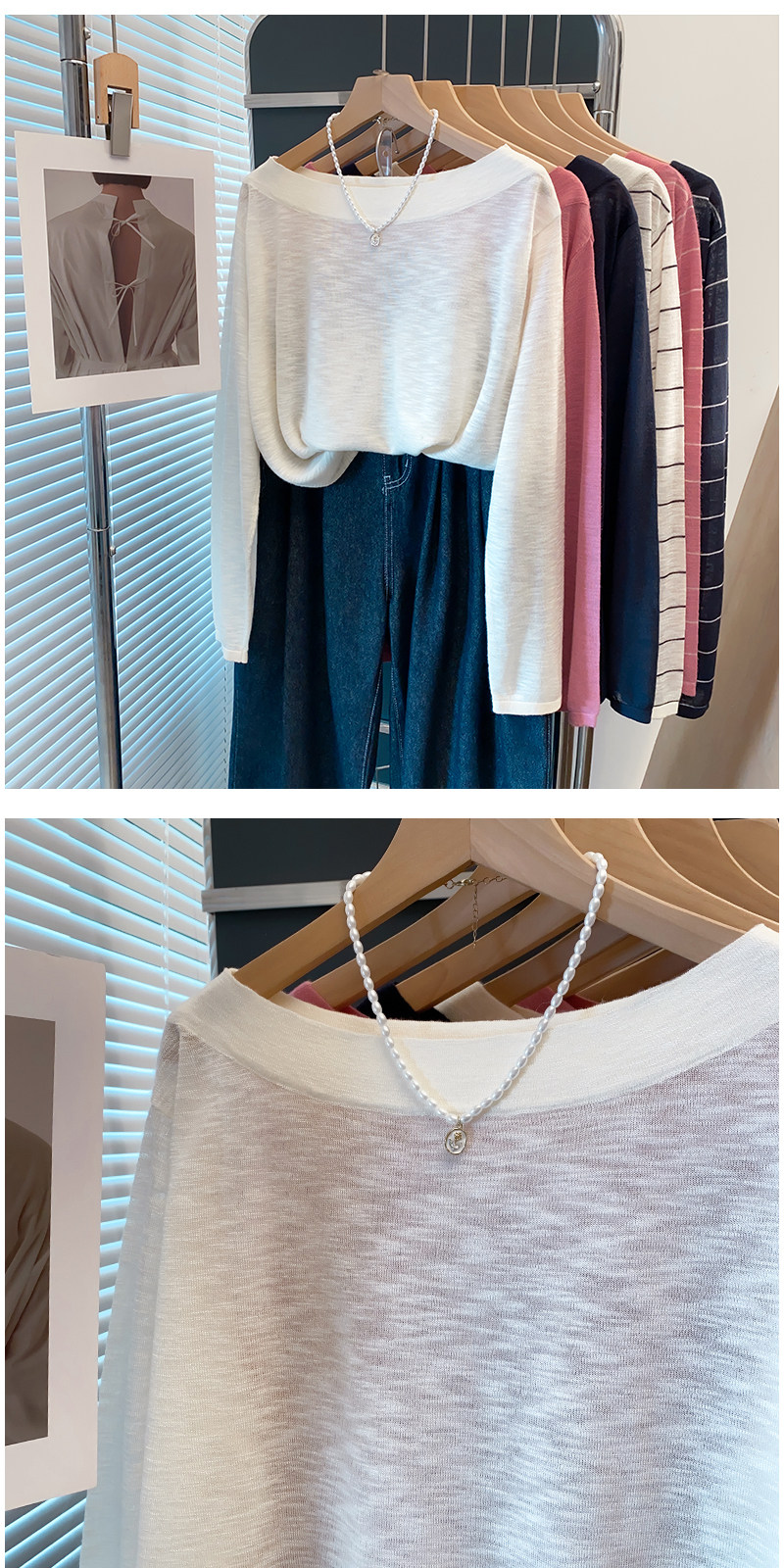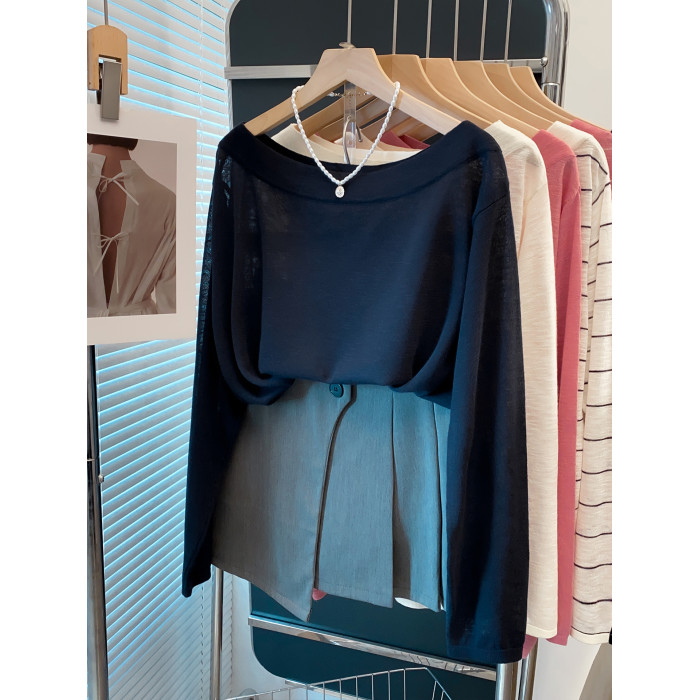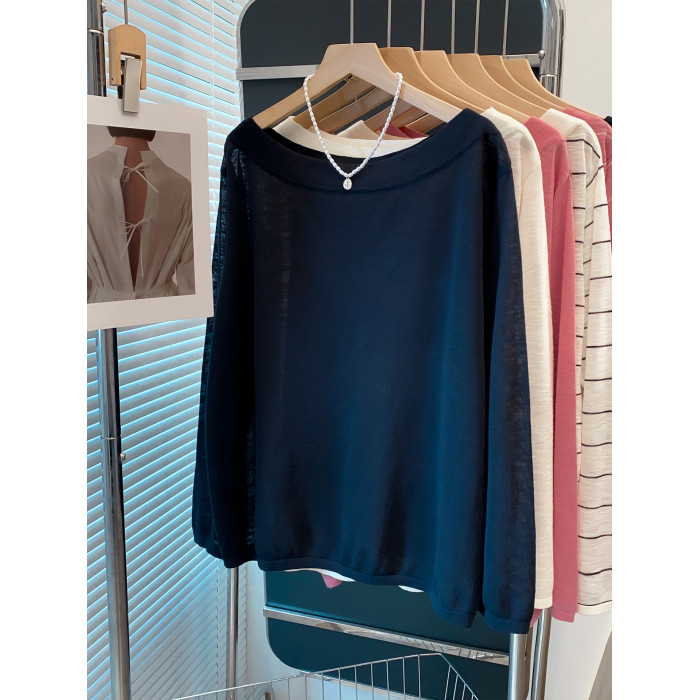 一字領針織衫女2025秋裝新款內搭打底衫寬松慵懶風外穿薄洋氣上衣