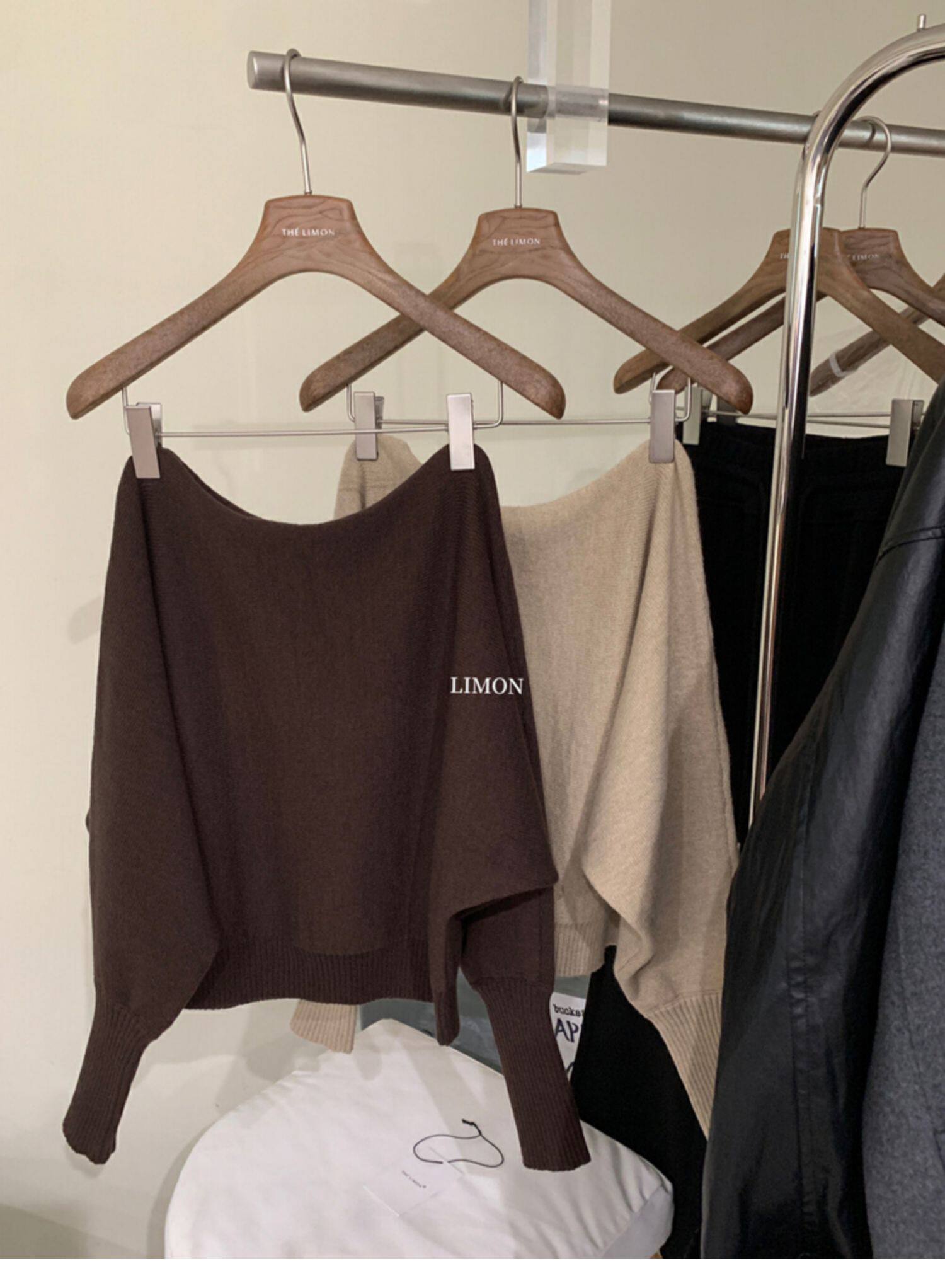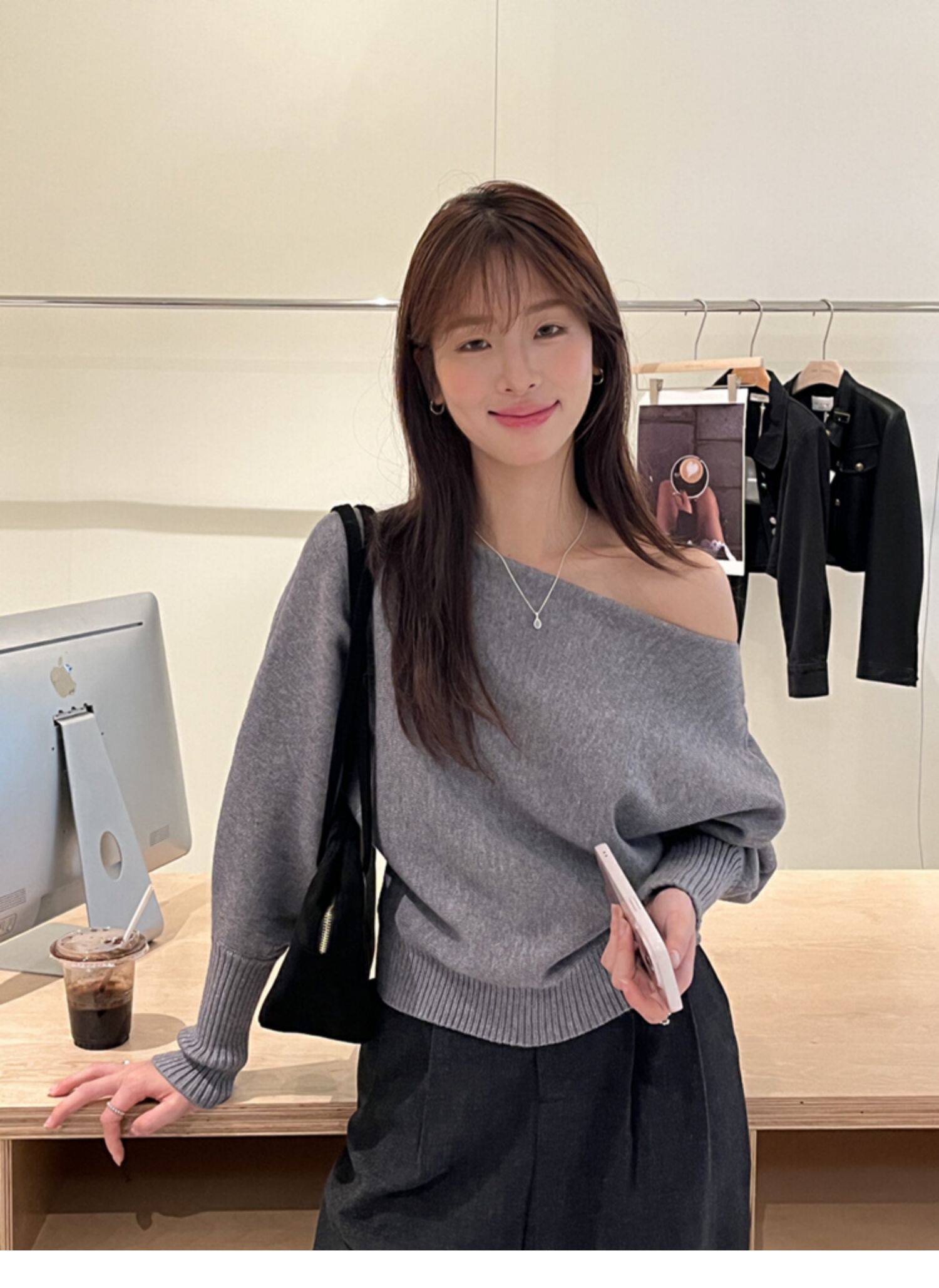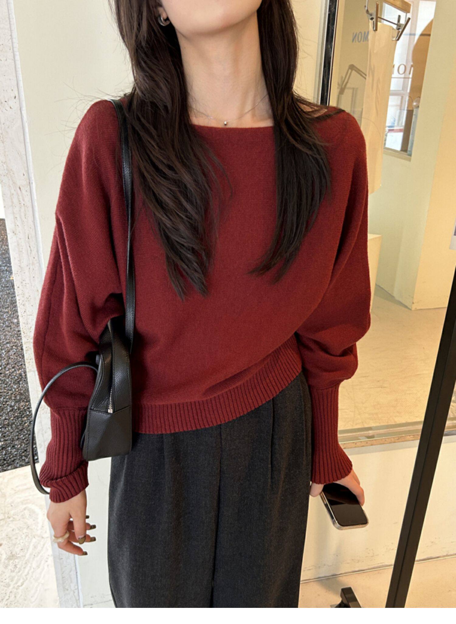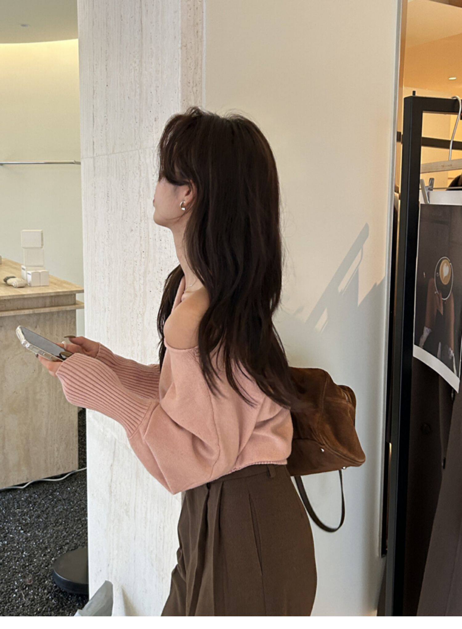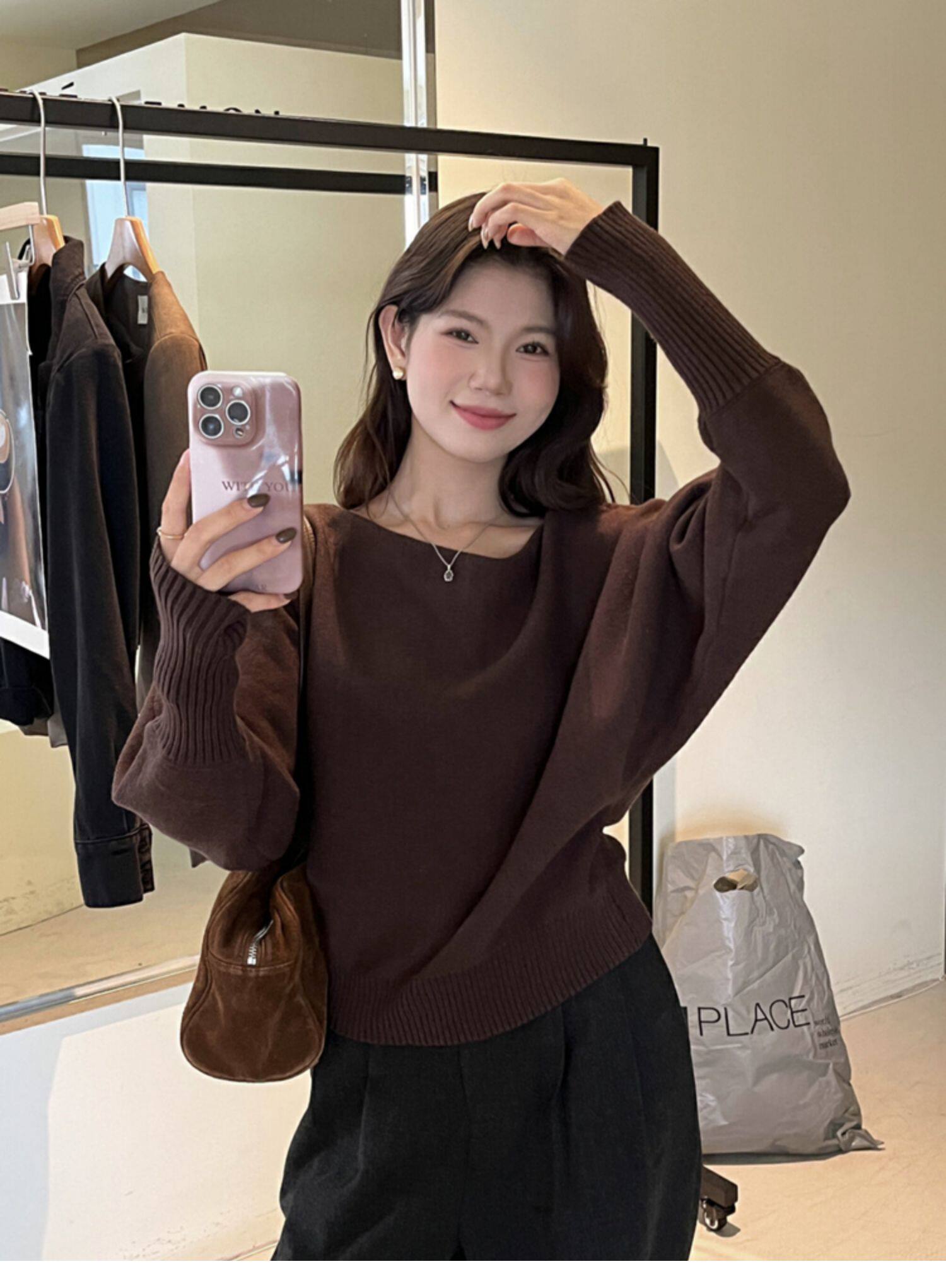 法式輕熟風一字領斜肩針織毛衣春秋冬季松弛感純欲上衣女打底衫潮