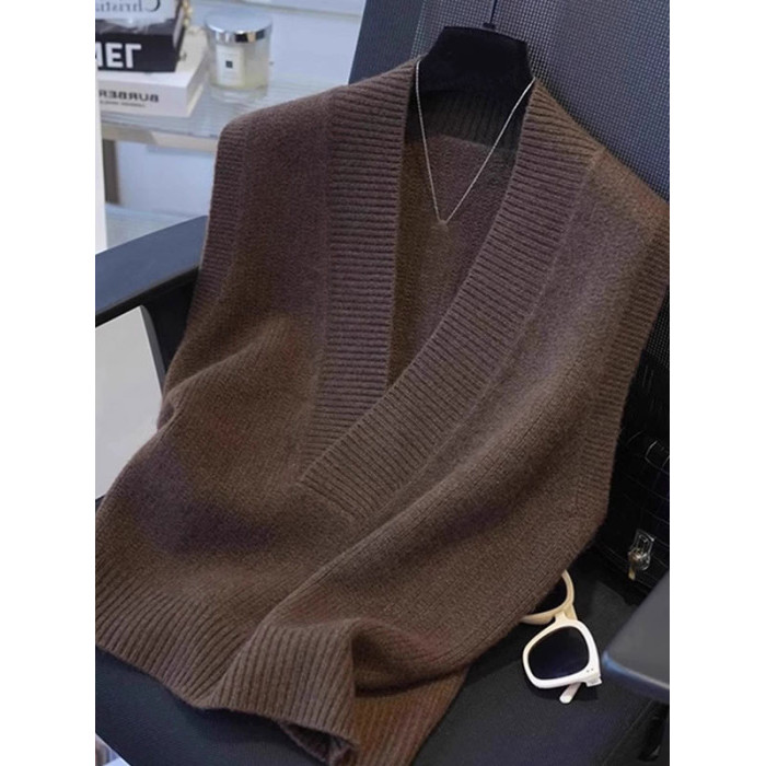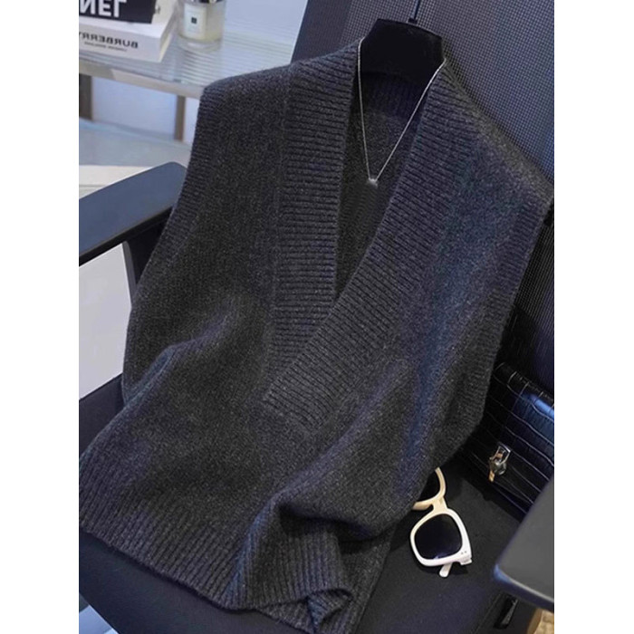 極簡風V領針織背心女寬松顯瘦曡穿高級感氣質毛衣馬甲時尚上衣