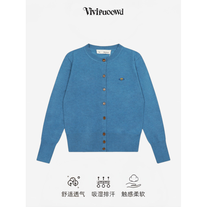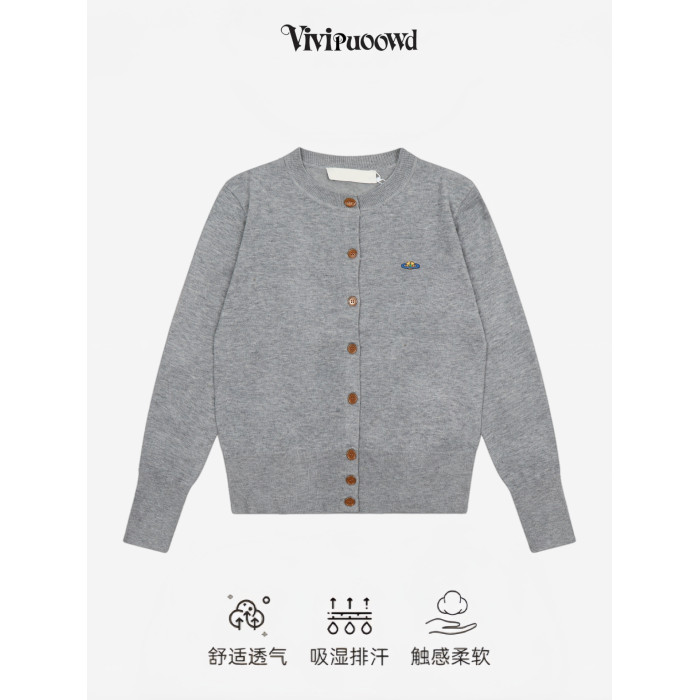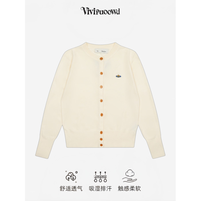 VIVIPUOOWD小標經典土星刺綉韓版百搭針織開衫女羊毛混紡毛衣