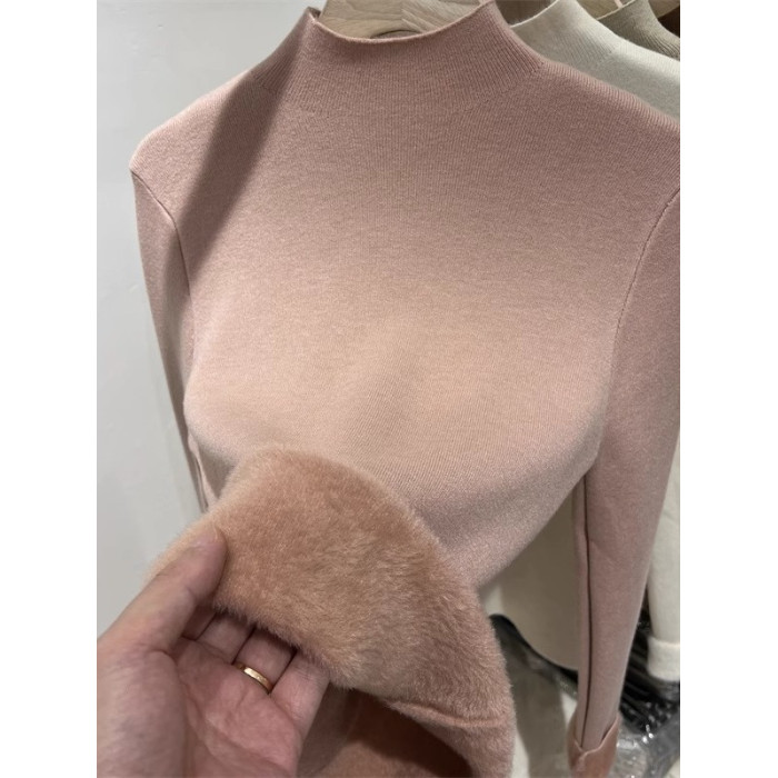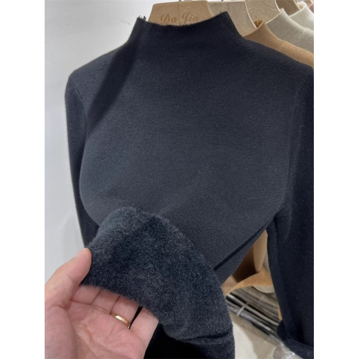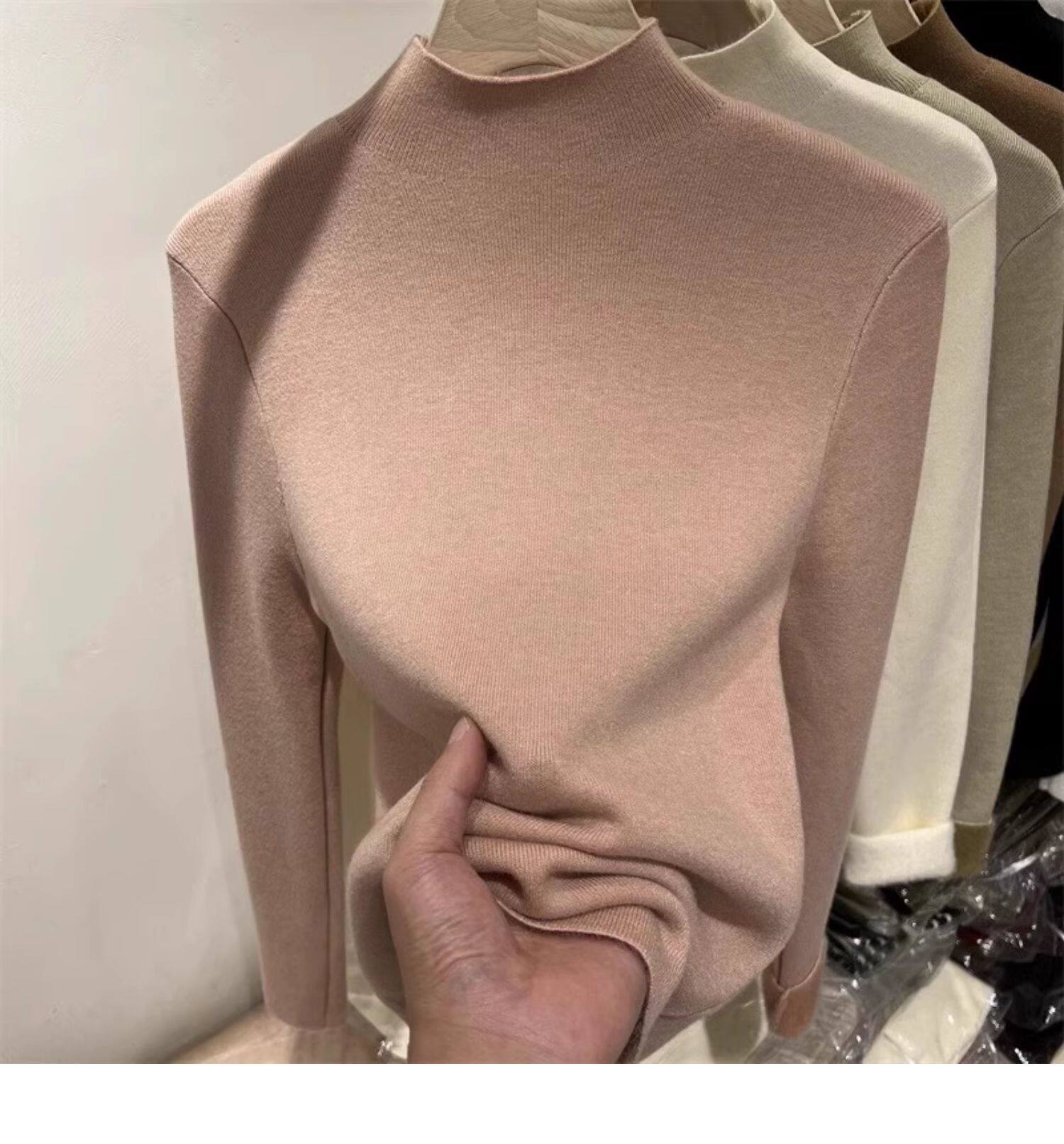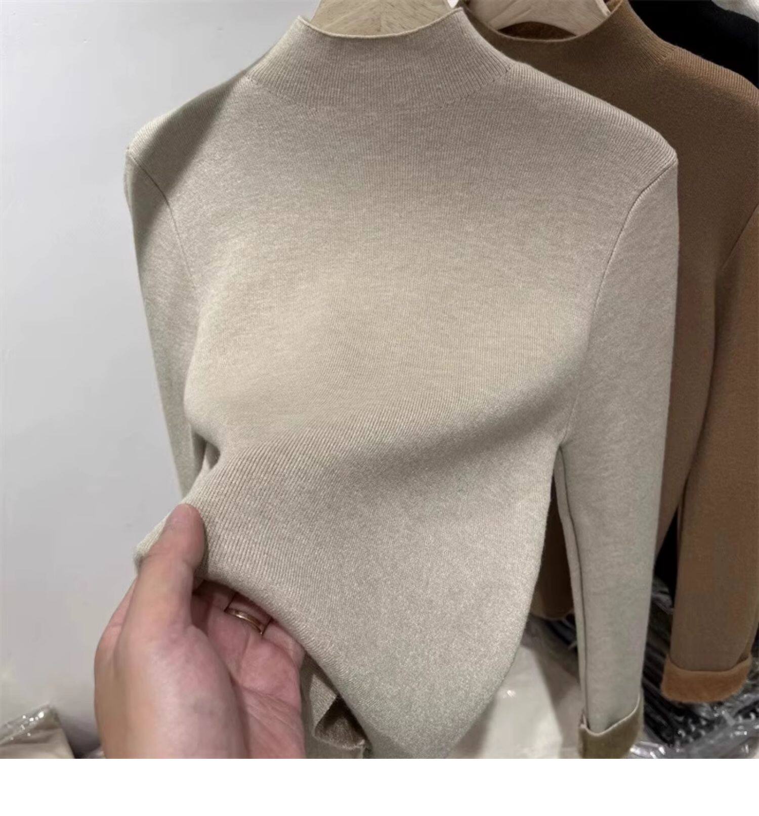 加絨加厚一體絨半高領針織衫女秋冬季保暖洋氣上衣毛衣內搭打底衫