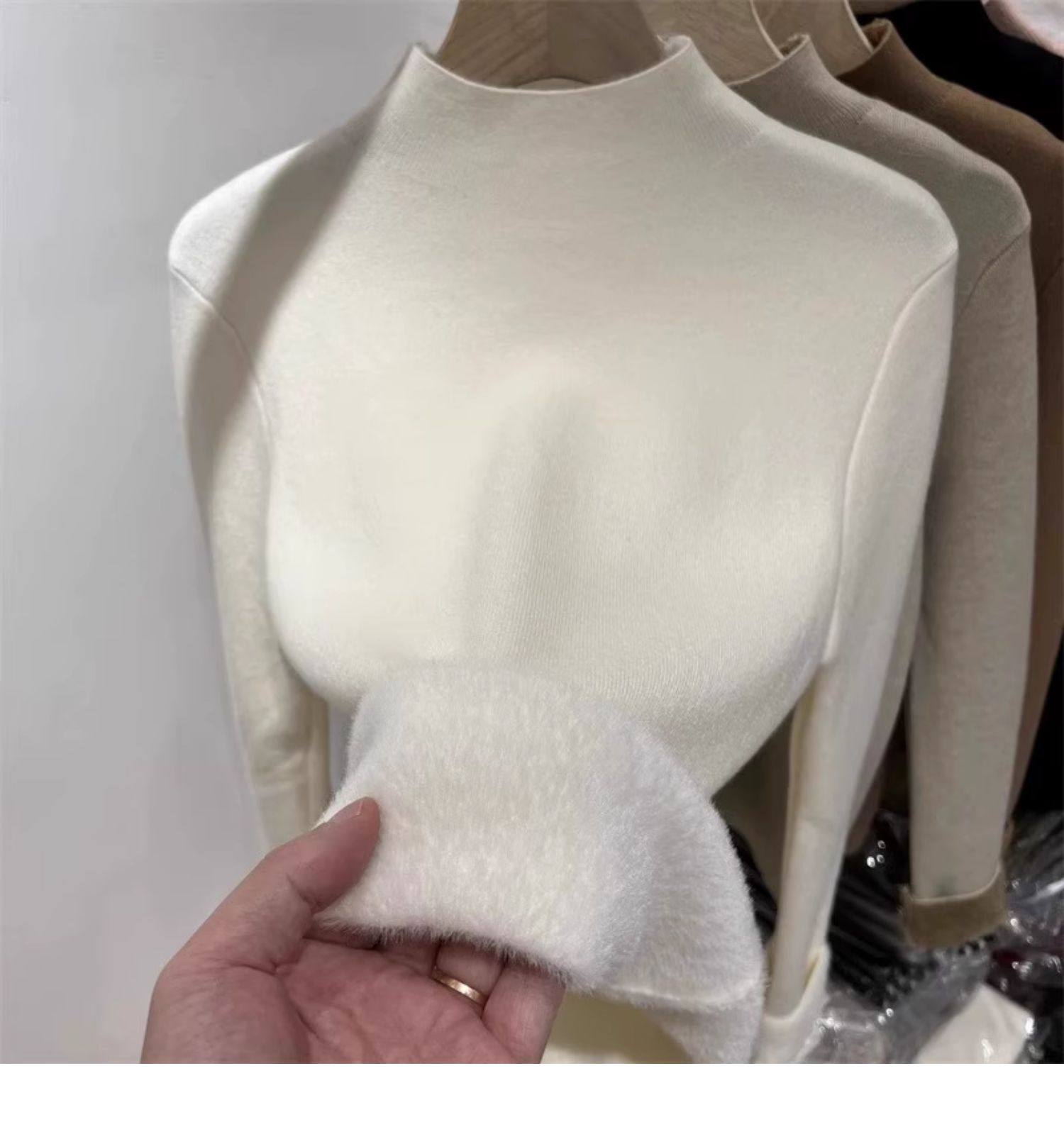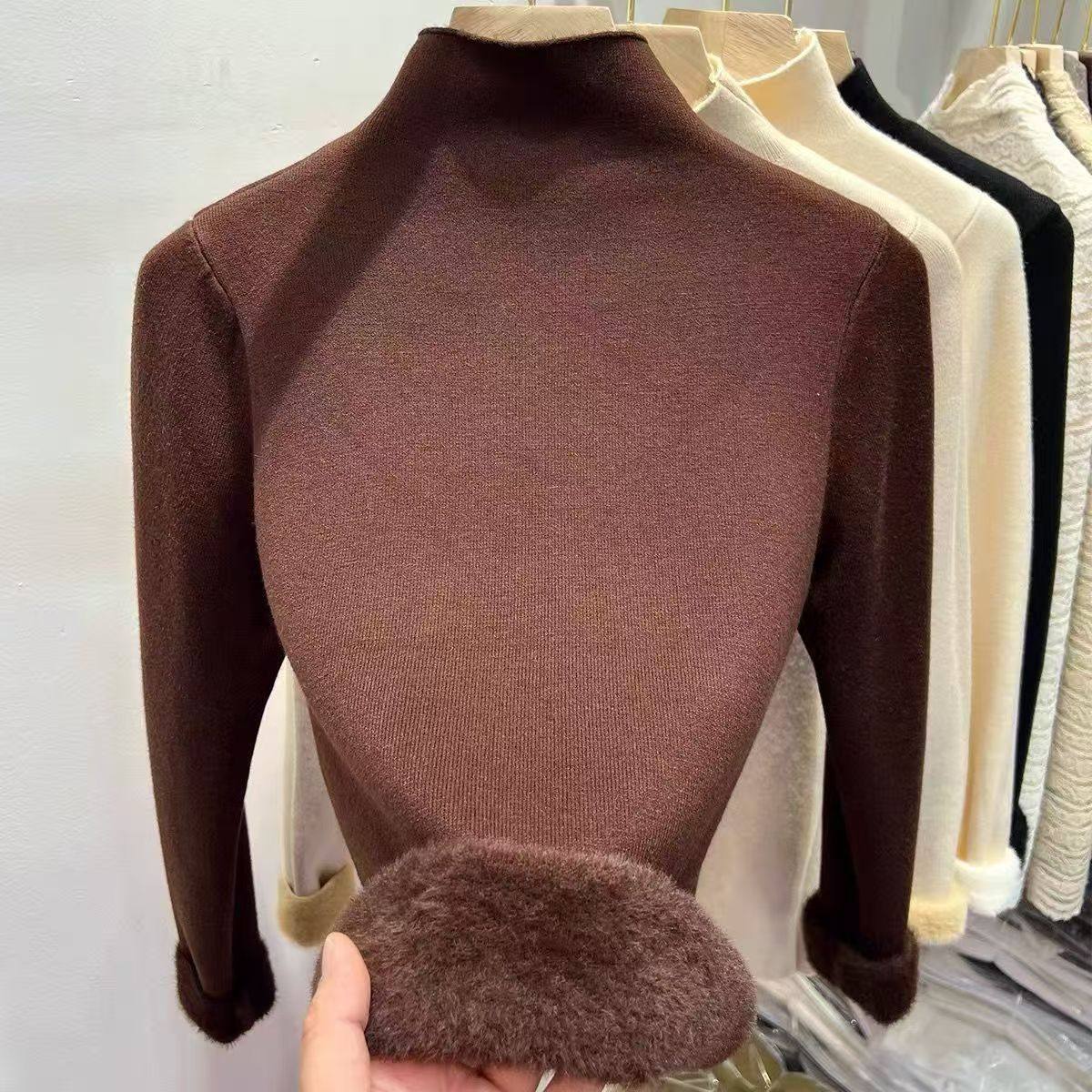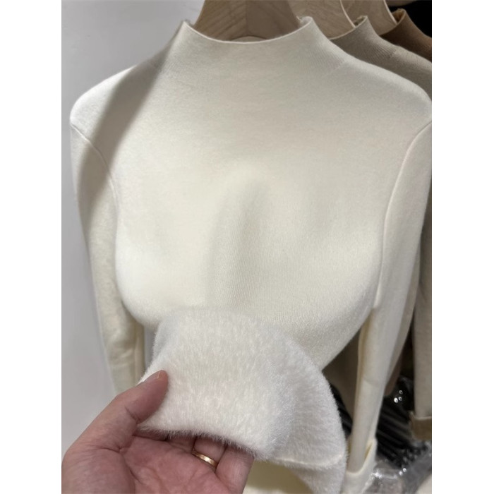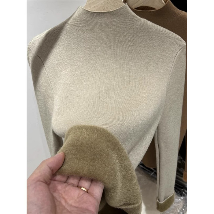 加絨加厚一體絨半高領針織衫女秋冬季保暖洋氣上衣毛衣內搭打底衫