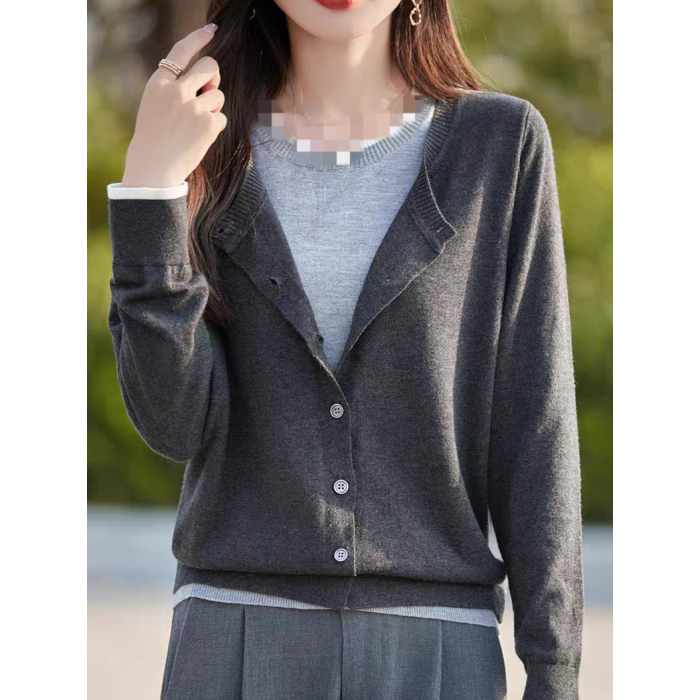 超顯瘦遮肉!XL-4XL洋氣真雙層假兩件針織開衫外套長63胸110-125