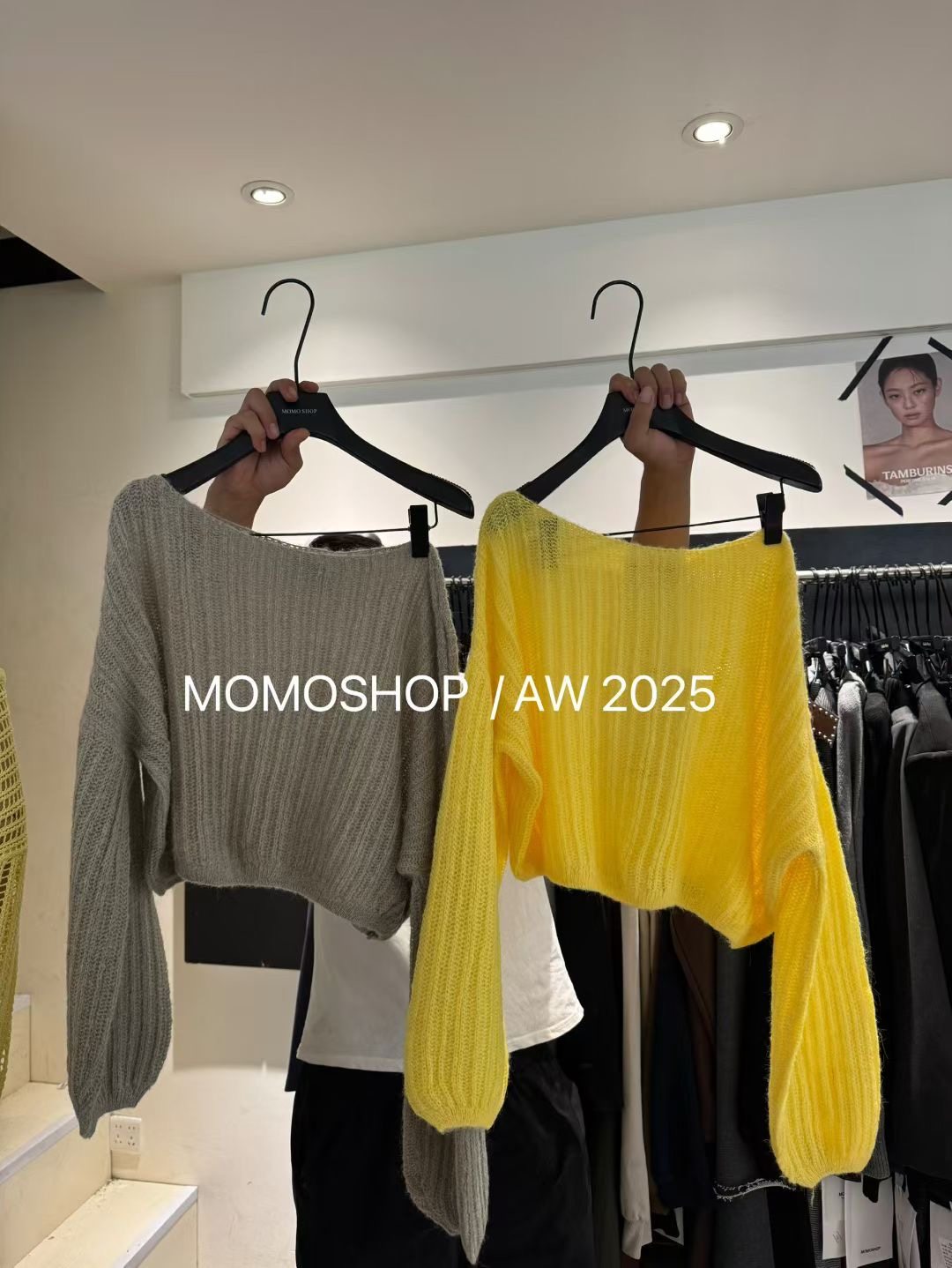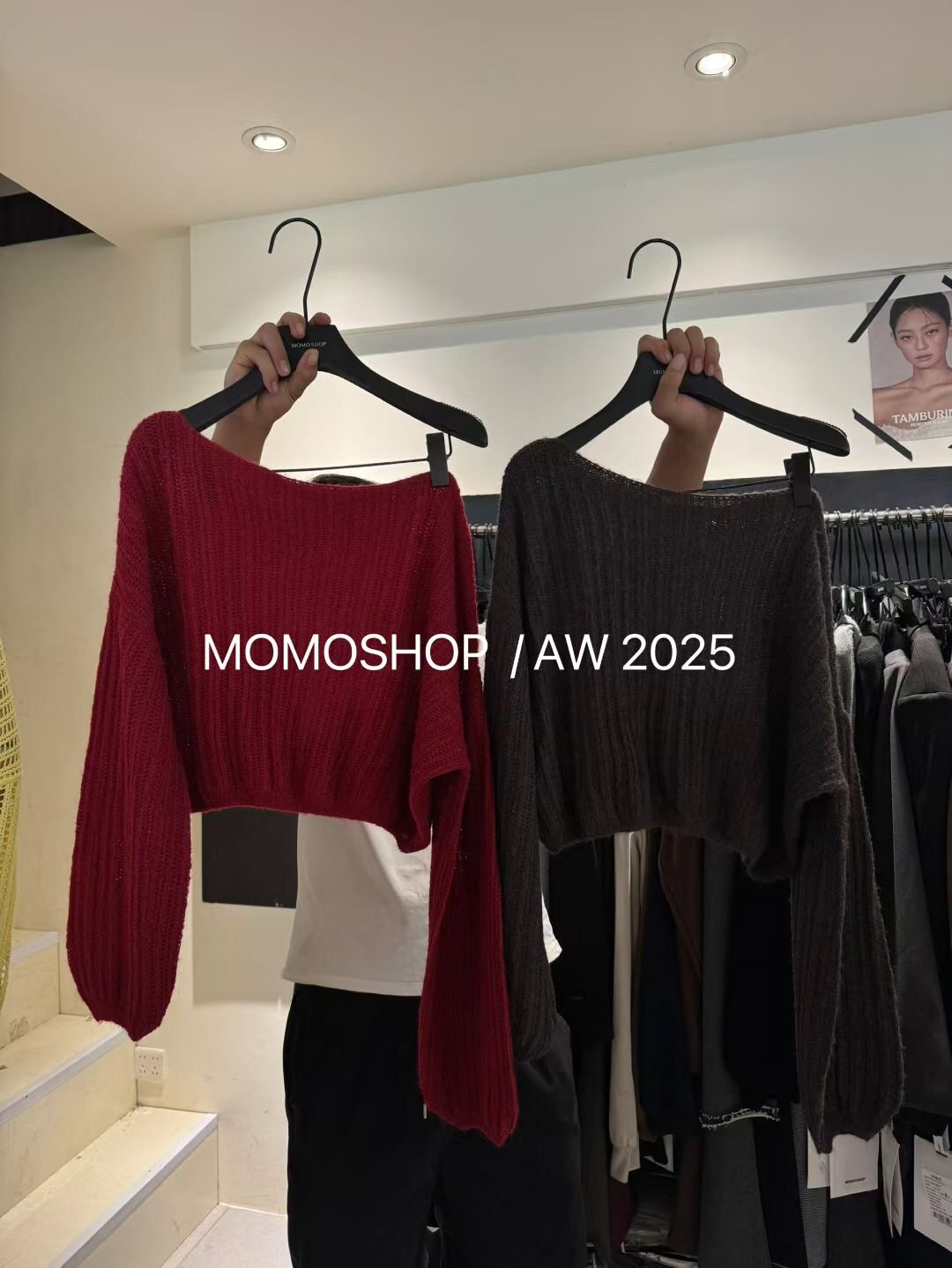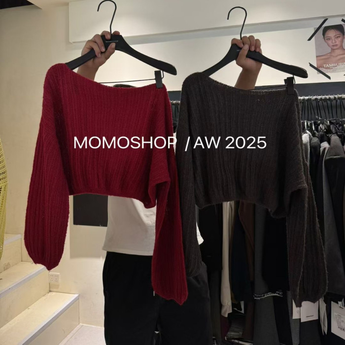 2025秋款韓版設計小衆簡約慵懶風斜肩針織衫毛衣百搭長袖上衣