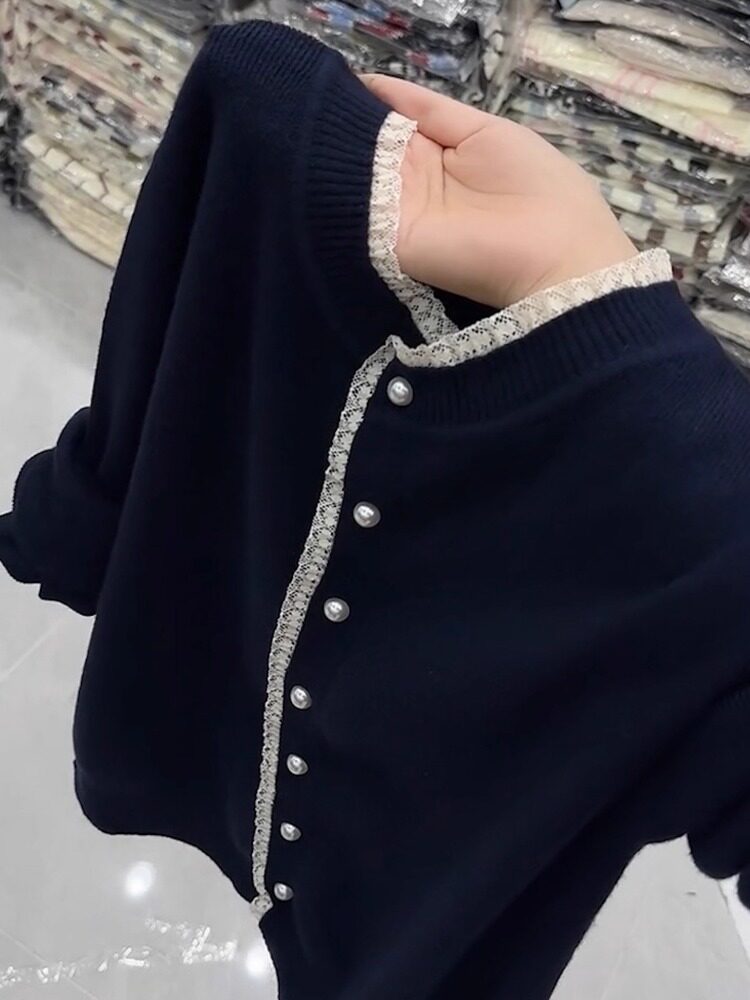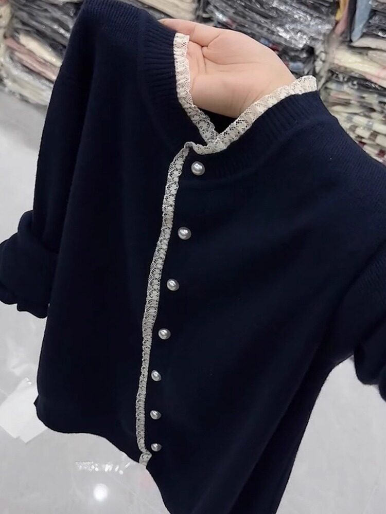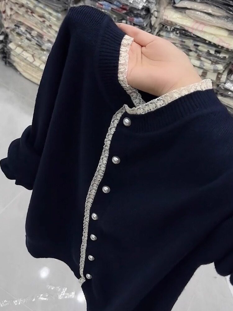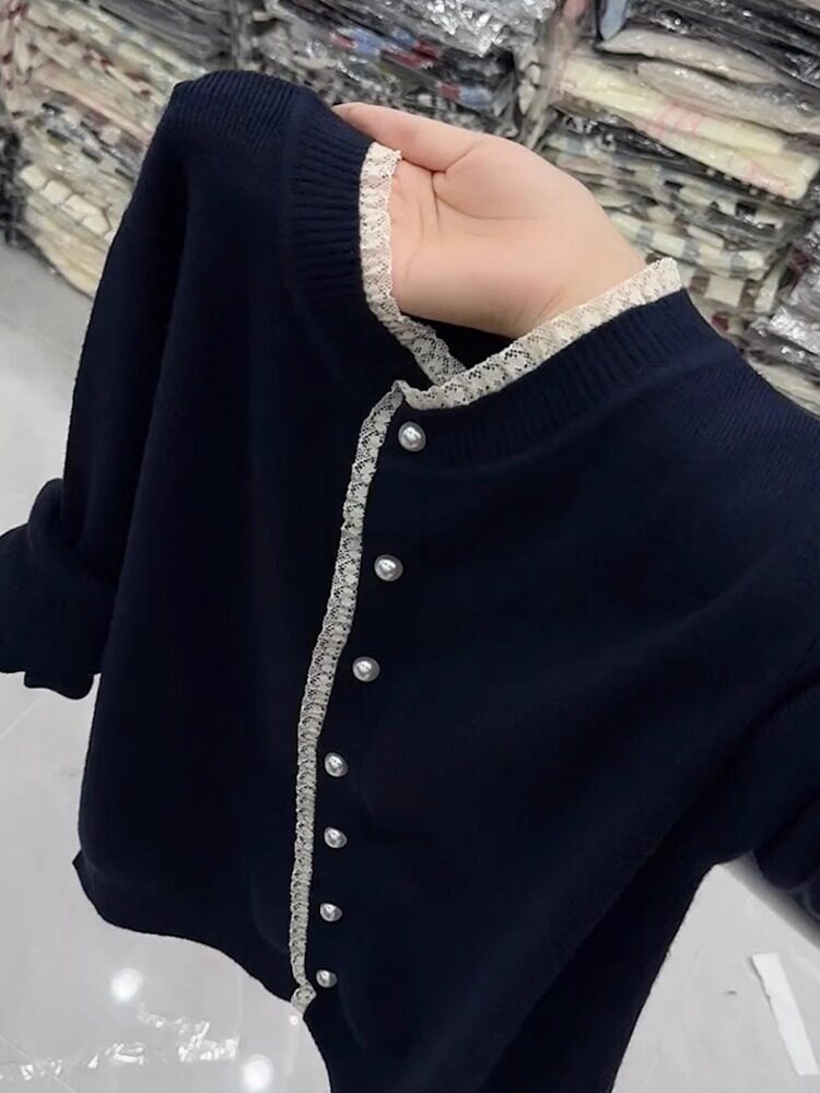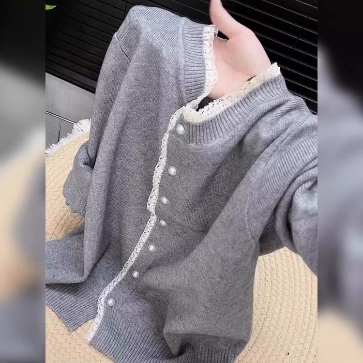 溫柔風蕾絲花邊針織開衫洋氣百搭長袖毛衣2025秋季別致減齡上衣女