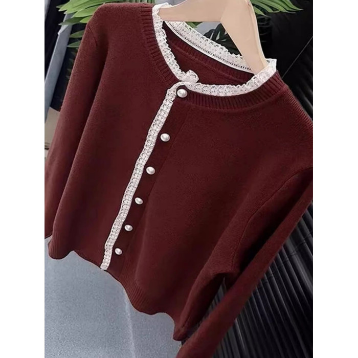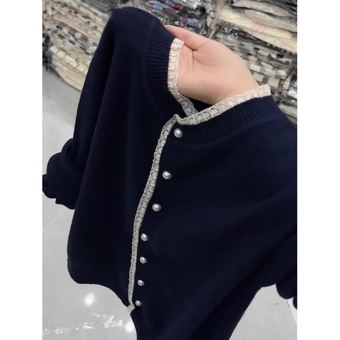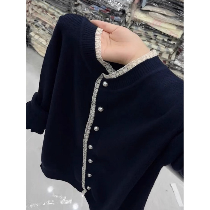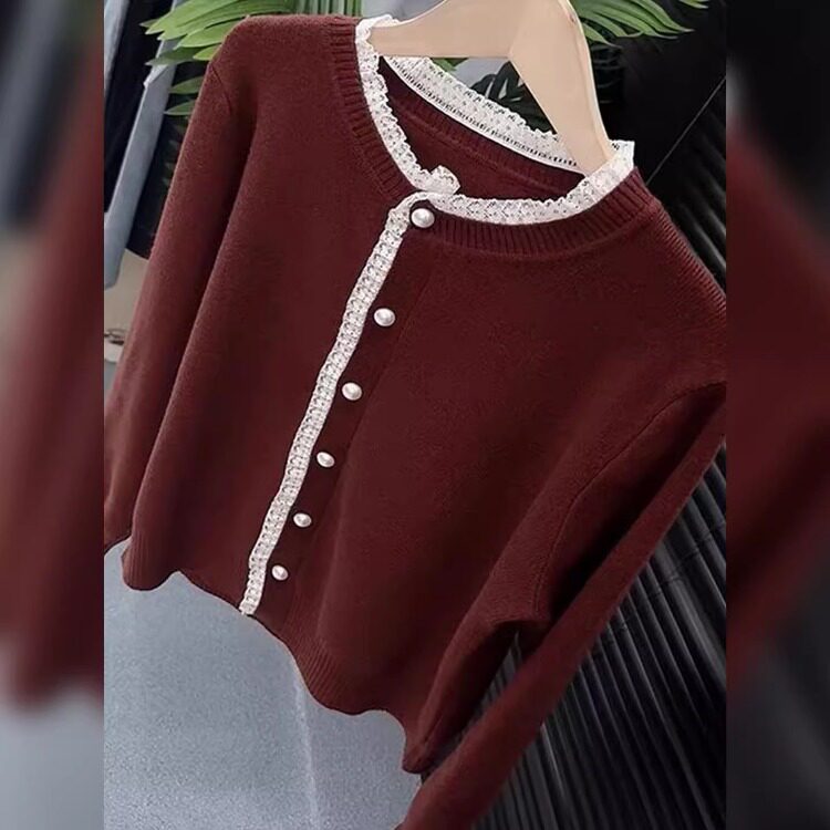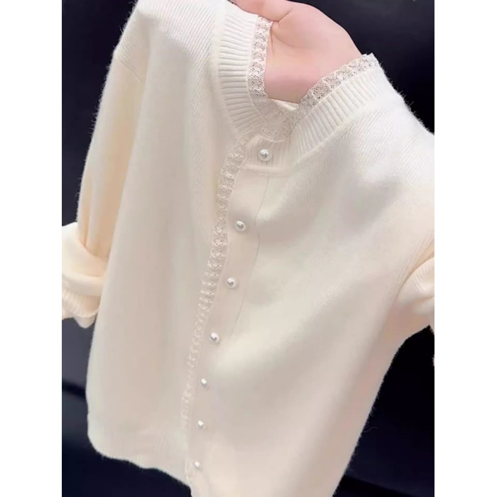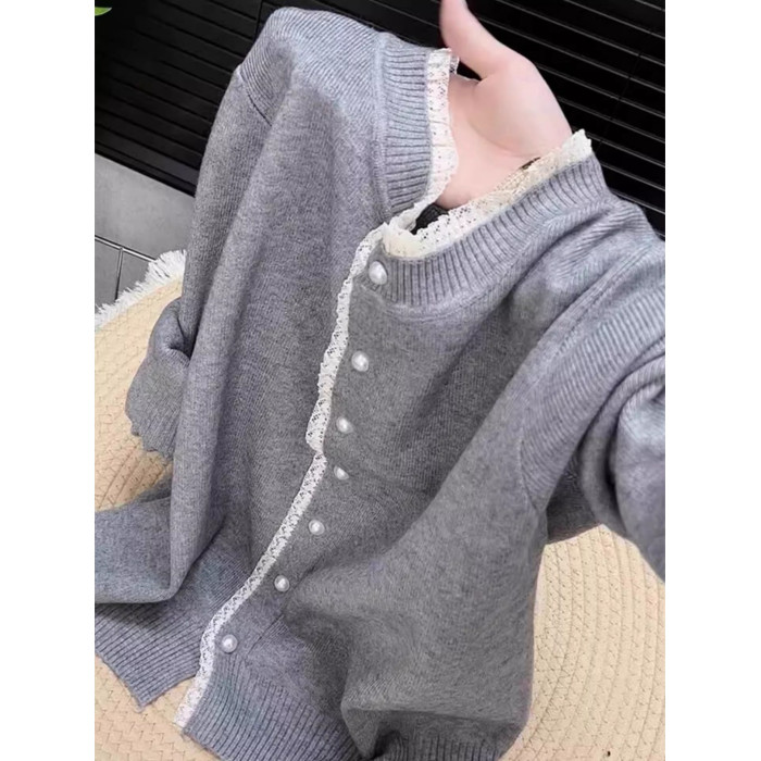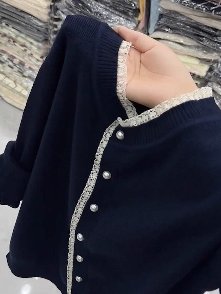 溫柔風蕾絲花邊針織開衫洋氣百搭長袖毛衣2025秋季別致減齡上衣女