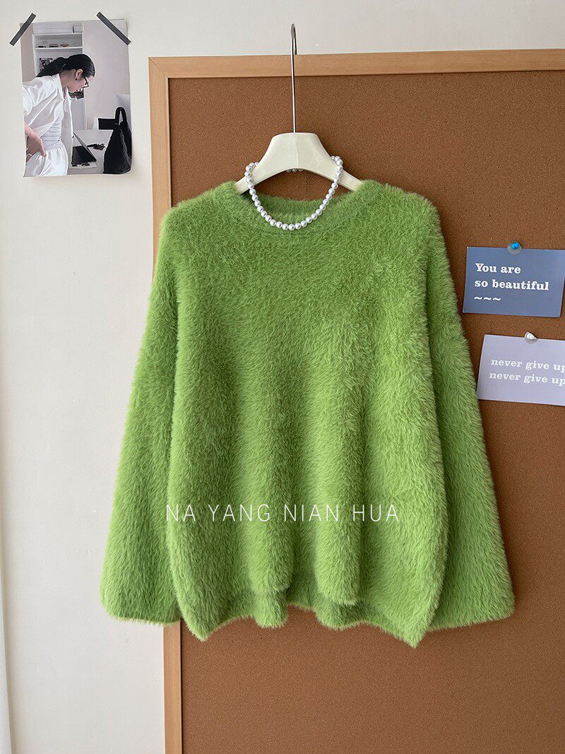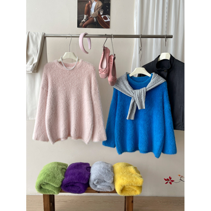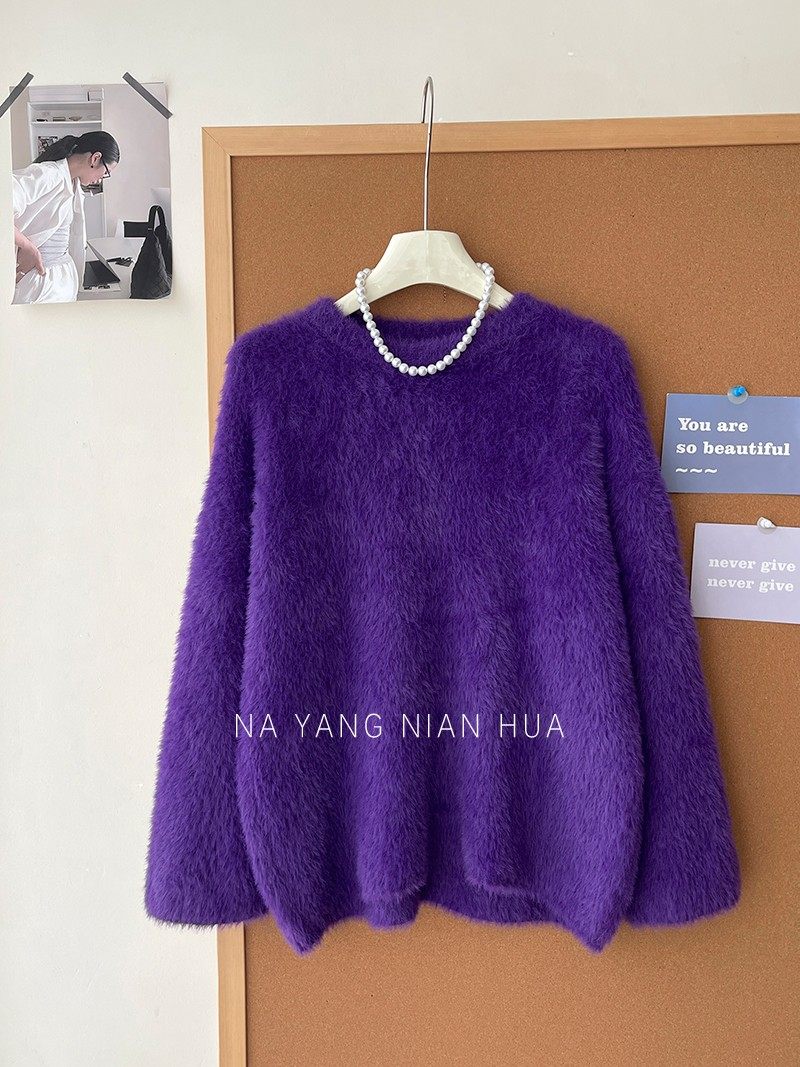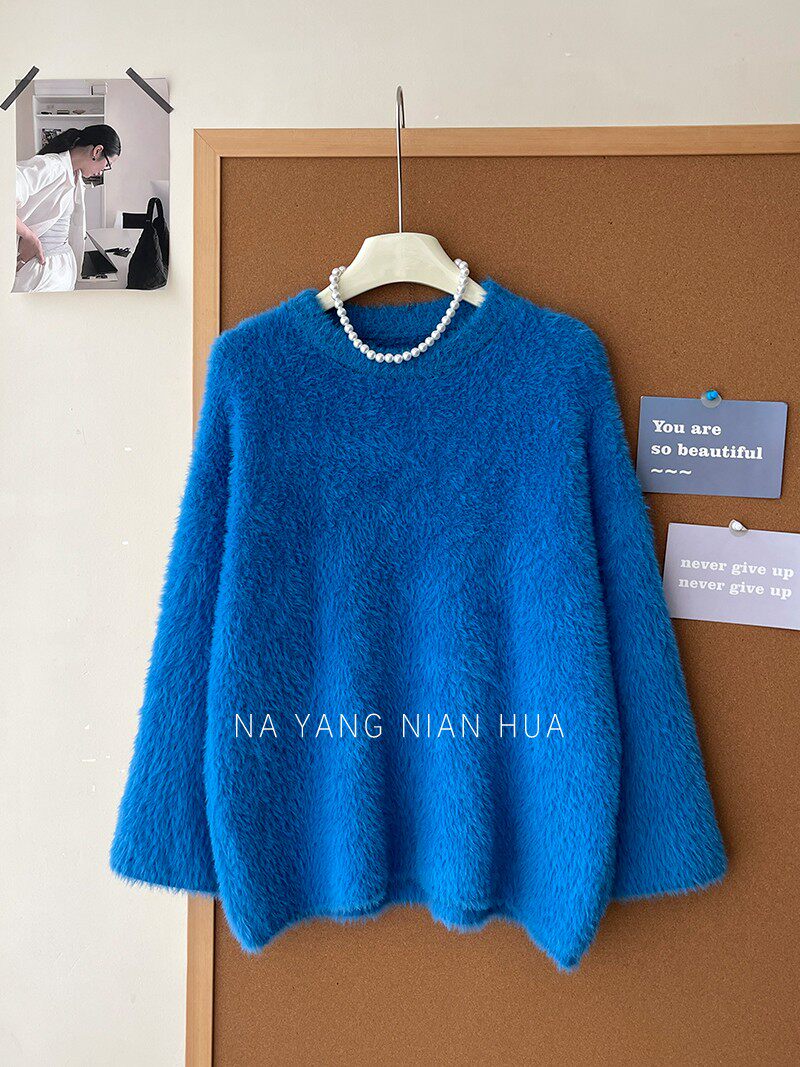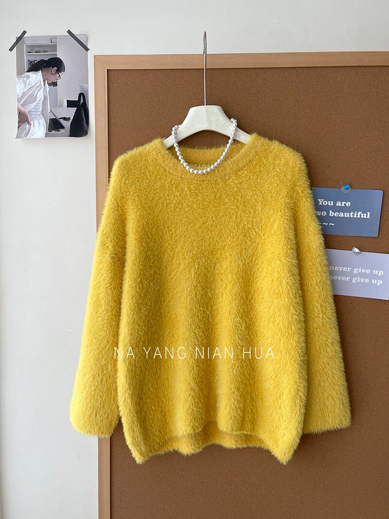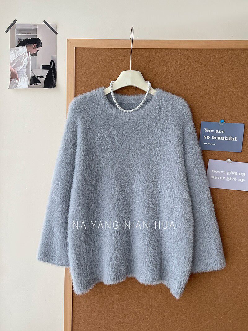 日韓系復古溫柔軟糯水貂絨毛衣女秋冬休閒百搭慵懶風松弛感針織衫
