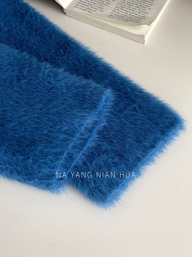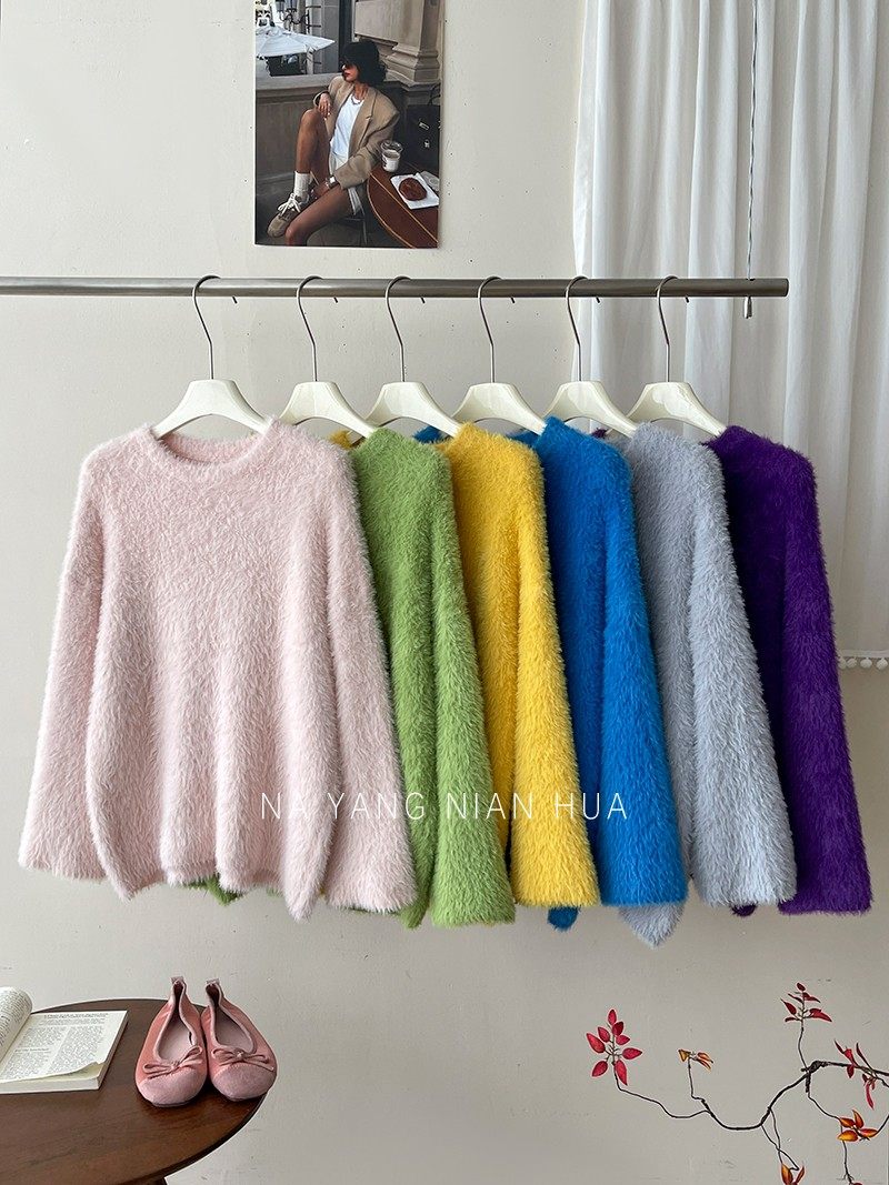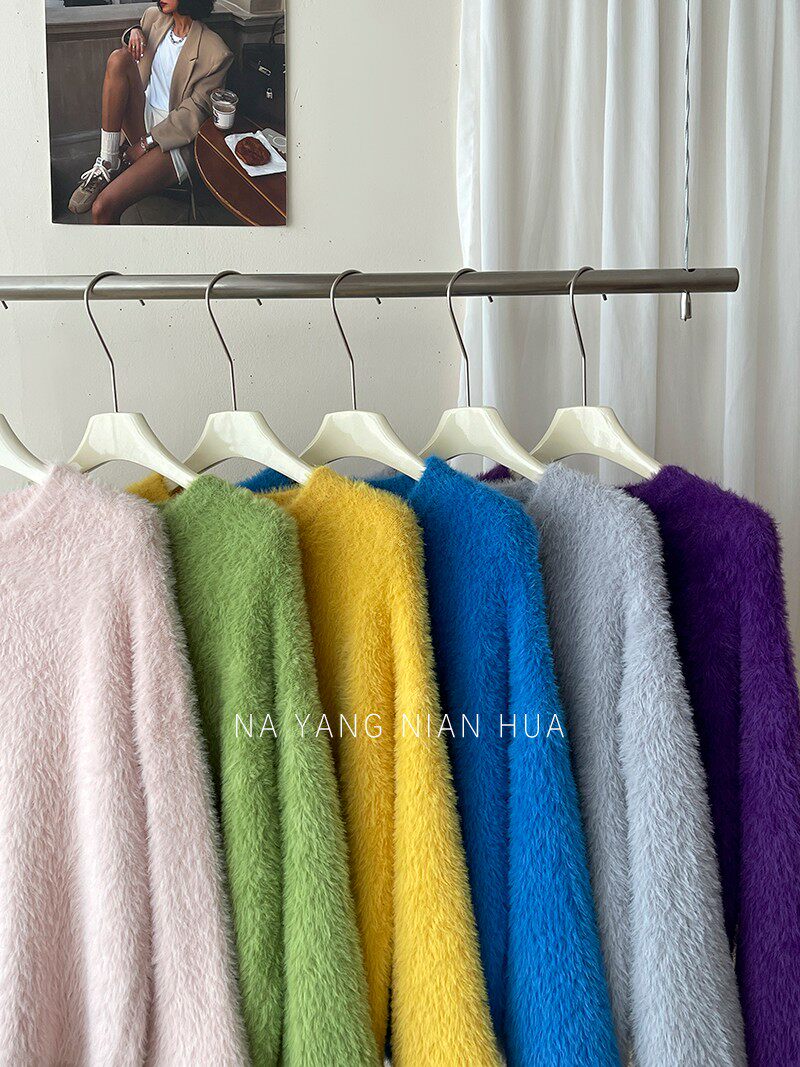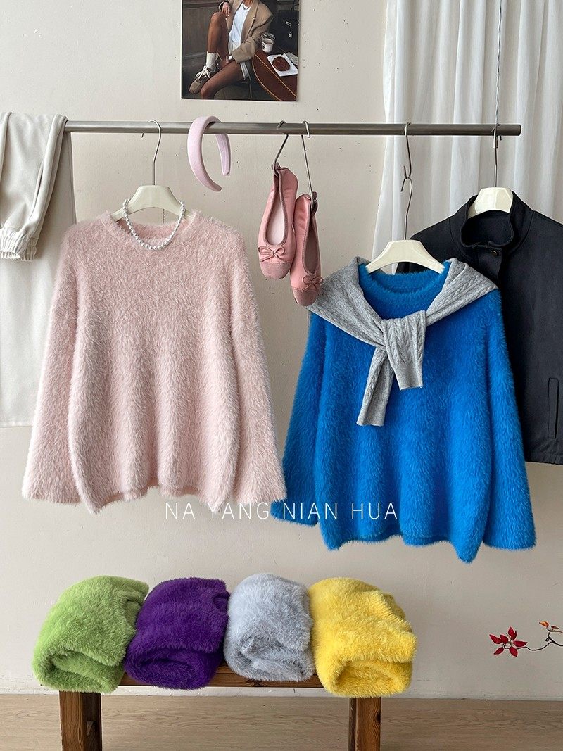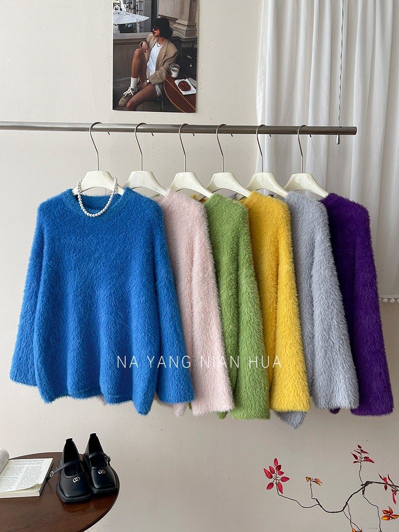 日韓系復古溫柔軟糯水貂絨毛衣女秋冬休閒百搭慵懶風松弛感針織衫