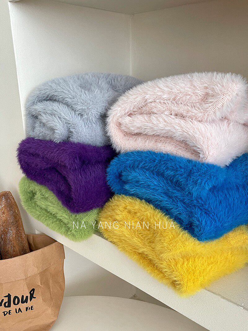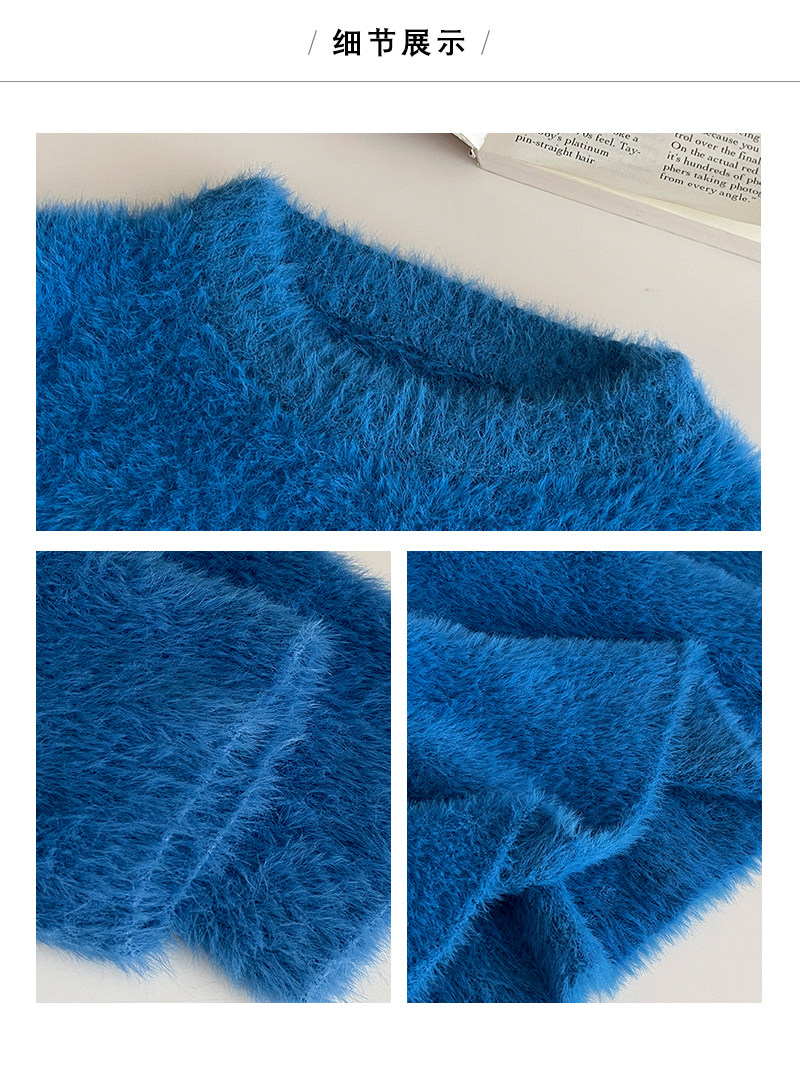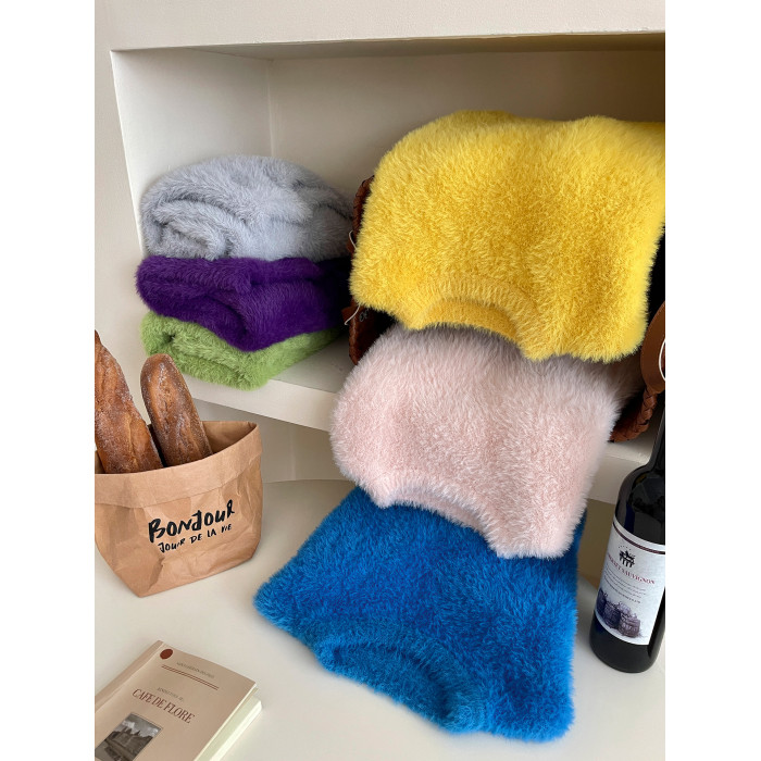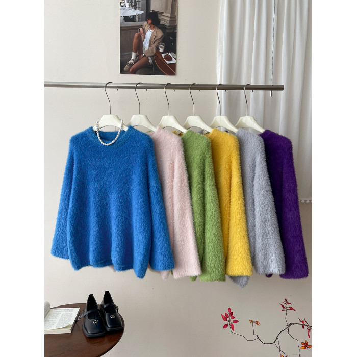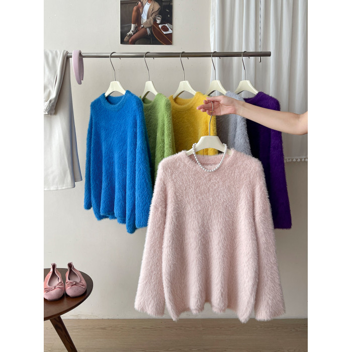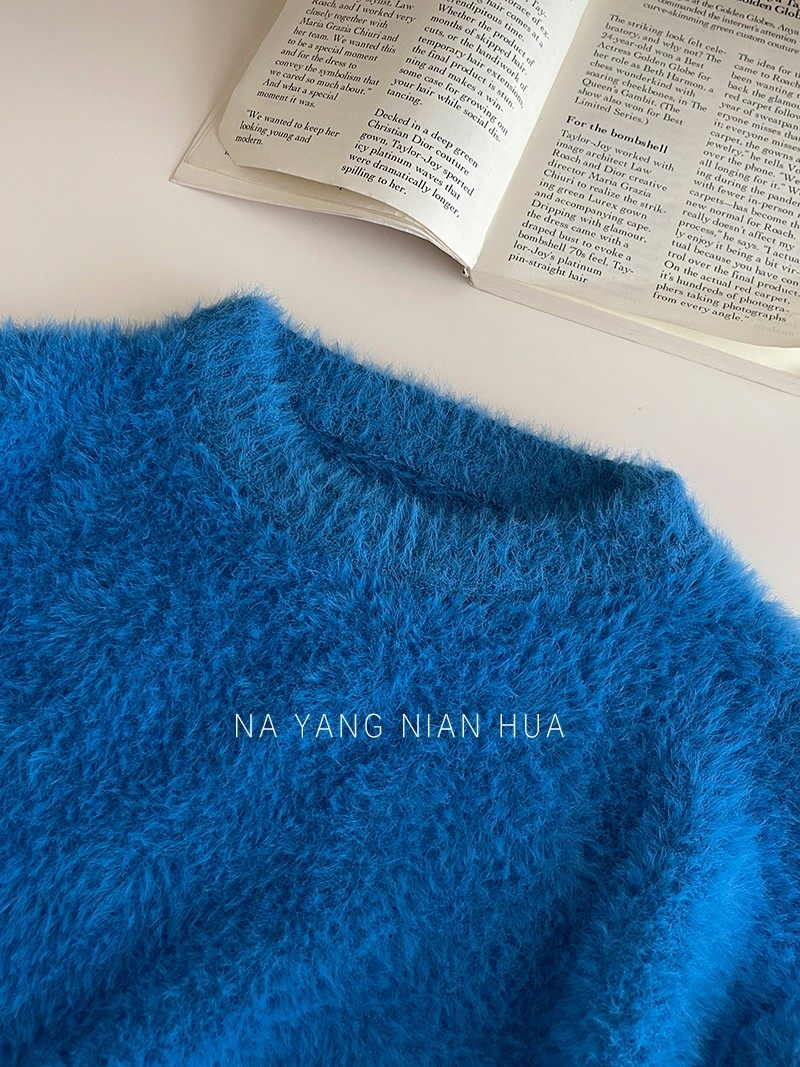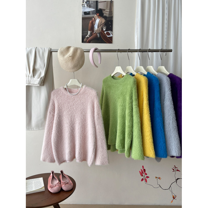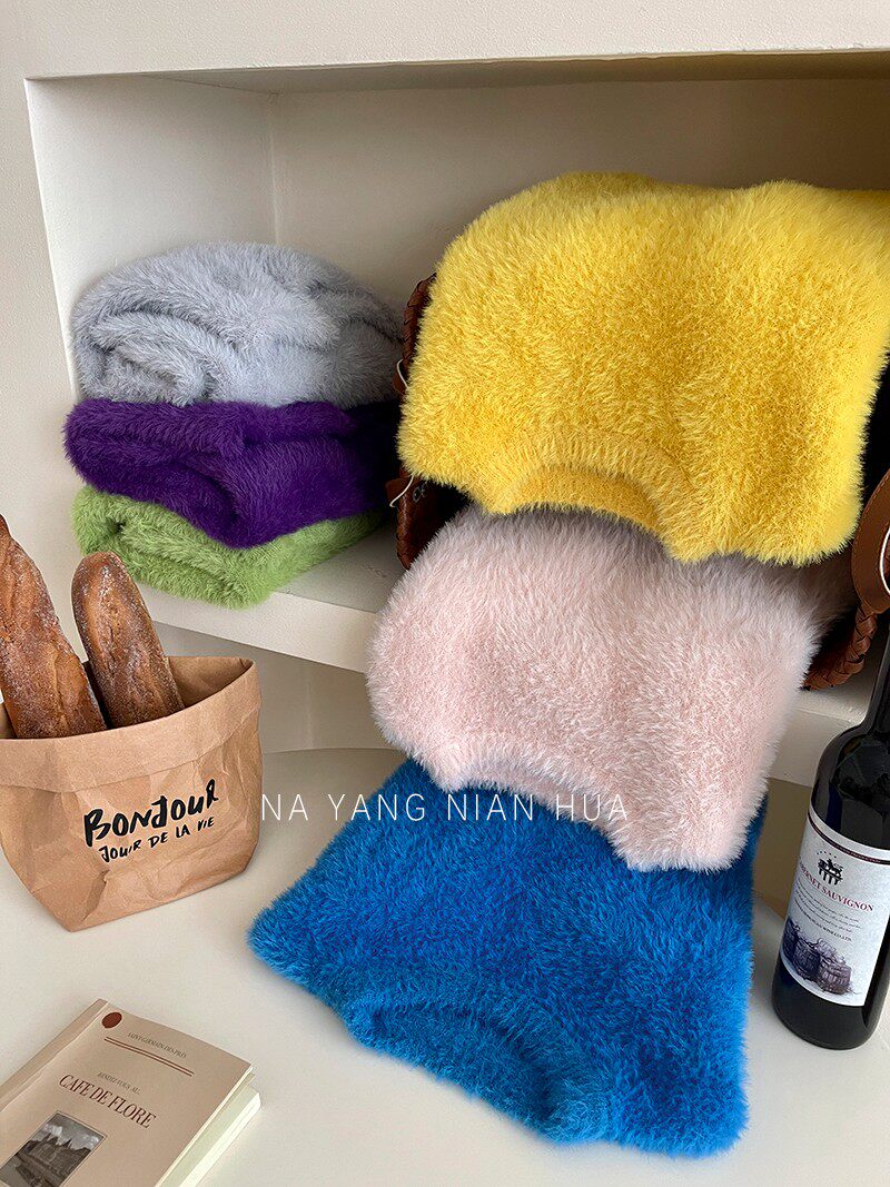 日韓系復古溫柔軟糯水貂絨毛衣女秋冬休閒百搭慵懶風松弛感針織衫