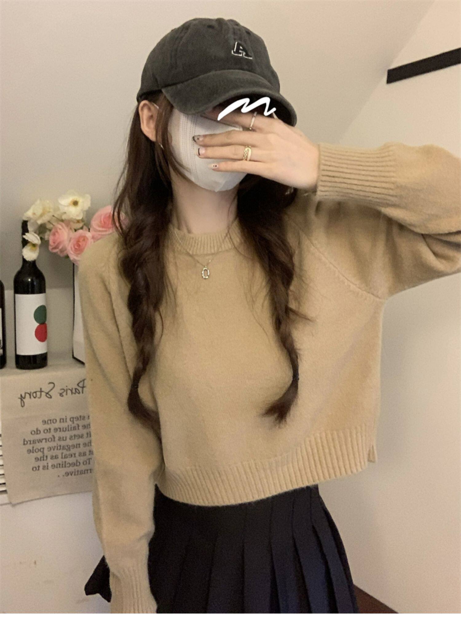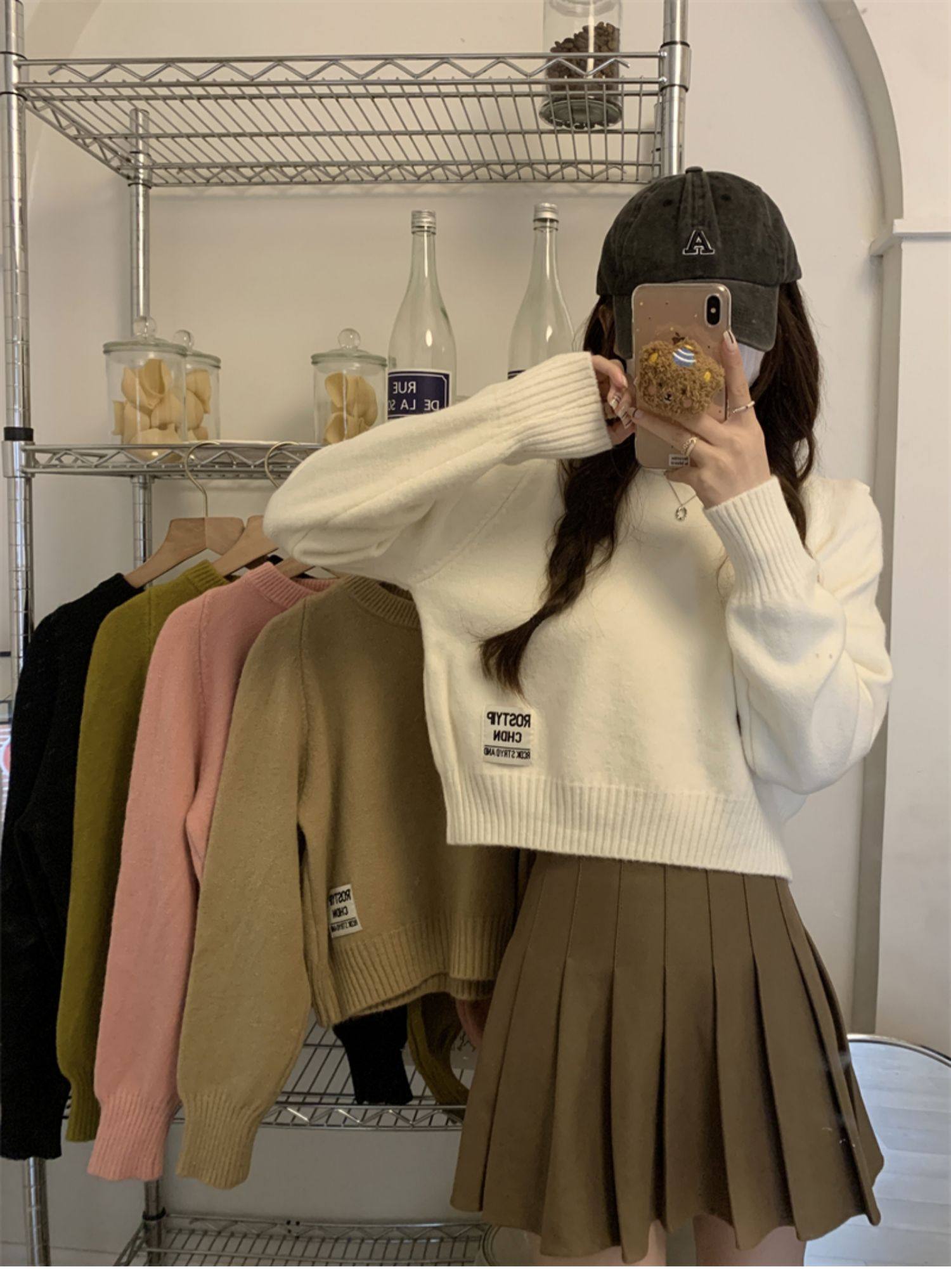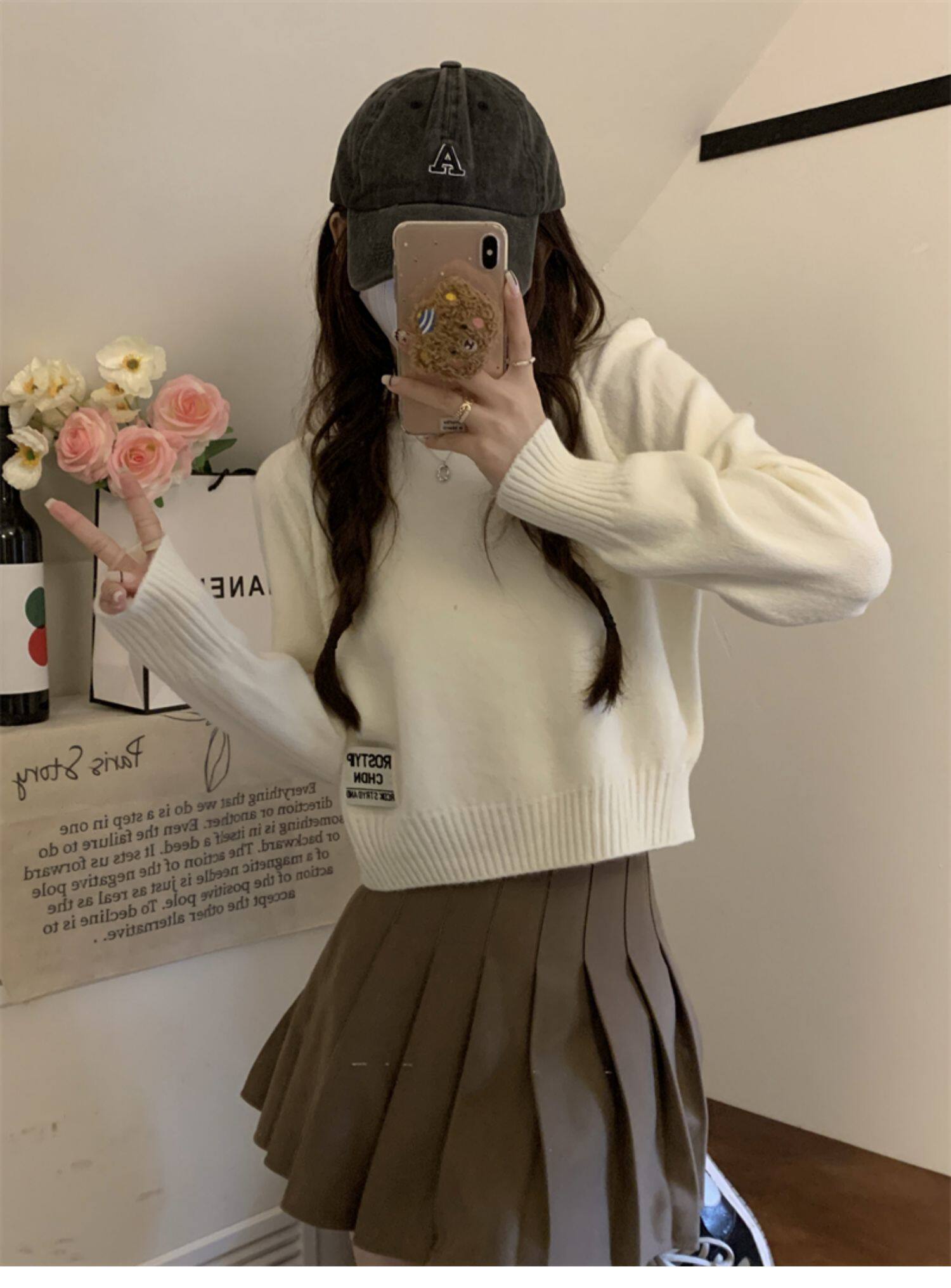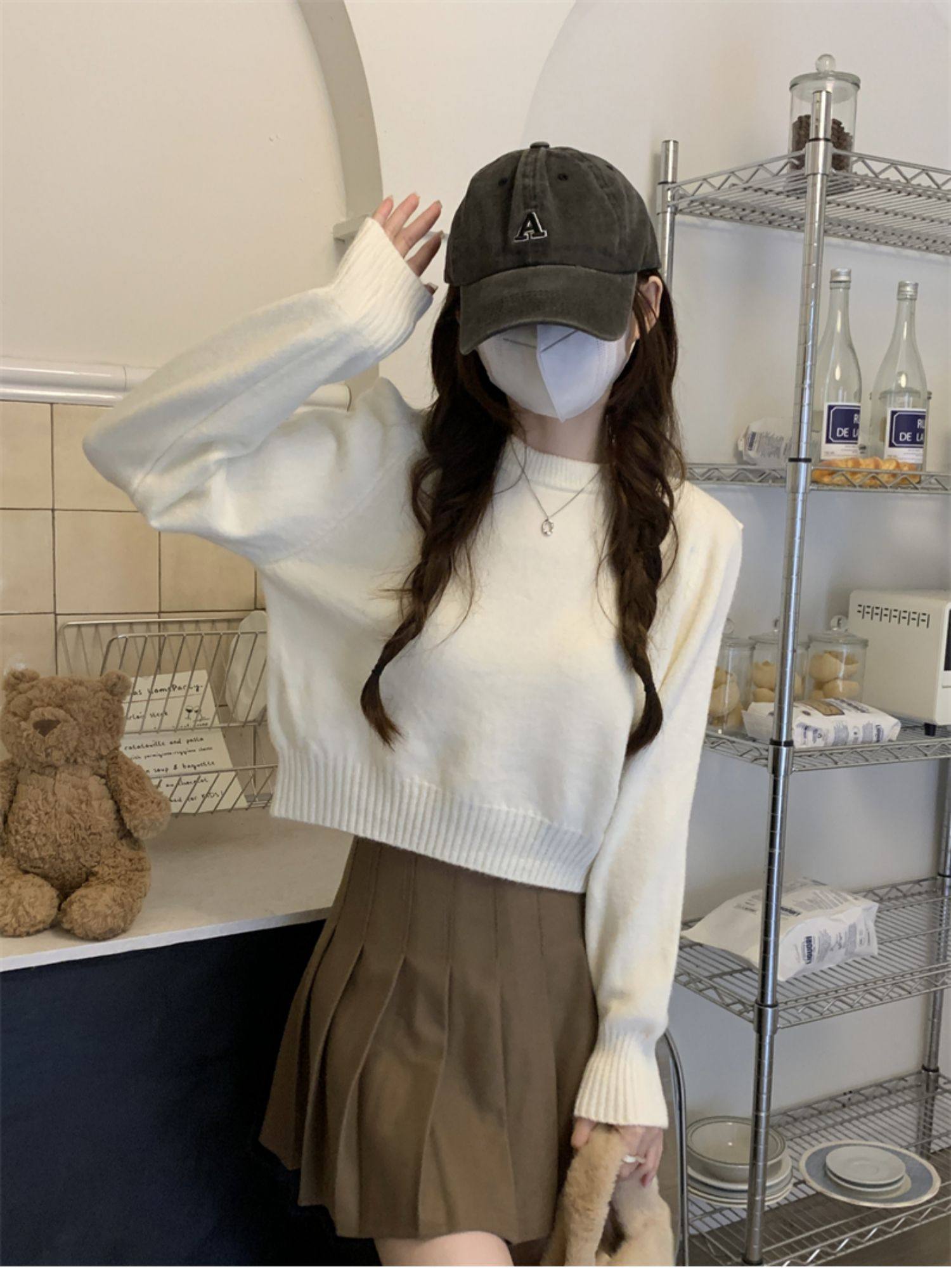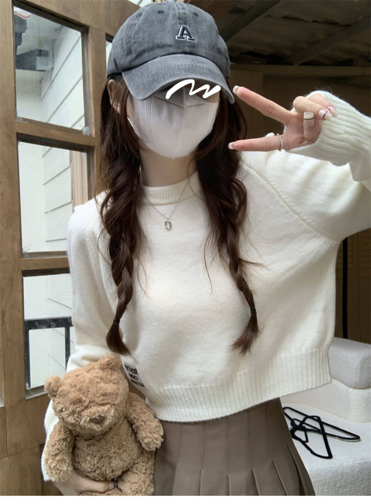 白色短款毛衣女2025秋冬季新款內搭打底衫外穿寬松高級小個子上衣