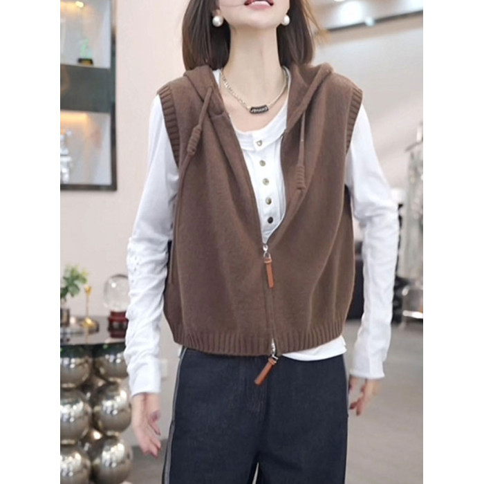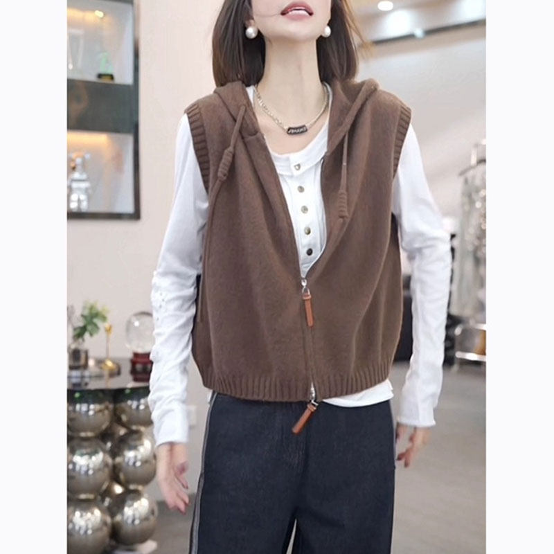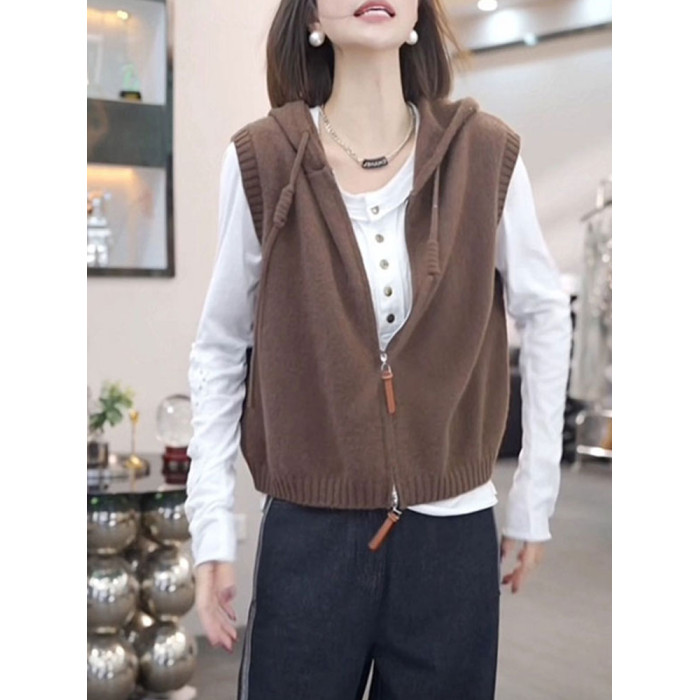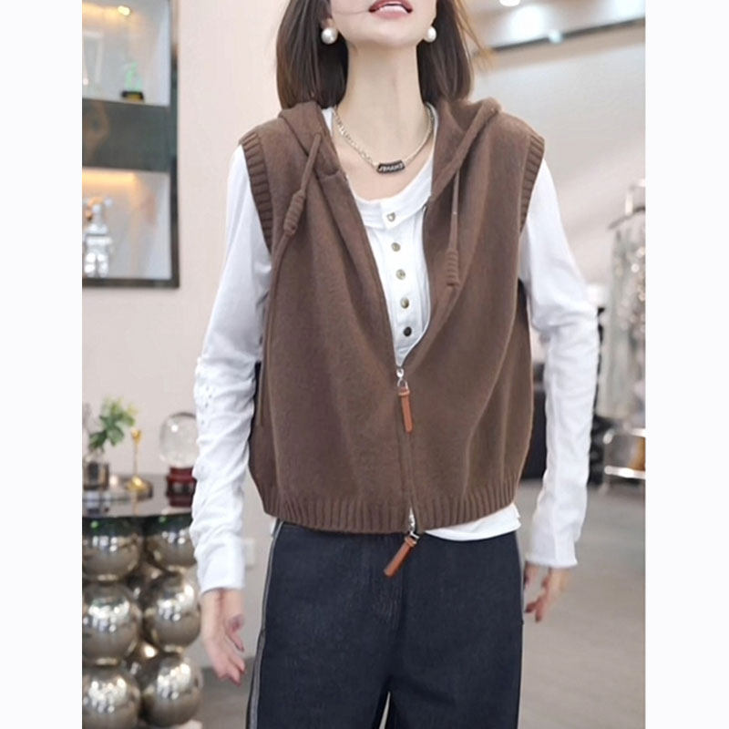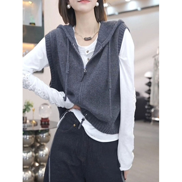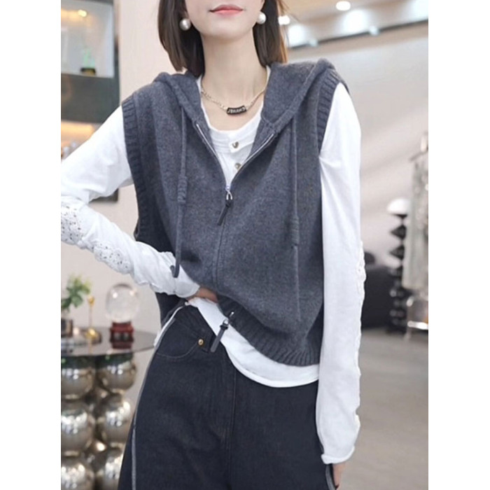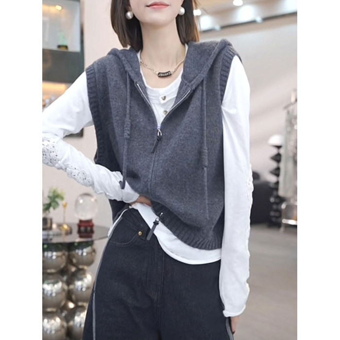 連帽拉鍊針織馬甲女灰色顯瘦設計感曡穿背心毛衣外套2025新款氣質