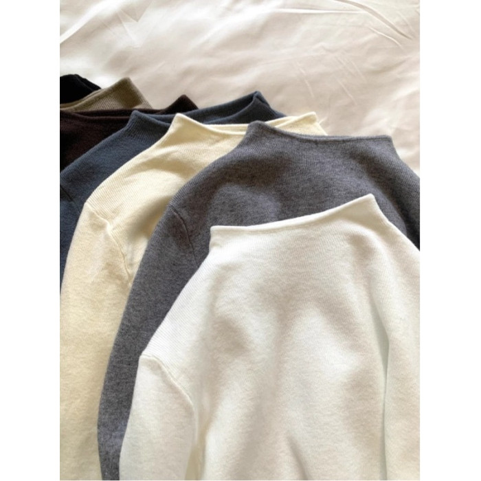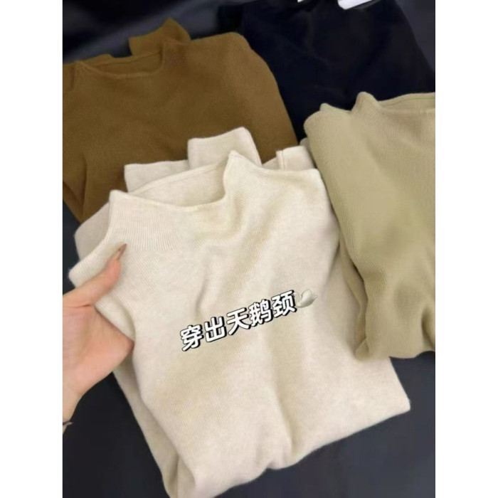溫柔風半高領針織打底衫女秋冬立領內搭長袖上衣加絨加厚保暖毛衣