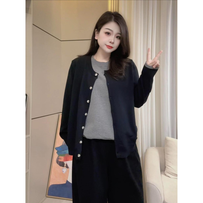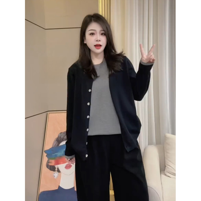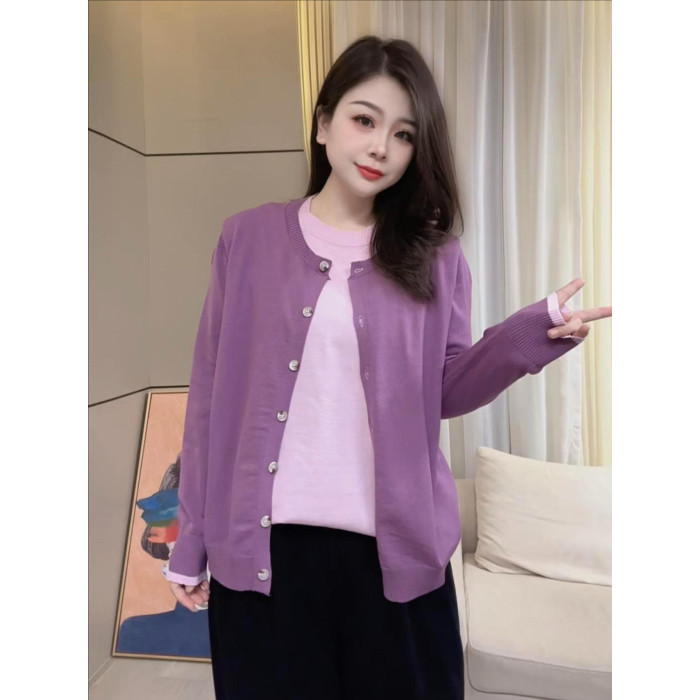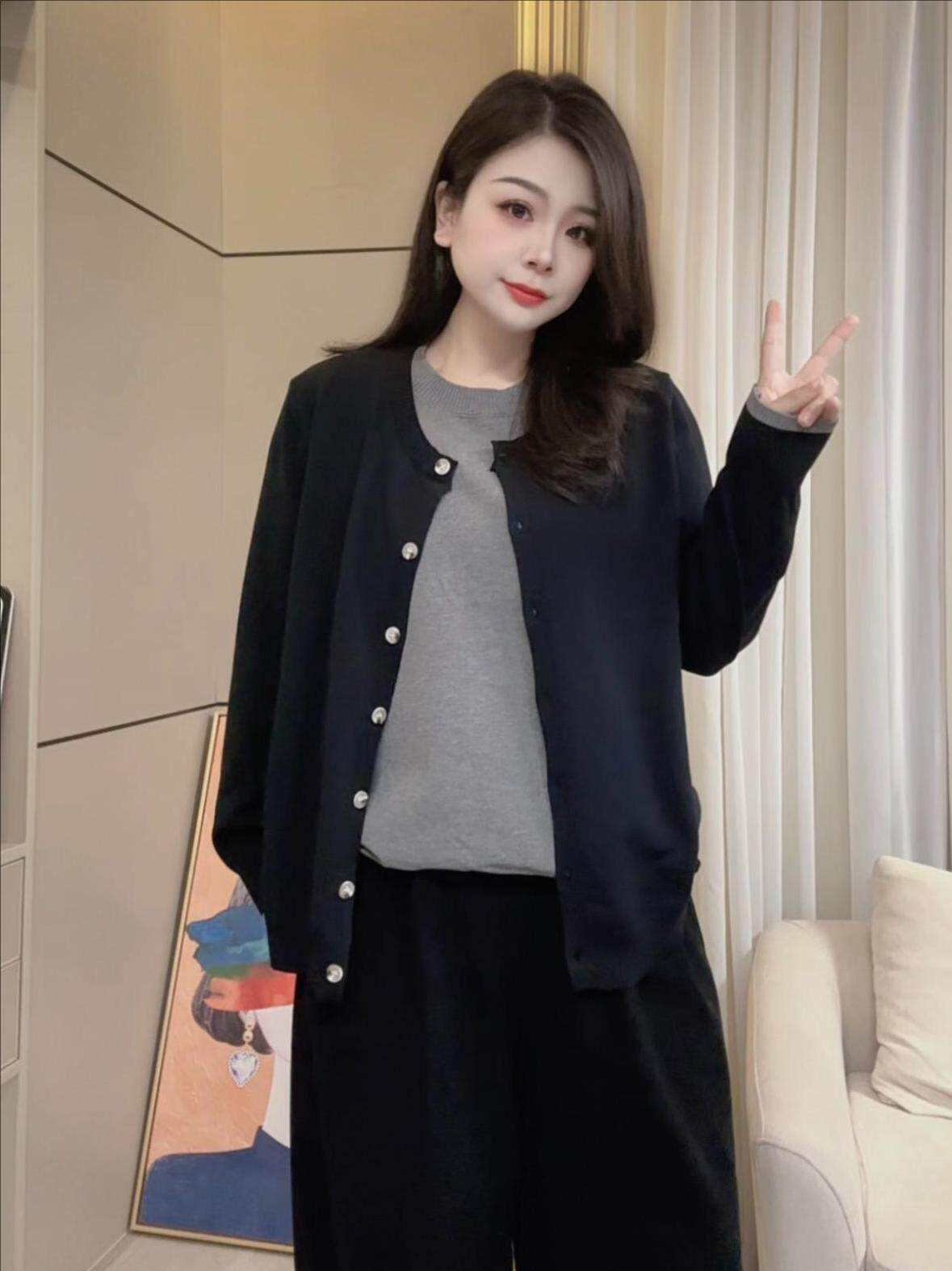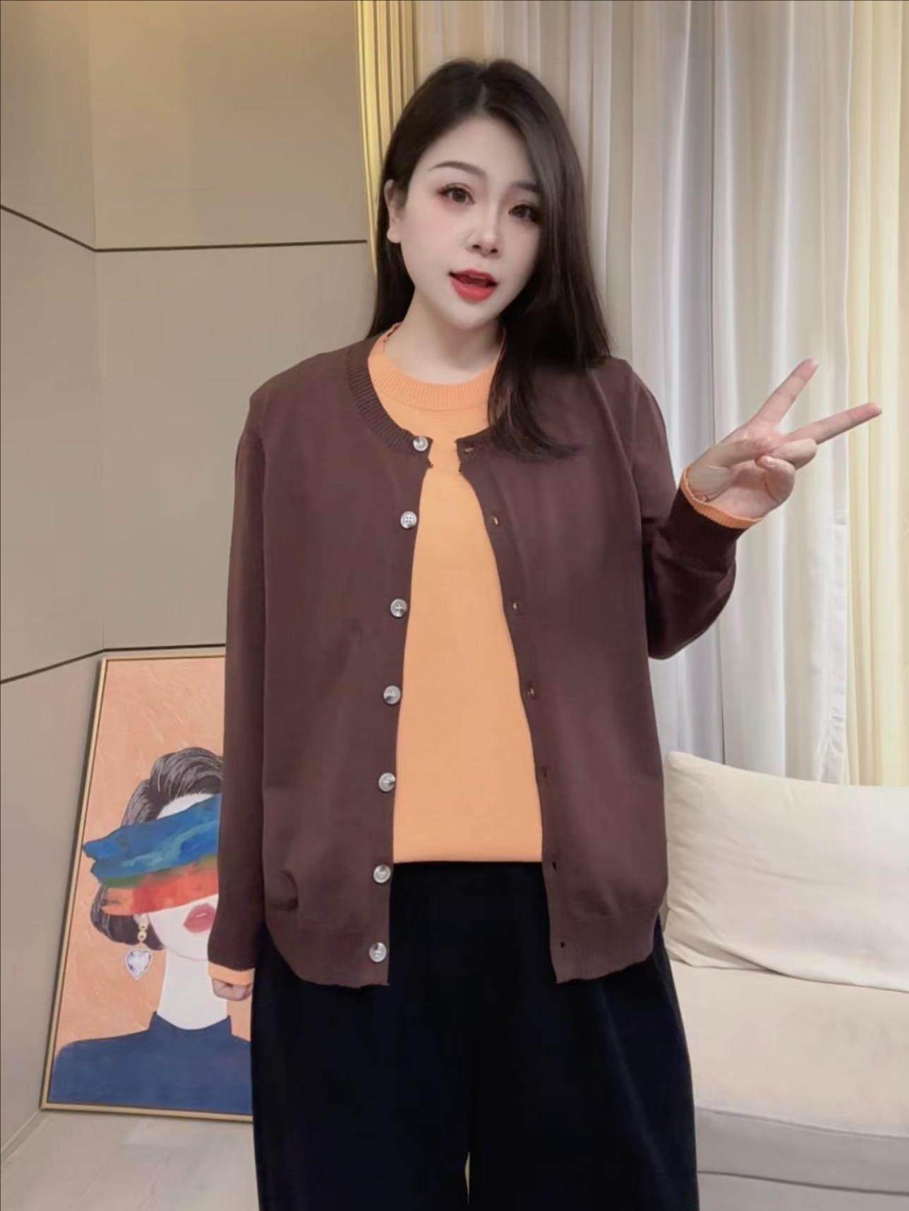 大碼胖mm設計感拼色假兩件針織開衫女休閒溫柔高級感秋冬毛衣上衣