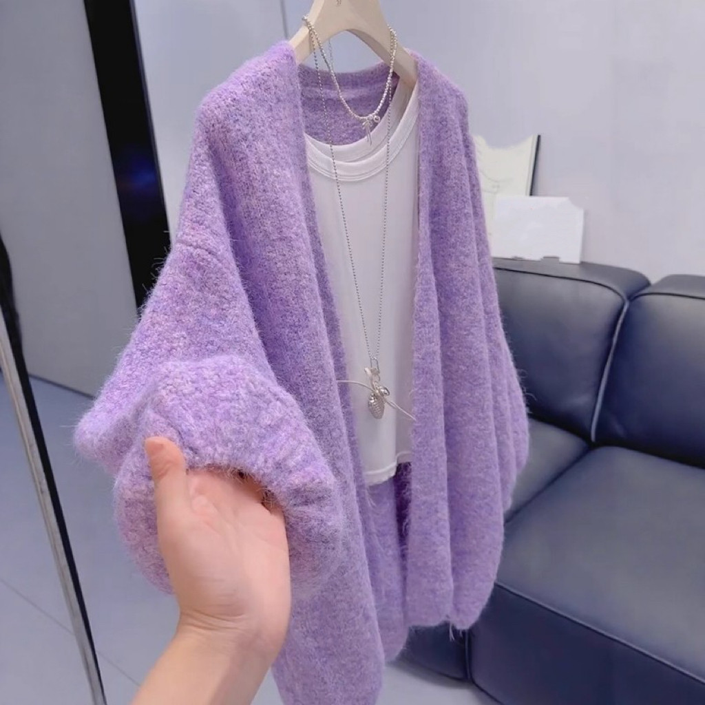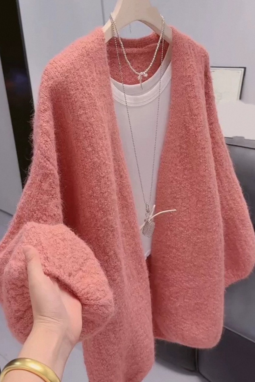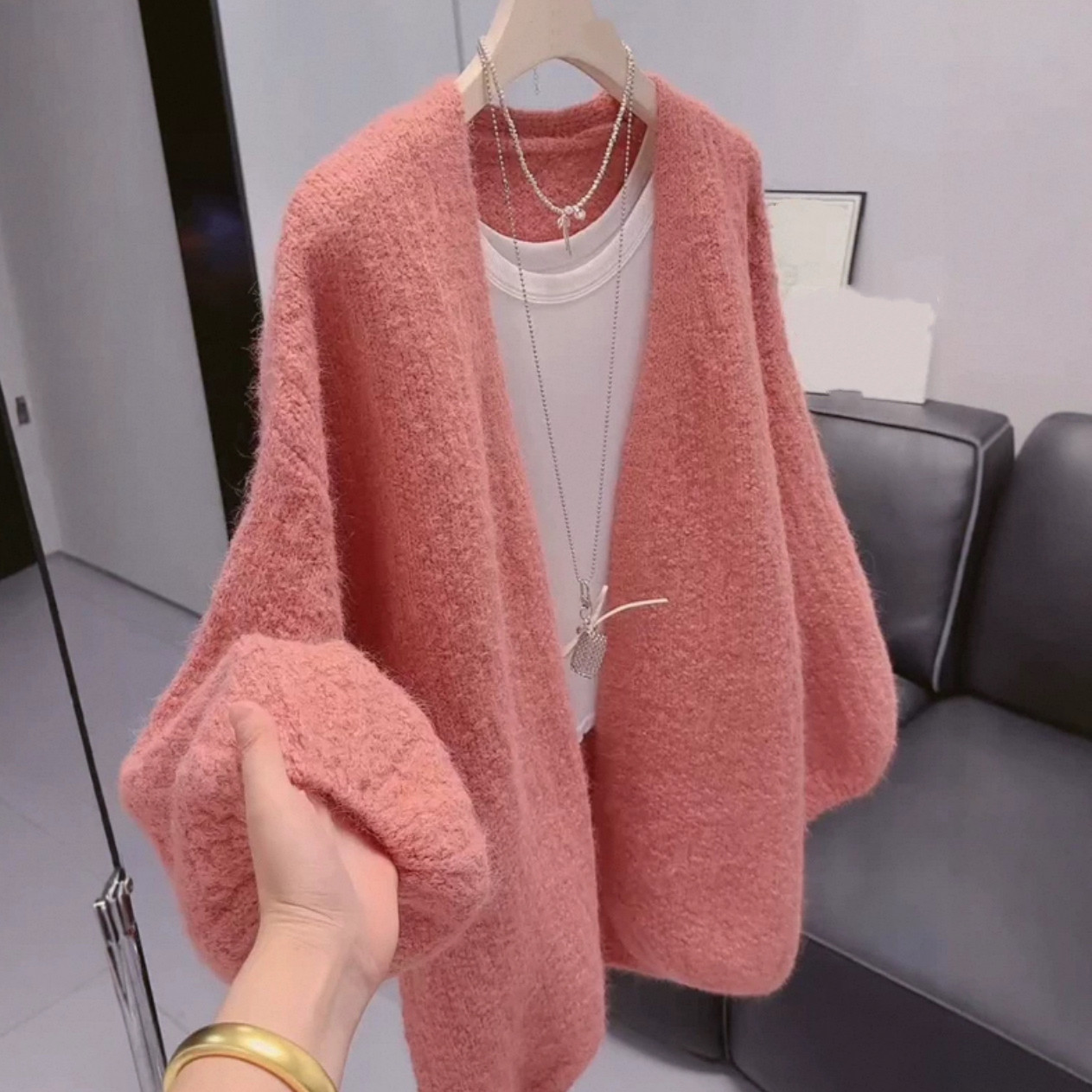 高級感中長款燈籠袖毛衣外套女早秋款慵懶寬松軟糯溫柔風針織開衫